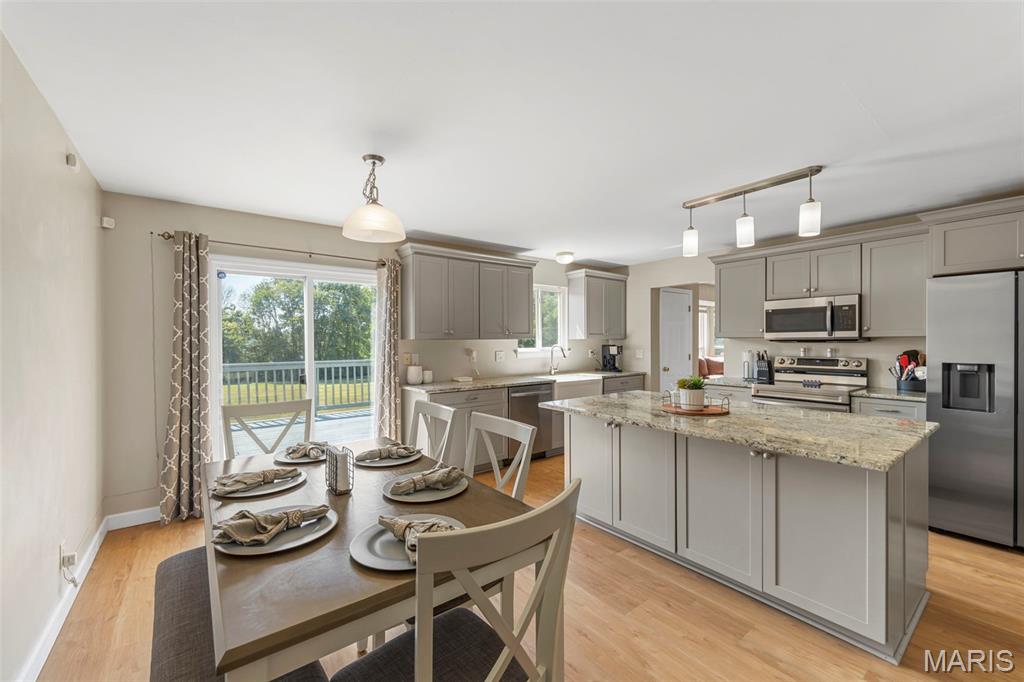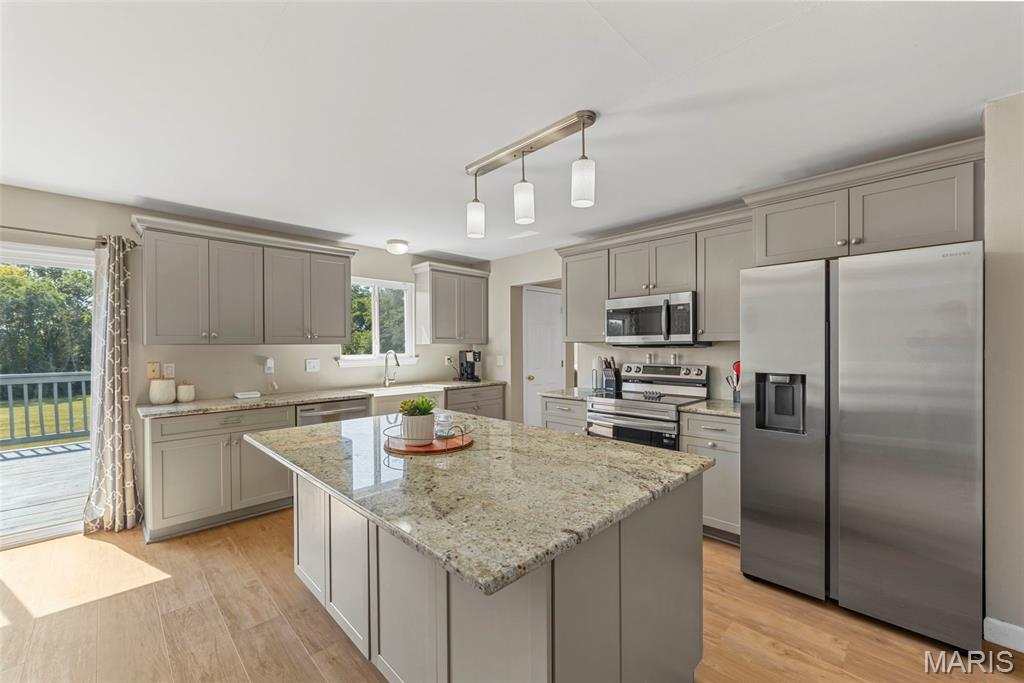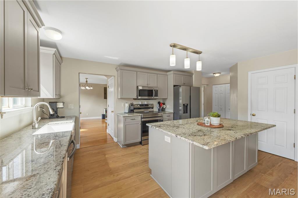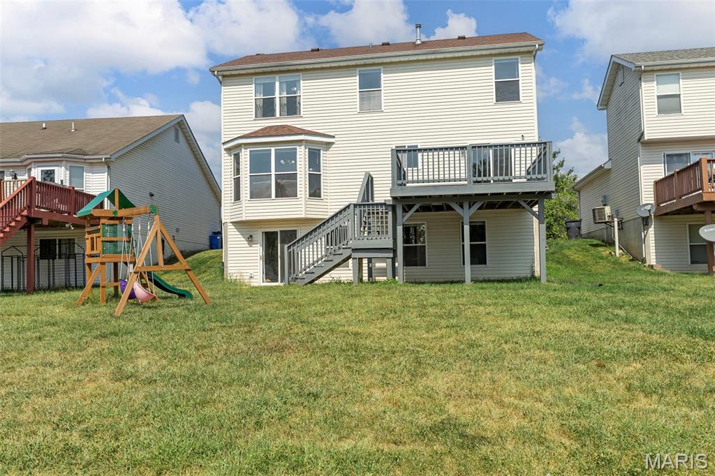 Welcome to 2701 Brookmeadow Drive in Belleville, IL. This 4-bedroom, 3.5-bathroom home offers over 2,100 square feet of living space with thoughtful updates throughout. The eat-in kitchen features granite countertops, a large center island, and plenty of cabinet space. The living room is highlighted by a cozy fireplace, creating a welcoming atmosphere. The finished walk-out basement provides additional space for recreation, a home theater, or office use. Enjoy outdoor living with a deck and spacious backyard that backs to common ground. Community amenities include access to a pool, perfect for summer relaxation. Located near Eckert’s, Scott Air Force Base, and the interstate, this property offers both convenience and comfort. It's an excellent opportunity to own a move-in ready home in a desirable location.
