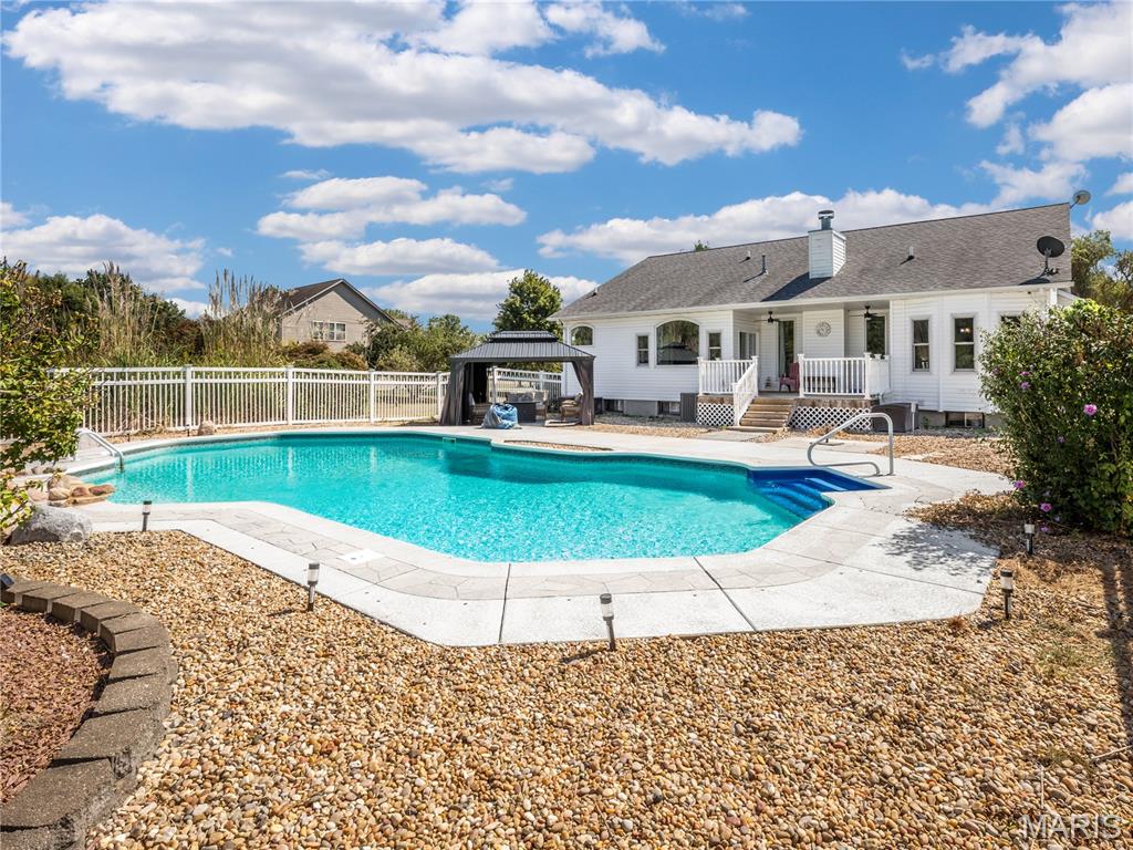 GORGEOUS RANCH HOME ON 2.36 ACRES WITH IN-GROUND POOL! This Home Features 4/Bedrooms, 4/Bathrooms, 3/Car Garage. Open Floor Plan, Cathedral Ceilings, Large Full Length Windows For Breathtaking Natural Lighting. Primary Bedroom Is Spacious With Walk-In Closet, Bathroom Suite Featuring Tub And Separate Shower. All 4/Bedrooms And Laundry Is Located On Main Floor. Finished Basement With Full Bathroom, 2 Additional Rooms That Can Be Used As Bedrooms Or Office Space, Large Family Room And Unfinished Areas For Extra Storage. Updates Include: Hot Water Heater, Refrigerator, Dishwasher, Downstairs Bathroom, Extended Fencing For Pets, Deck, Gazebo, Pool Filter and Salt Water Chlorinator For The 20' x 40' Heated Pool. HVAC (2022), Roof And Windows (2018) Less Than 10 Mins From SAFB.