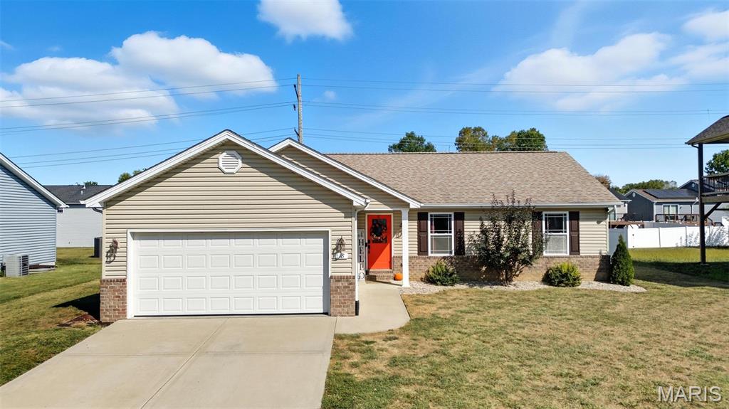 Welcome to this spacious and well-maintained 4-bedroom, 3-bathroom home that combines comfort, style, and functionality. Step into the inviting living room with soaring vaulted ceilings, a cozy gas fireplace, and large windows that fill the space with natural light. The updated kitchen offers generous counter space, modern appliances, and seamless flow to the dining area, making it ideal for both daily living and entertaining. The primary suite features ample closet space and a private bath, while additional bedrooms provide flexibility for family, guests, or a home office. The fully finished basement expands your living options with a kitchenette, full bathroom, and plenty of room for a recreation area, media room, or multi-generational living. Enjoy outdoor living in the fenced backyard with a durable vinyl privacy fence, perfect for pets, gatherings, and relaxation. An attached garage adds convenience, while the solar panel system on the roof offers energy efficiency and cost savings.Located in a desirable neighborhood close to shopping, dining, and schools, this home offers the best of O'Fallon living. With its thoughtful updates, spacious design, and energy-conscious features, 18 Del Ray is ready to welcome its next owner.