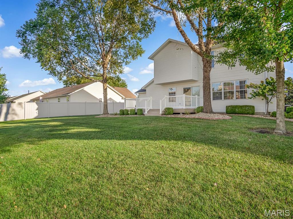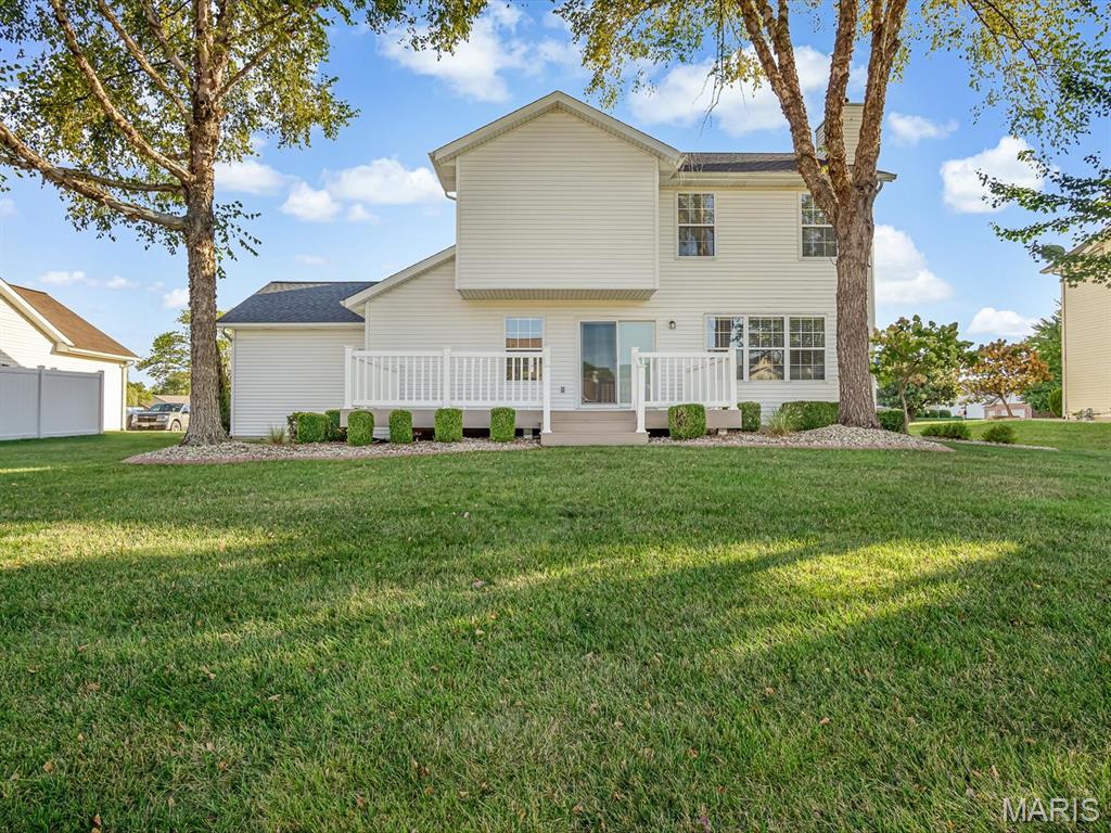 Impeccably Maintained 4 Bedroom, 3 Bath two story home with full basement and 2-Car Garage. Step into the impressive two-story foyer, flanked by a formal dining room and a versatile living space that can serve as an office, playroom, or sitting area. The main level also features a convenient half bath, spacious kitchen with an eat-in area, and a comfortable living room highlighted by a cozy gas fireplace. The laundry room is also conveniently located on this level. Upstairs, you’ll find the inviting primary suite with a walk-in closet and updated bathroom, along with two additional bedrooms that share a full hall bath. The lower level expands your living space with a large recreation room, fourth bedroom, plumbing rough-in for a future bath, and plenty of unfinished storage. Enjoy the outdoors with low-maintenance landscaping, a large shaded 13' x 30' maintenance-free composite deck perfect for entertaining, and a handy pedestrian door providing direct access to the garage. Crisp, neutral paint, new carpet on 2nd floor, and careful upkeep make this home truly move-in ready. All kitchen appliances plus the washer and dryer are include - Roof '21, HVAC '15 - just move in and enjoy! Occupancy has been passed.
