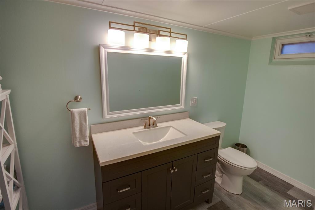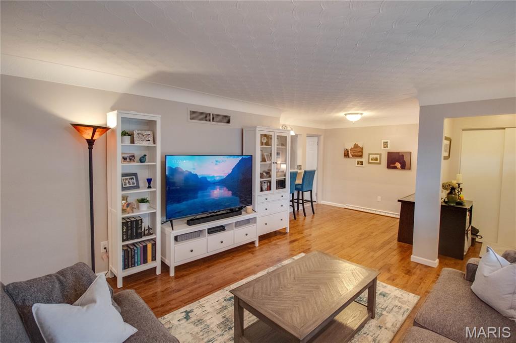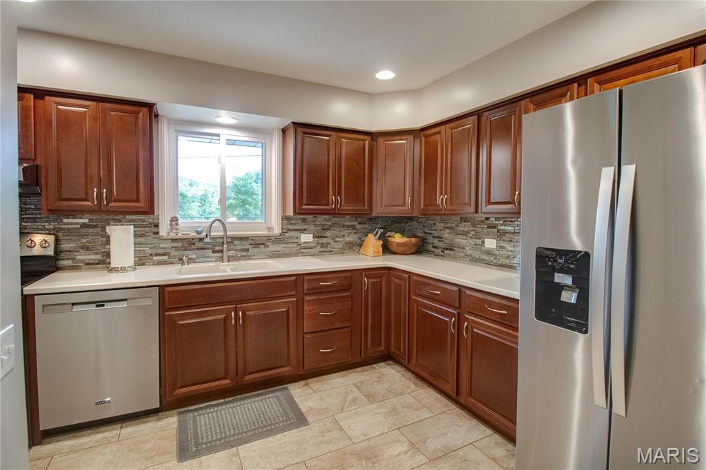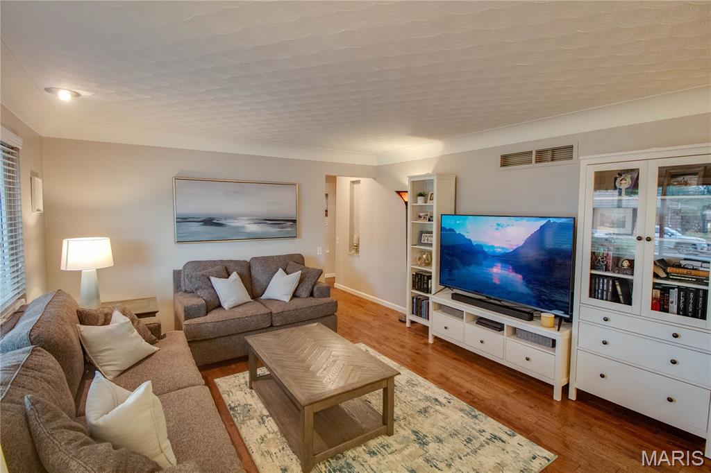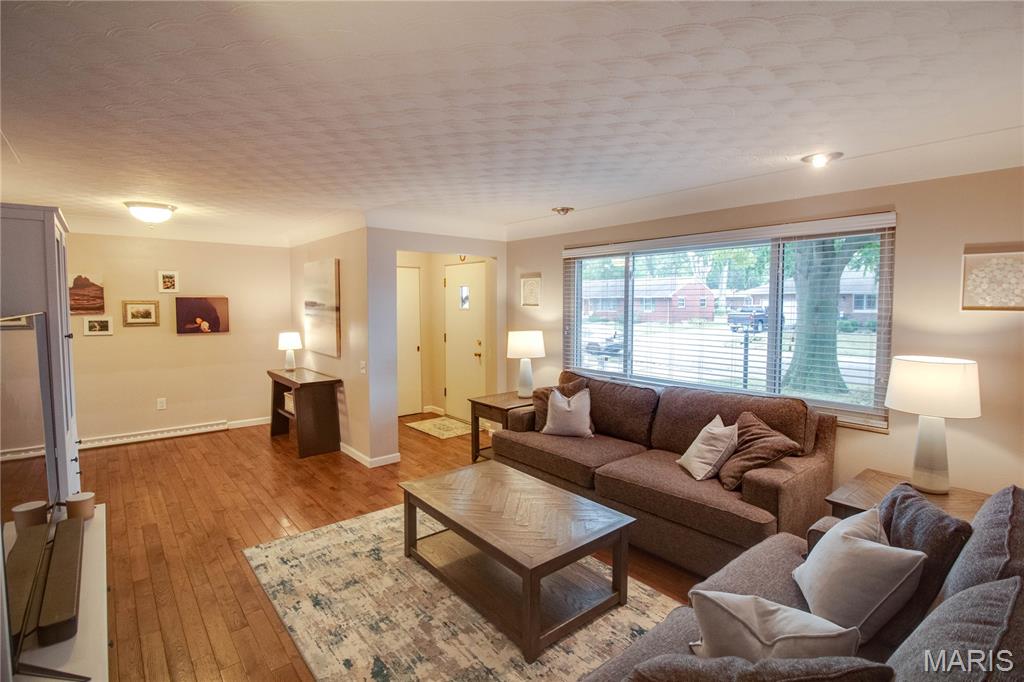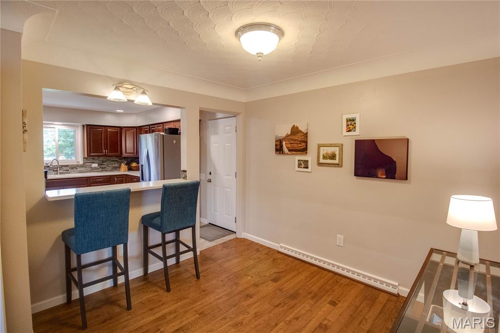 Stunning brick ranch in Belmont Village, near Glazebrook Park. This adorable and updated home features a new kitchen with beautiful cabinets, corian countertops, and a great breakfast bar looking into the living/dining area. Gorgeous hardwood floors! Back family room features a wood burning fireplace and leads out to the back patio. Furnace updated 2023, A/C 2018, water heater 2016. Enjoy the finished lower level, featuring a large family room, bedroom with egress window (installed 2019), and a gorgeous bathroom (updated 2019). Roof approximately 2013. Home features a 1-car attached garage and easy to maintain landscaping. Very clean and meticulously maintained.
