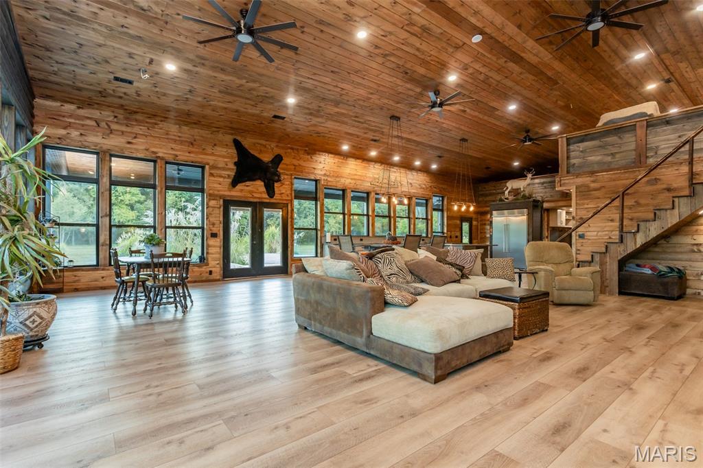 Discover the perfect blend of luxury and country living on this stunning property featuring just over 35 acres of rolling land, two ponds, and a beautifully designed barndominium offering more than 3,200 sq. ft. of living space. This home welcomes you with its open-concept design, soaring ceilings, and an abundance of windows that flood the interior with natural light while framing breathtaking views of peaceful sunsets and abundant wildlife. Whether you’re gathered in the spacious living area, preparing meals in the modern kitchen, or relaxing in the master suite, every detail has been designed to combine comfort and sophistication. Outside, the acreage provides endless opportunities—fish in your private ponds, explore the land and wildlife, or simply relax and soak in the beautiful setting. Perfect for those who value privacy, recreation, and refined country living, this property offers a rare opportunity to own a true retreat.