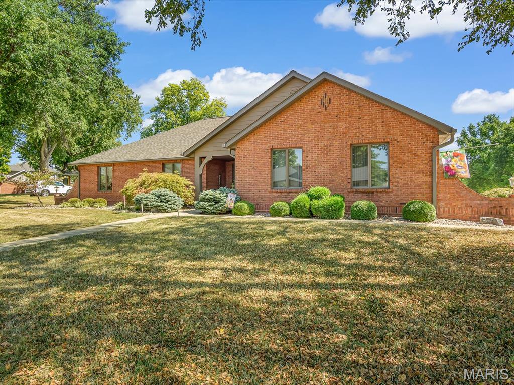 Looking for a home that blends quality, comfort, and stately curb appeal? This 3-bedroom, 2-bath, full brick, SPRAWLING ranch situated on an outstanding corner lot has it all! Step into a spacious living room with vaulted ceilings and a cozy brick fireplace — perfect for the upcoming fall and winter months. The kitchen features ample cabinet and counter space, a center island, walk-in pantry, and nearly new appliances w/ a breakfast area offering convenient backyard/patio access. The formal dining room is a bonus; if the breakfast area is sufficient for your dining needs, this space can easily become a home office or flex space. You will love retreating to the spacious primary suite, featuring a walk-in closet, double sinks, a jetted tub, and a separate, glass-door-enclosed shower. Two additional bedrooms, solid wood details, crown molding, and casement windows show thoughtful craftsmanship throughout. You will thoroughly enjoy the private backyard with a pergola, an aggregate patio, a pond (currently drained), a cypress privacy fence, and mature, lush landscaping. Your side load, two-car garage is heated with/ aluminum stairs to the attic, which has lights and storage space. This home combines timeless quality with modern convenience. Don't miss your opportunity to own this beautifully maintained home in the desirable Woodridge Estates.