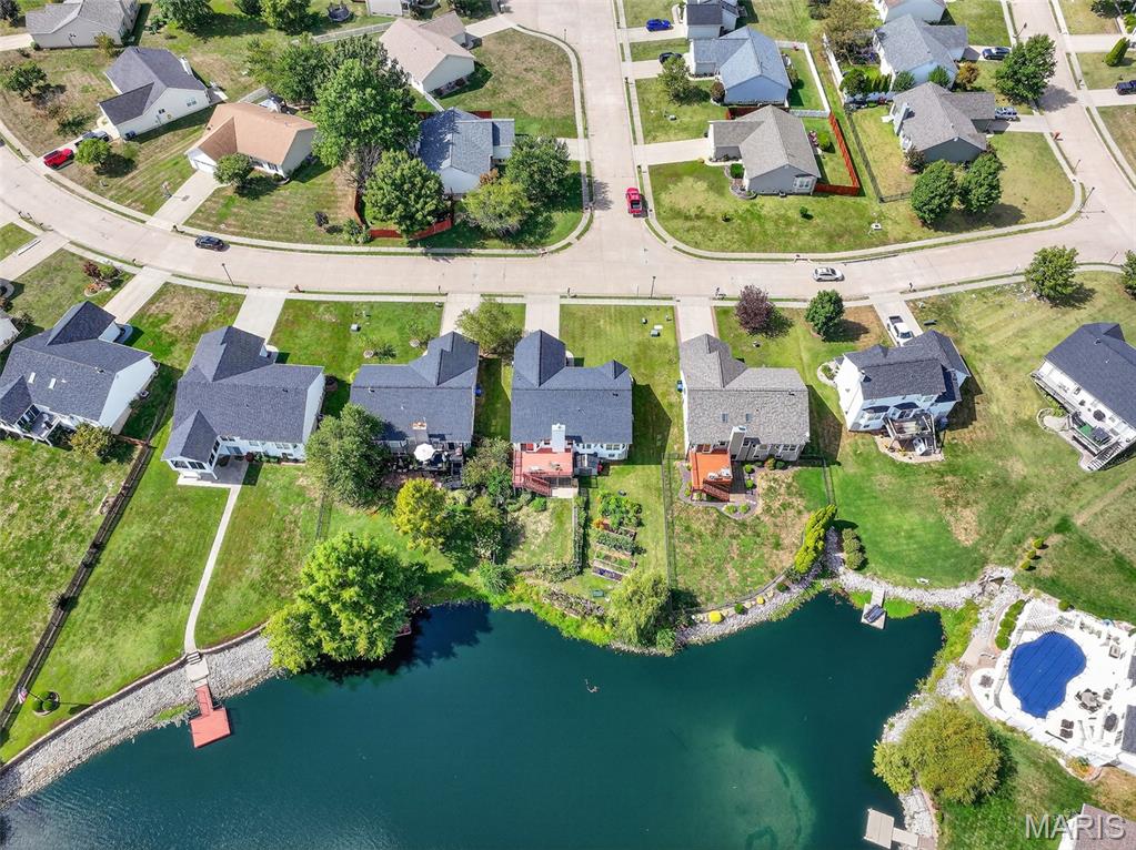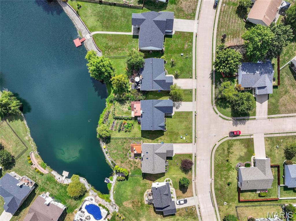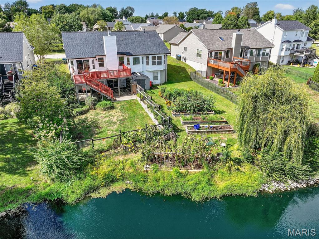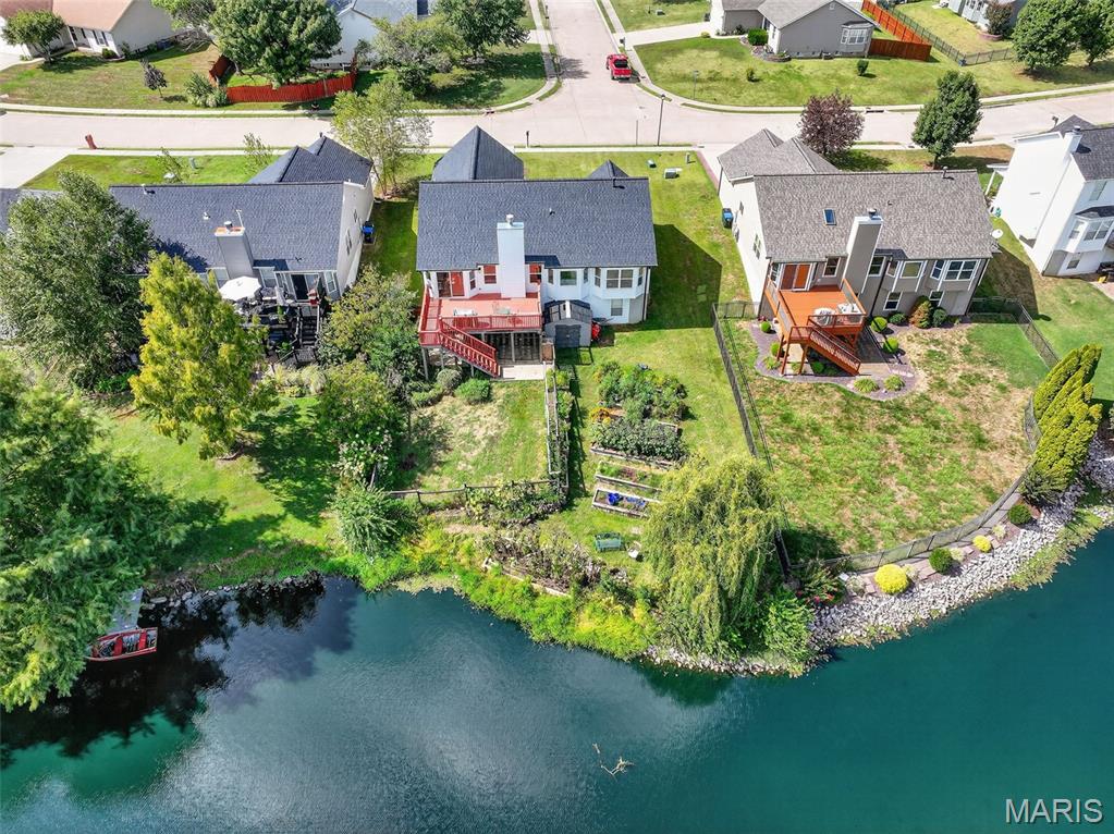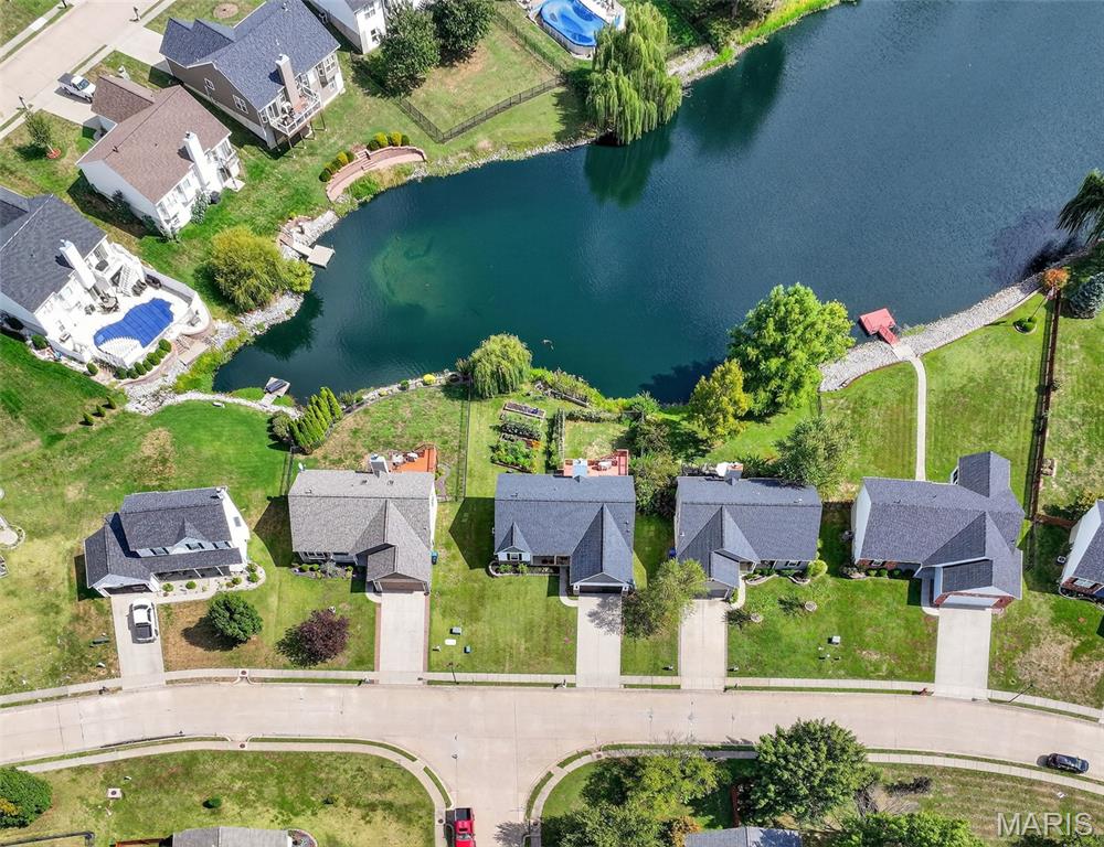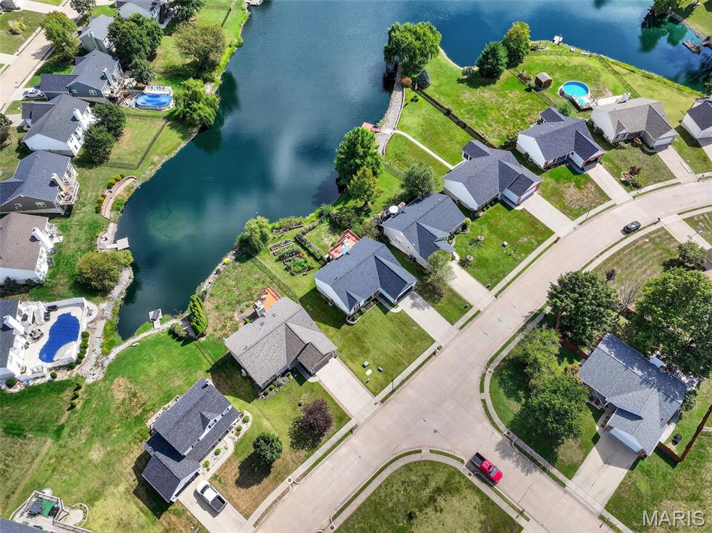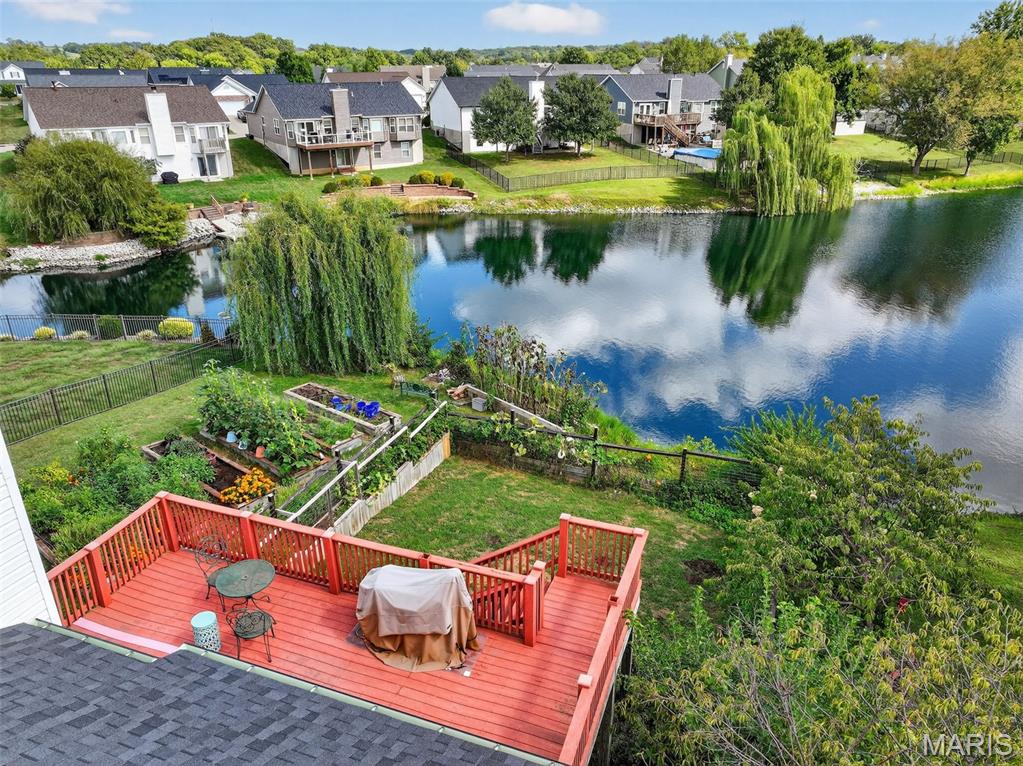 ANOTHER CHANCE AT THIS STUNNING PROPERTY WITH BRAND NEW DECK! A little bit city, a little bit country! This stunning ranch home in the highly sought-after Columbia Lakes subdivision offers a rare opportunity to own a slice of lakeside paradise, perfectly blending serene, country-like living with easy access to urban conveniences. Nestled right on the lake with breathtaking water views and direct lake access, this move-in-ready home has been updated with brand-new siding and roof, ensuring lasting beauty and durability. Step inside the freshly painted interior that exudes warmth and sophistication. The open floor plan features vaulted ceilings, abundant natural light streaming through large windows that showcase the lake, and a cozy wood-burning fireplace that anchors the living space. The heart of the home is the spacious kitchen featuring a show-stopping 10' custom-built cherrywood island, perfect for meal prep, gatherings, or casual dining, complemented by all stainless-steel appliances. The kitchen flows seamlessly into the breakfast and living areas, ideal for both entertaining & everyday living. Outdoors, enjoy a large deck & patio overlooking the lake, complete with a fire pit for cozy evenings, a full raised bed garden for gardening enthusiasts, & a fenced yard with a dedicated pet area. Additionally, find a primary suite with vaulted ceilings and a bathroom with a lake view, a walk-out basement with a wet bar, & storage space. Located minutes from the hwy, it offers quick access to STL. Lakeside living with city conveniences!