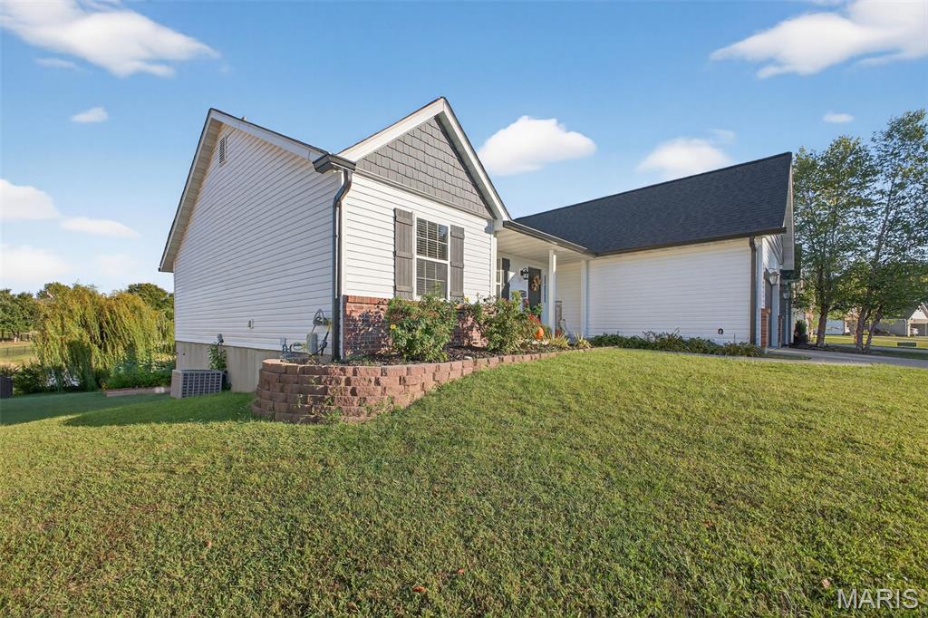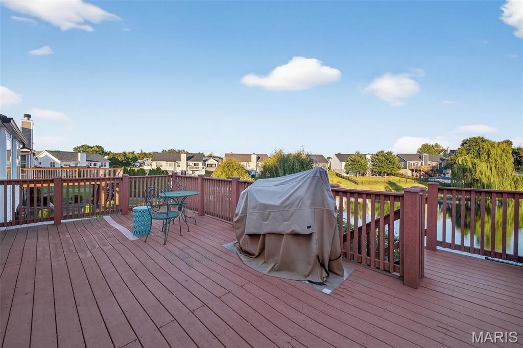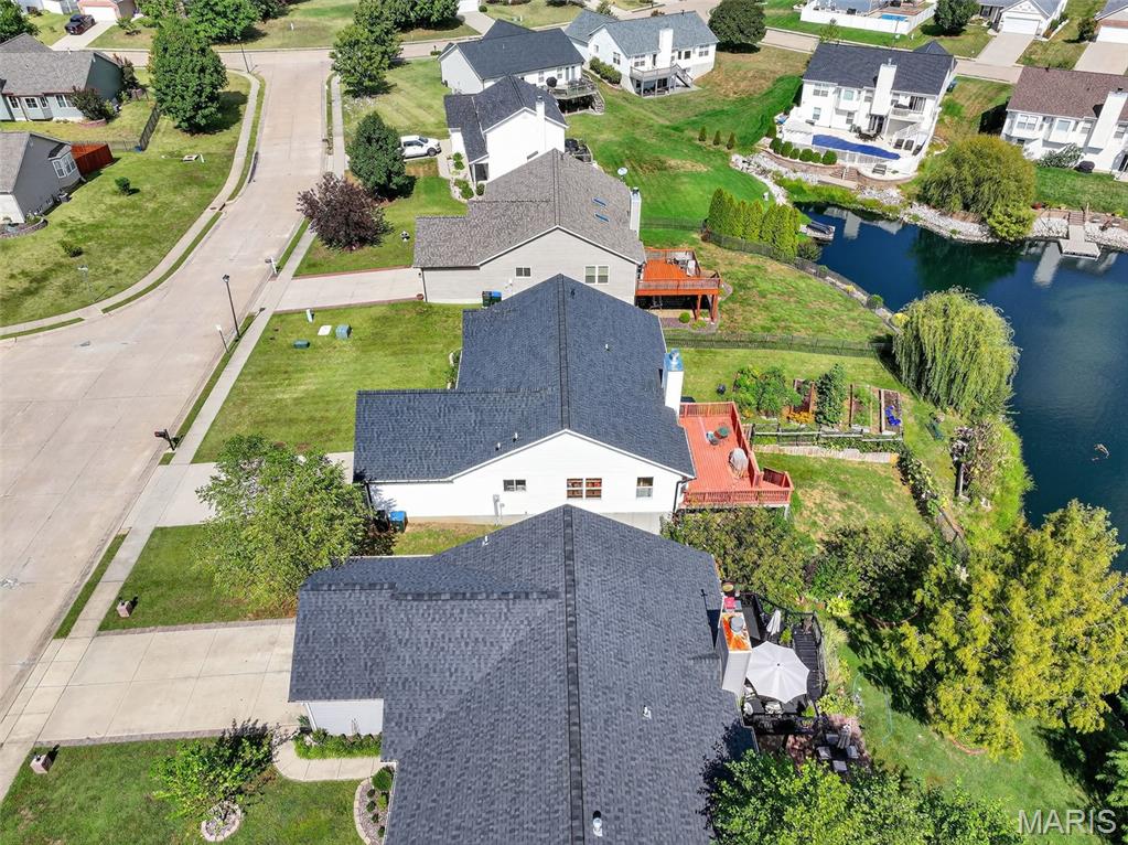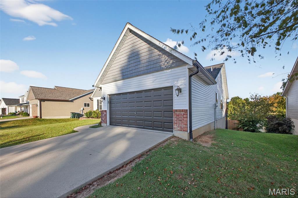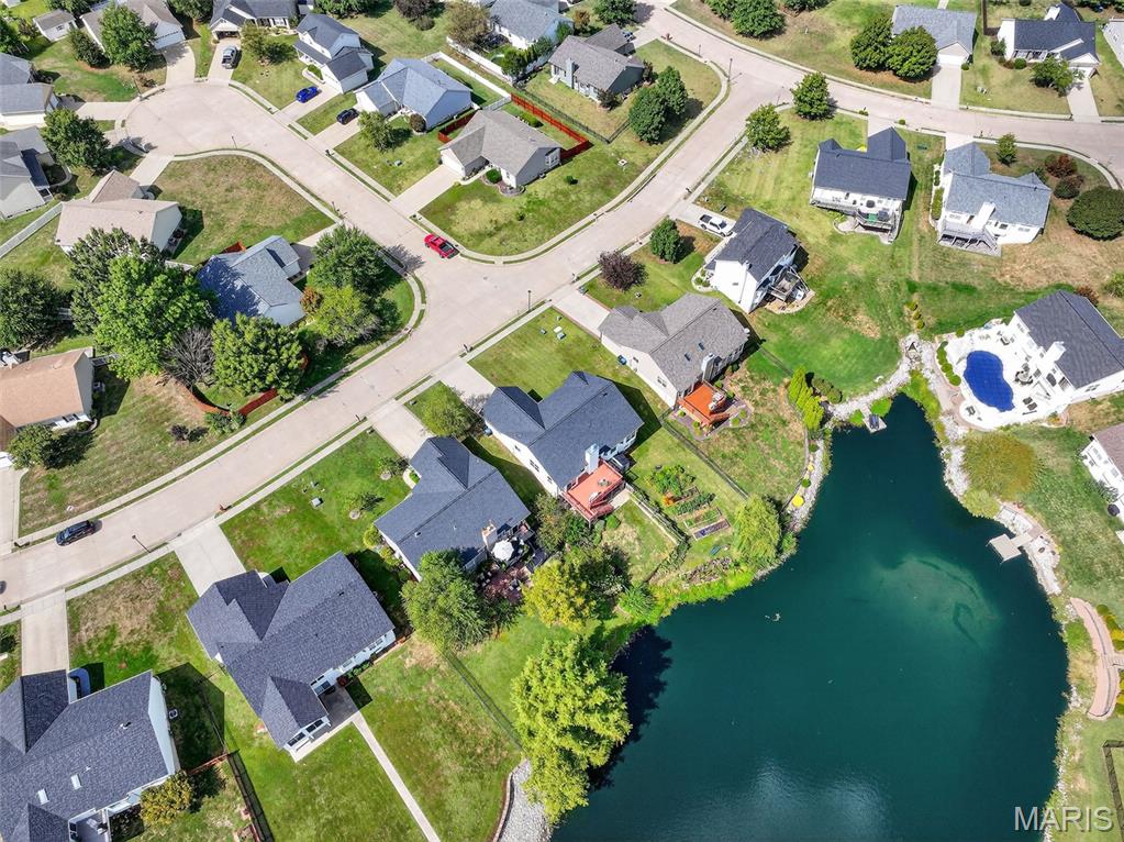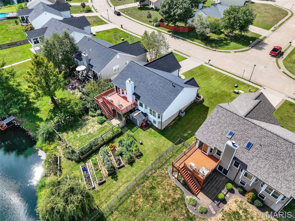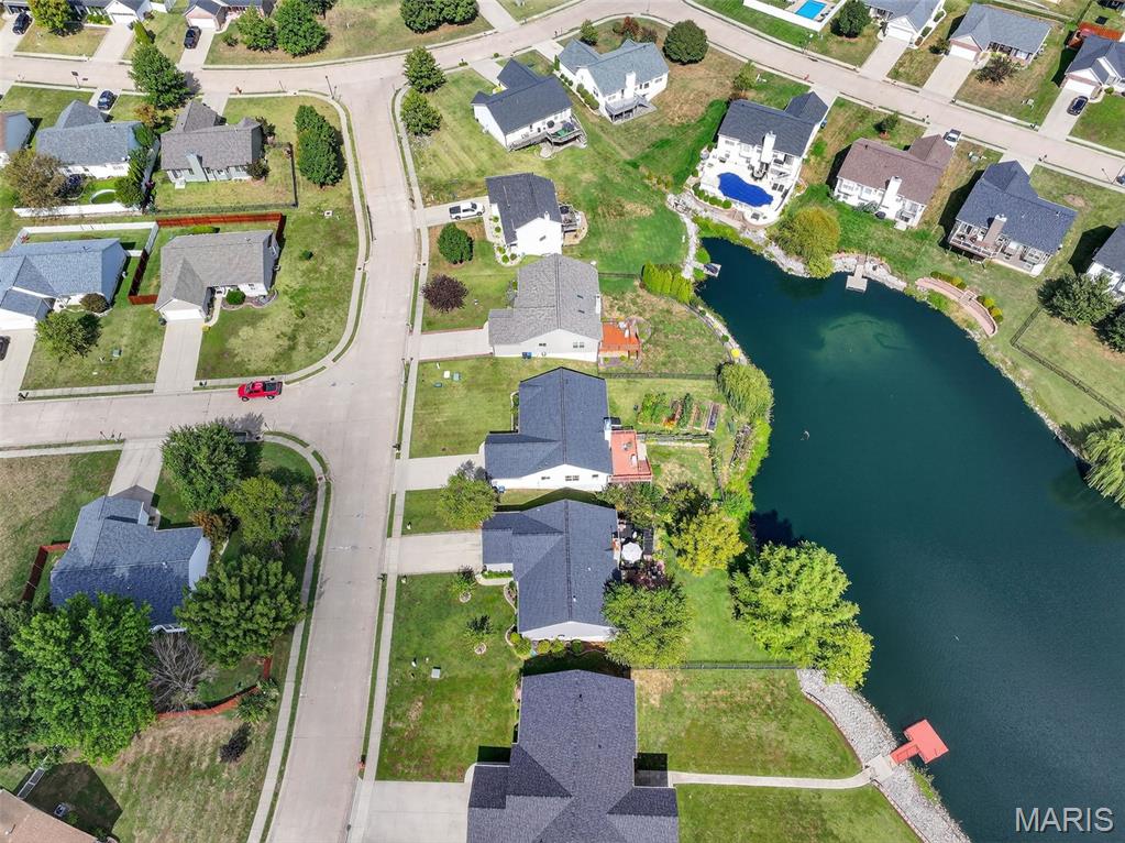 ANOTHER CHANCE AT THIS STUNNING PROPERTY WITH BRAND NEW DECK! A little bit city, a little bit country! This stunning ranch home in the highly sought-after Columbia Lakes subdivision offers a rare opportunity to own a slice of lakeside paradise, perfectly blending serene, country-like living with easy access to urban conveniences. Nestled right on the lake with breathtaking water views and direct lake access, this move-in-ready home has been updated with brand-new siding and roof, ensuring lasting beauty and durability. Step inside the freshly painted interior that exudes warmth and sophistication. The open floor plan features vaulted ceilings, abundant natural light streaming through large windows that showcase the lake, and a cozy wood-burning fireplace that anchors the living space. The heart of the home is the spacious kitchen featuring a show-stopping 10' custom-built cherrywood island, perfect for meal prep, gatherings, or casual dining, complemented by all stainless-steel appliances. The kitchen flows seamlessly into the breakfast and living areas, ideal for both entertaining & everyday living. Outdoors, enjoy a large deck & patio overlooking the lake, complete with a fire pit for cozy evenings, a full raised bed garden for gardening enthusiasts, & a fenced yard with a dedicated pet area. Additionally, find a primary suite with vaulted ceilings and a bathroom with a lake view, a walk-out basement with a wet bar, & storage space. Located minutes from the hwy, it offers quick access to STL. Lakeside living with city conveniences!