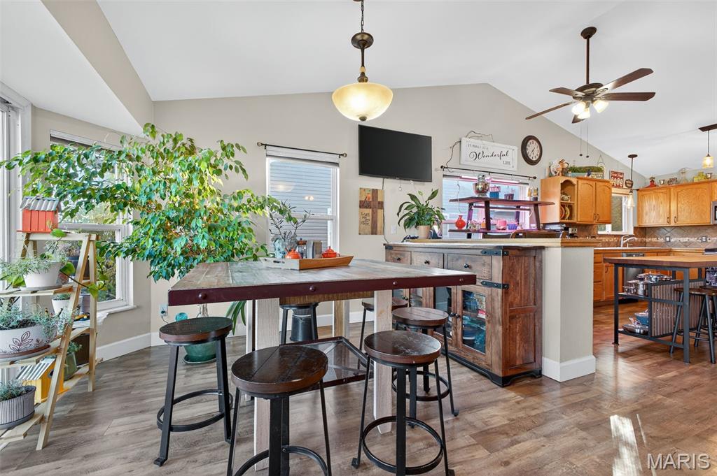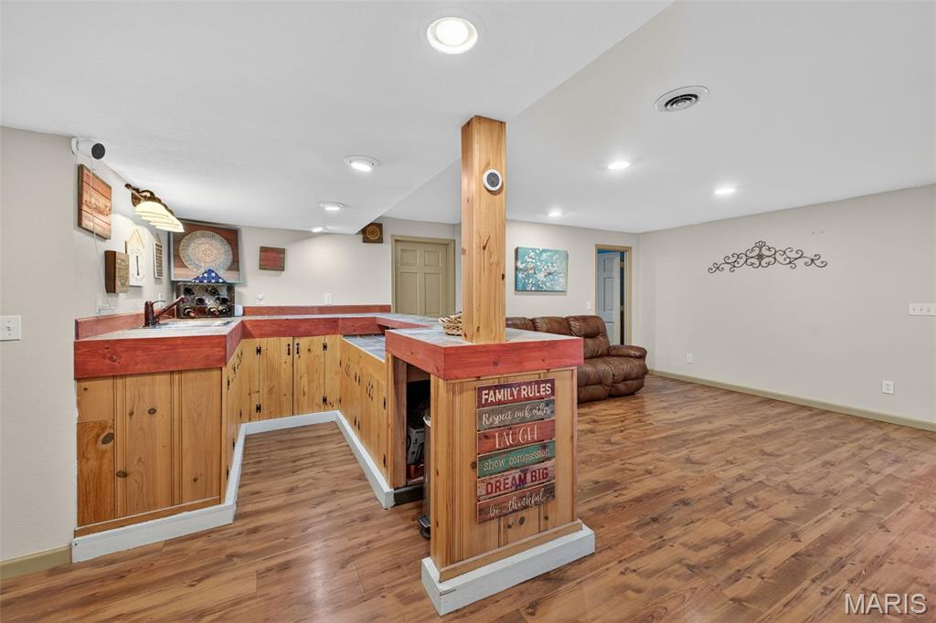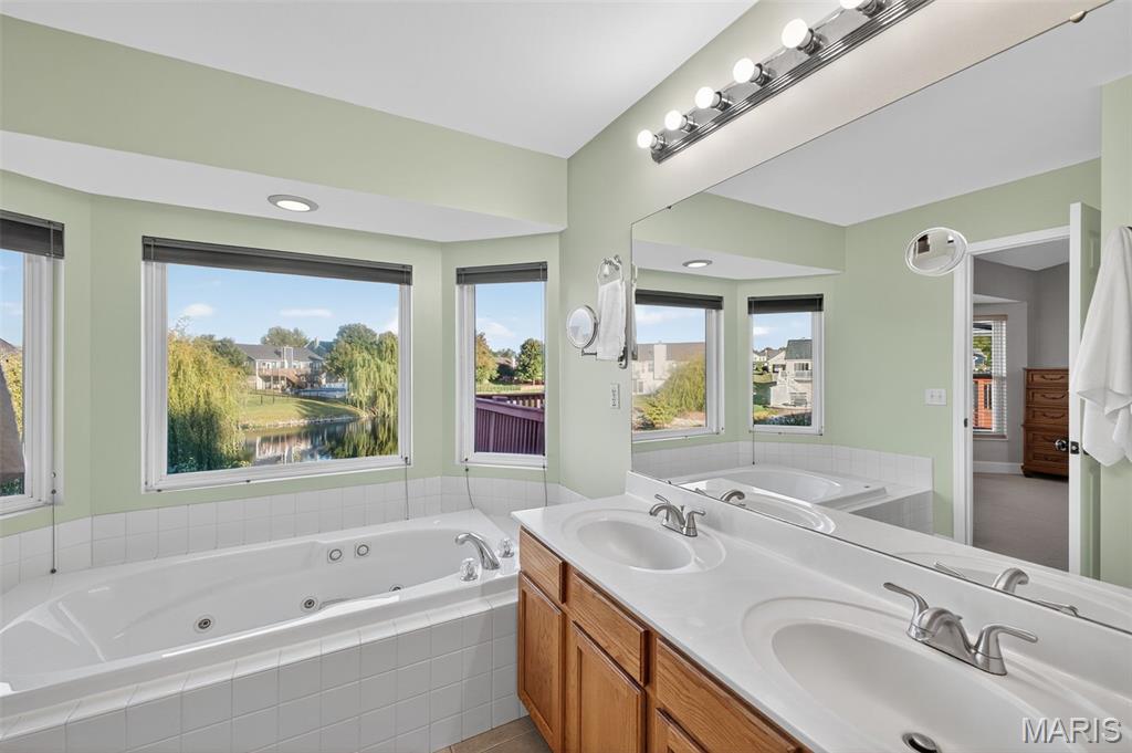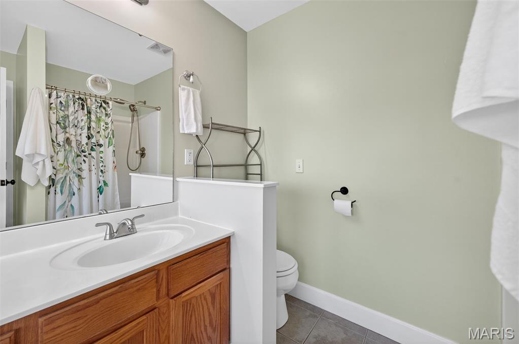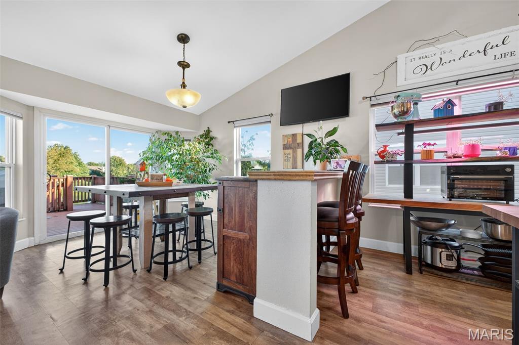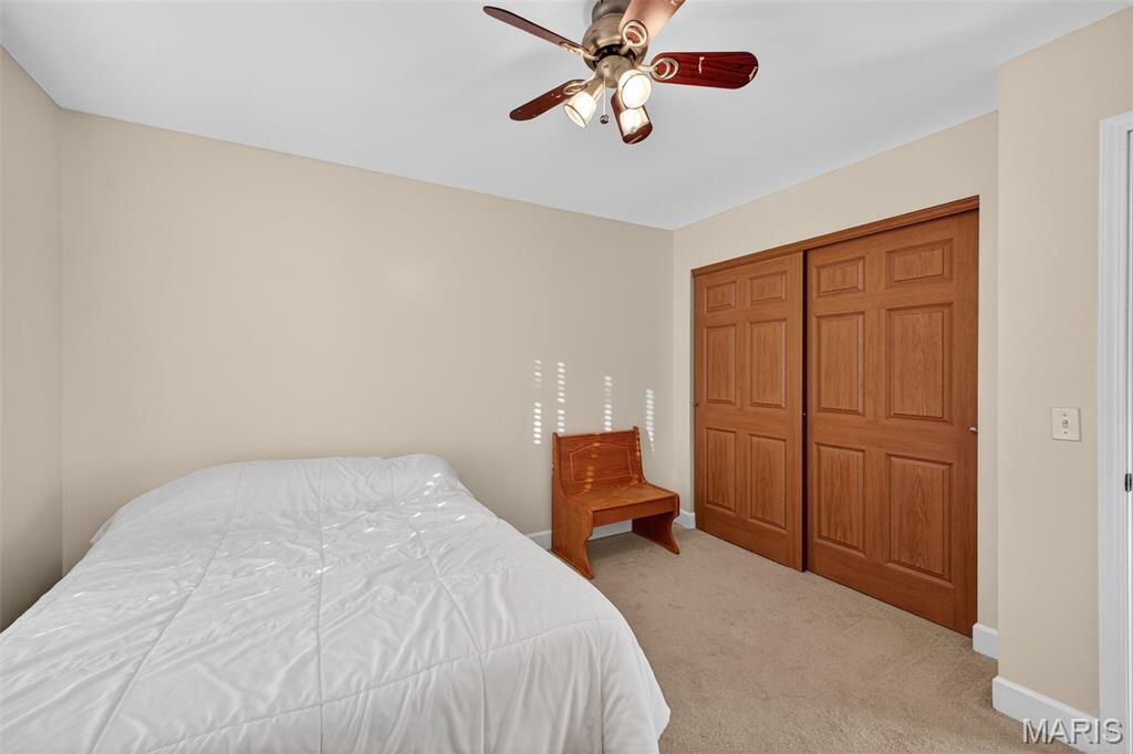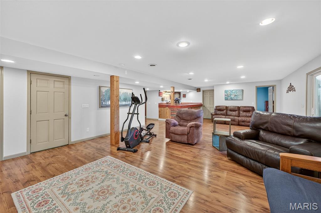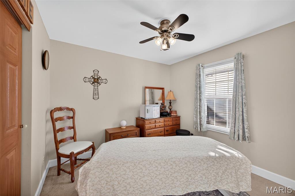 ANOTHER CHANCE AT THIS STUNNING PROPERTY WITH BRAND NEW DECK! A little bit city, a little bit country! This stunning ranch home in the highly sought-after Columbia Lakes subdivision offers a rare opportunity to own a slice of lakeside paradise, perfectly blending serene, country-like living with easy access to urban conveniences. Nestled right on the lake with breathtaking water views and direct lake access, this move-in-ready home has been updated with brand-new siding and roof, ensuring lasting beauty and durability. Step inside the freshly painted interior that exudes warmth and sophistication. The open floor plan features vaulted ceilings, abundant natural light streaming through large windows that showcase the lake, and a cozy wood-burning fireplace that anchors the living space. The heart of the home is the spacious kitchen featuring a show-stopping 10' custom-built cherrywood island, perfect for meal prep, gatherings, or casual dining, complemented by all stainless-steel appliances. The kitchen flows seamlessly into the breakfast and living areas, ideal for both entertaining & everyday living. Outdoors, enjoy a large deck & patio overlooking the lake, complete with a fire pit for cozy evenings, a full raised bed garden for gardening enthusiasts, & a fenced yard with a dedicated pet area. Additionally, find a primary suite with vaulted ceilings and a bathroom with a lake view, a walk-out basement with a wet bar, & storage space. Located minutes from the hwy, it offers quick access to STL. Lakeside living with city conveniences!