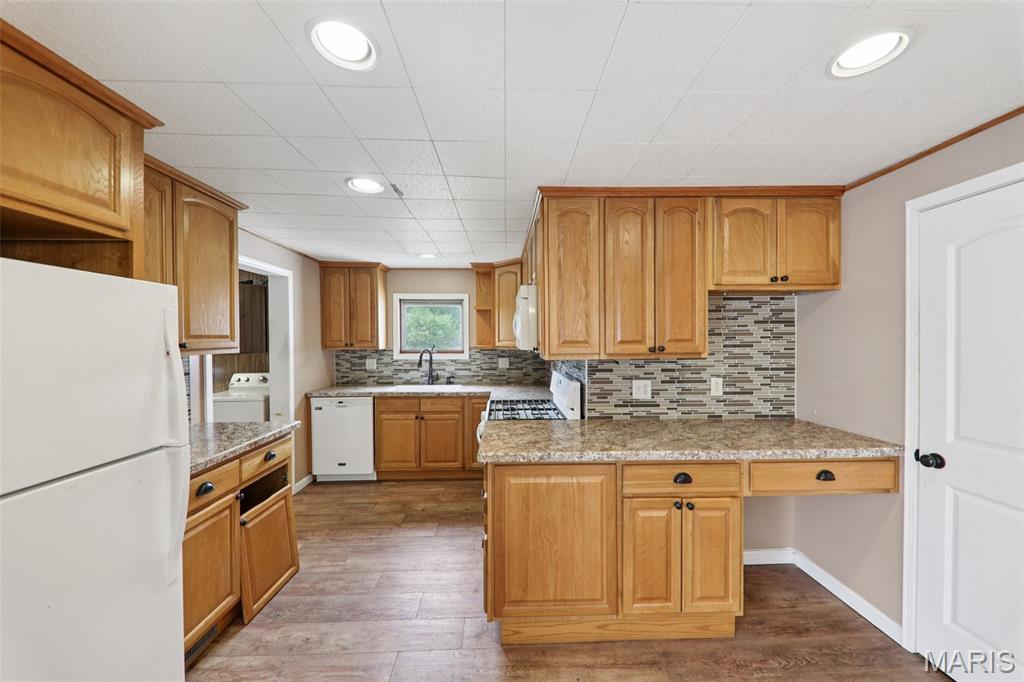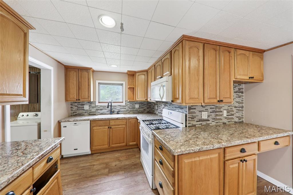 EVERYTHING YOU NEED ON ONE LEVEL! Welcome to this spacious 3 bedroom, 1 bathroom home on a large double lot. Nice sized living room with newer flooring. Property features a remodeled kitchen with appliances, a formal dining room, and a bonus room that could be used as a playroom, office, or a huge mudroom. 3 good sized bedrooms, a seperate laundry room, and an attached one car garage. Additional shed out back. Only two blocks from the middle and high school. Roof replaced in the last five years. Call your favorite agent and schedule your showing today!