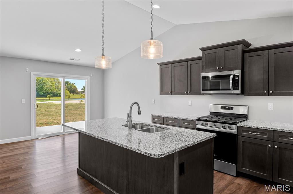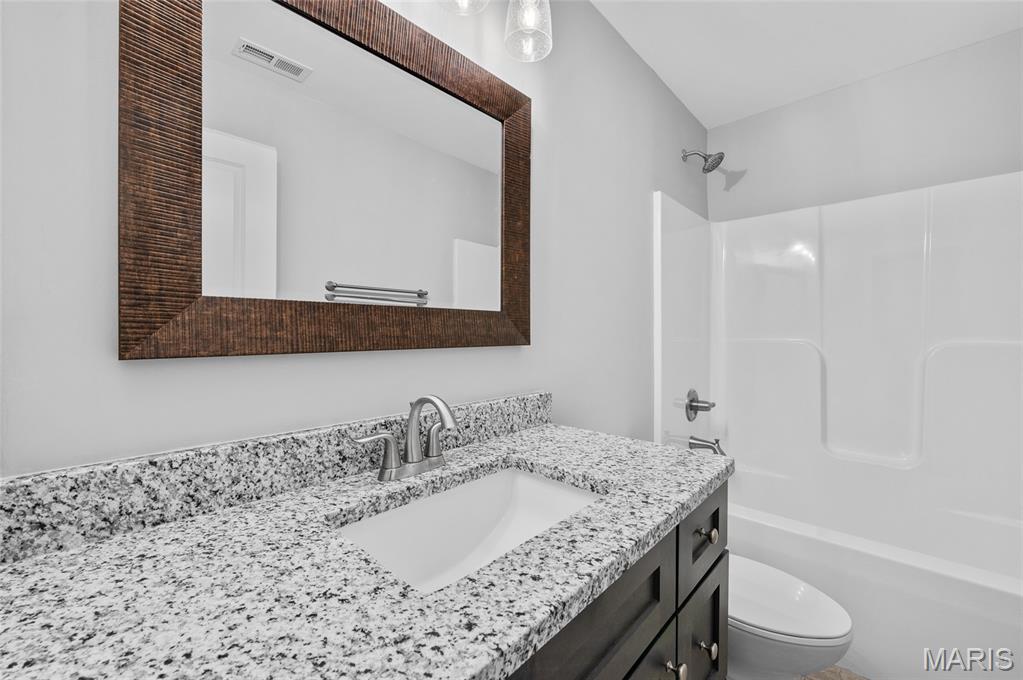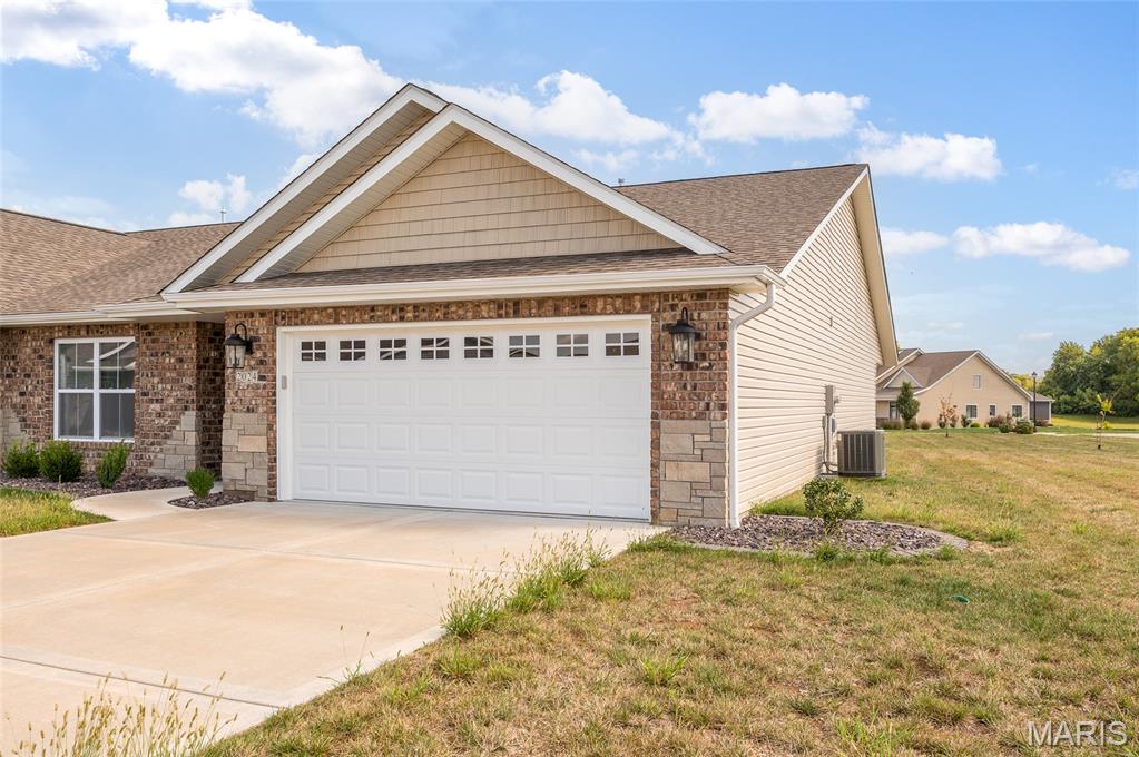 PLEASE CONTINUE TO SHOW...This sale is contingent on another home closing PLUS we have two more New Construction models that will be available for move-in in December. Read on...Take advantage of your opportunity to own an UPSCALE and barely lived in villa in the 55+ Serenade Villas community. You'll immediately notice the quality-build when you pull up and see the beautiful brick and stone work on the front of the home. The interior features an OPEN FLOORPLAN with living room and built-in electric fireplace, kitchen with center island, upgraded cabinetry and granite countertops, dining area, all under the vaulted ceiling offering a nice, airy feel. The primary suite offers a bath with dual vanities, walk-in closet and a tiled shower. There's also a 2nd bedroom + a bonus room, perfect for a home office or craft room. Enjoy the fresh air relaxing on your covered patio. Features include NO STEPS throughout the home, luxury vinyl plank and ceramic tile flooring, 2-car garage with storage area and more. The location is ideal, near shopping, parks, STOCKED pond, walking trail, dining and interstates...