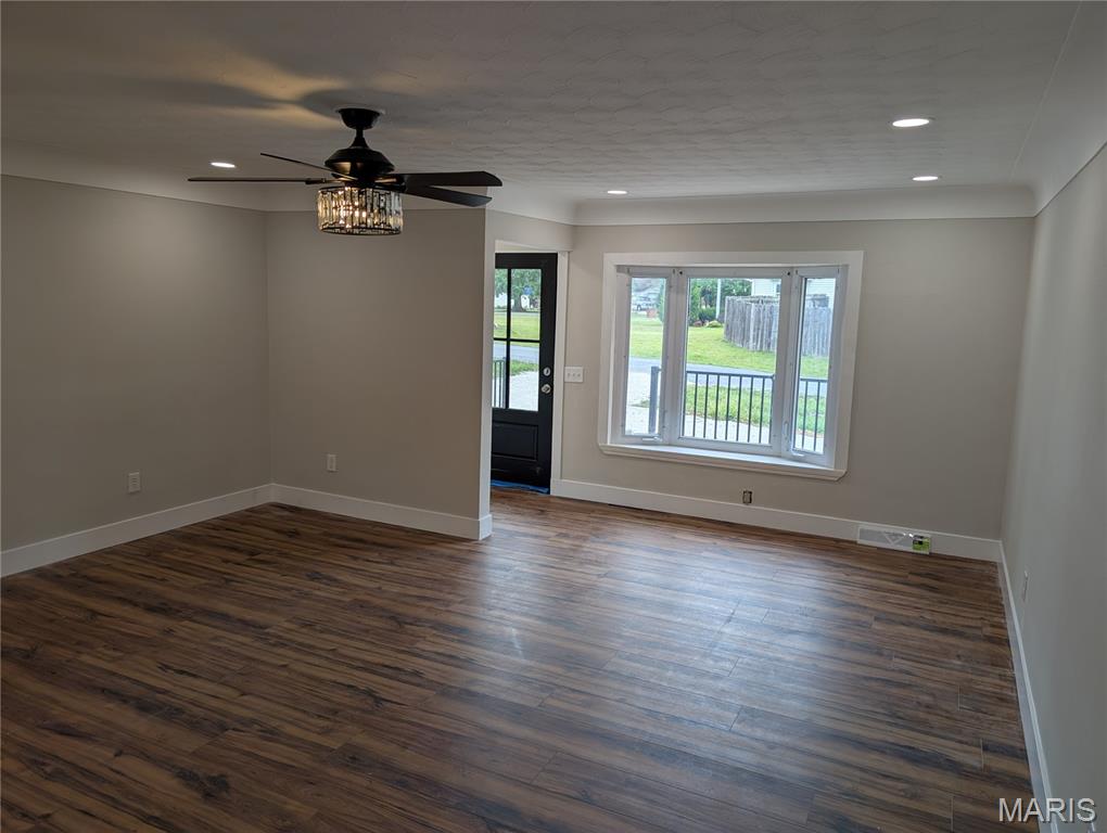 Still have time to get into this one for the Christmas season!! Total remodel job w/everything new 2025! Architectural shingled roof, sheeting, siding, decks, landscaping, circle driveway, and concrete patio and 2 car garage and hydroseeded yard on exterior. Inside all new vinyl plank flooring, entirely freshly painted interior. New electrical service and wiring and ceiling fans and lighting. Custom 2 color kitchen cabinets w/designer backsplash, quartz countertops, 5ft breakfast bar island, Samsung stainless appliance package. Luxury vinyl plank flooring. Atrium door to enormous 36x12 back deck. 3 bedrooms on main floor. Gutted bath w/double bowl vanity, designer tiled floor and tub/shower. Full finished walkout basement w/large laundry room w/butcher block folding cabinet space. Tiled seated shower and floors in 3/4 bath. Family room. Office area. And extra large 4th bedroom w/5x8 walk in closet. All new mechanicals w/electic water heater and high efficiency 90+HVAC system. Way too much to mention in this beautiful rehab that looks just like a new home for a great price at $254,900! Book your appointment and buy before it is gone.