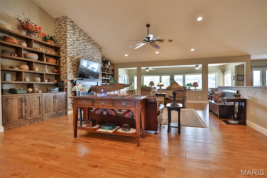 Lakeside Luxury Living Where architecture, scenery, and thoughtful design converge — this lakefront retreat is a masterpiece of craftsmanship and comfort. With six spacious bedrooms and four baths, the home offers flexibility for every lifestyle. If you don’t need all six, one of the upper bedrooms now serves beautifully as a home office adjoining the primary suite, while a lower-level bedroom functions perfectly as a home gym. Inside, you’ll find an open floor plan with soaring vaulted ceilings, hardwood flooring, and plaster coated walls — all enhanced by panoramic views of the main lake from nearly every room. The chef’s kitchen is truly remarkable, offering Wolf appliances, Sub-Zero refrigeration, granite countertops, a prep sink, steamer, beverage cooler, and ice maker — all surrounded by extensive custom cabinetry and built-in storage throughout. The primary suite is a true retreat, complete with a deep whirlpool tub and steam shower for the ultimate spa experience. Upstairs bedrooms feature double closets, offering generous storage and functionality. On the walkout lower level, you’ll find a cozy fireplace in the family room, a home theatre with 120” screen, and two versatile bonus areas perfect for recreation, work, or hobbies. Large windows frame the serene lake views, creating an inviting space for relaxation or entertaining. Step outside and discover your private oasis — a beautifully landscaped yard leading to 150 feet of pristine lake frontage, a covered dock with boat lift, fenced rear lawn, and convenient access to the beach, pickleball, tennis courts, and playground. Whether hosting family and friends or enjoying a quiet evening by the water, this property redefines lakefront living.