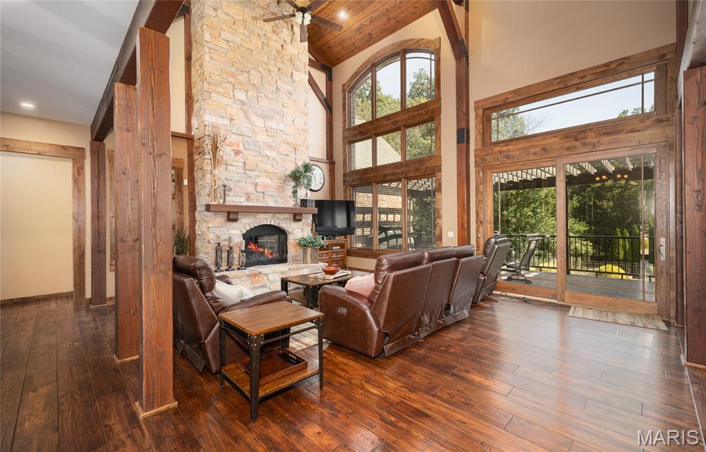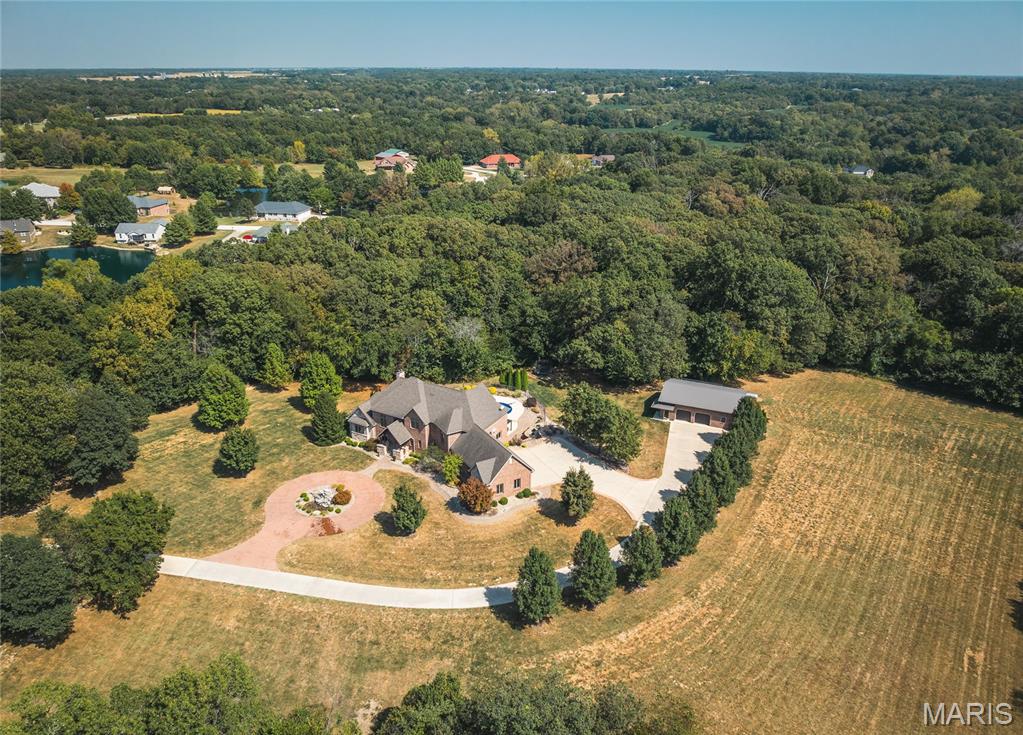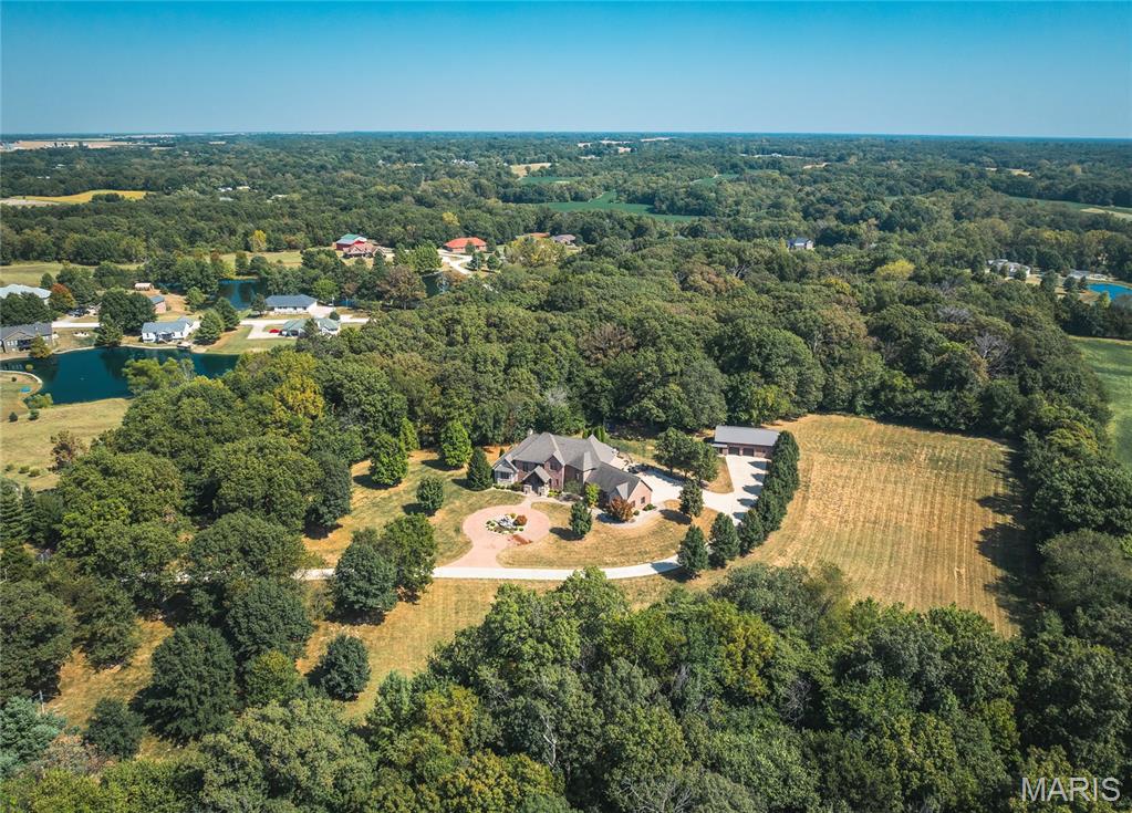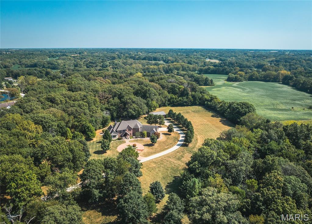 Experience refined living in this 5 bedroom, 7 bath custom-built estate nestled on 20 private acres. From its impressive curb appeal and circular drive to the thoughtfully designed interiors, this home is built to impress. The heart of the home is the chef’s kitchen, showcasing a large granite island, walk-in pantry, and custom cabinetry, seamlessly flowing into spacious living and dining areas designed for everyday comfort and special occasions alike. The luxurious primary suite offers a spa-like retreat, while each additional bedroom includes its own private bath for ultimate privacy. The lower level is built for fun, featuring a wet bar, lounge space, and room for recreation. Step outside to a true backyard oasis with an inground pool, expansive patio, and leisure areas perfect for summer gatherings. Additional highlights include a 35x47 climate-controlled outbuilding, ideal for storage, hobbies, or a workshop, along with a whole-house generator for peace of mind. All this just 35 minutes from Lambert International Airport, combining privacy with convenience.