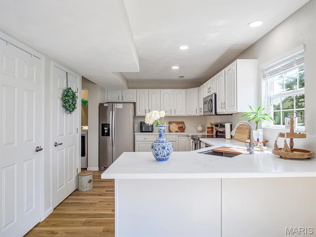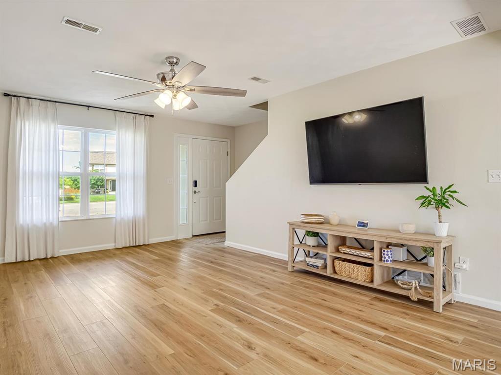 Don't miss this updated 3-bedroom, 2.5-bath two-story townhouse located in the highly sought-after Freeburg School District! The main level features a spacious open-concept living and dining area—perfect for entertaining—plus beautiful new LVP flooring. The kitchen offers custom cabinetry, a pantry, solid surface countertops, a breakfast bar, and ample prep space. Enjoy the convenience of a main-floor laundry room with washer and dryer included, along with a half bath for guests. Upstairs, you'll find a spacious primary suite, two additional generously sized bedrooms with walk-in closets, and a full hall bath. Brand-new carpet upstairs and updated light fixtures throughout add a fresh, modern touch. Step outside to a large patio and beautifully landscaped, fenced backyard—ideal for relaxing or entertaining. Attached garage, roof replaced in 2022, and appliances, HVAC, and water heater all new in 2020. This one checks all the boxes—schedule your showing today!