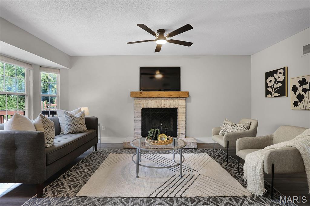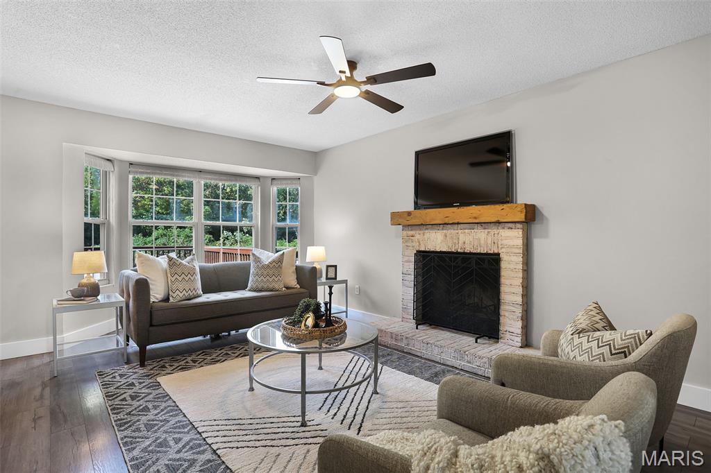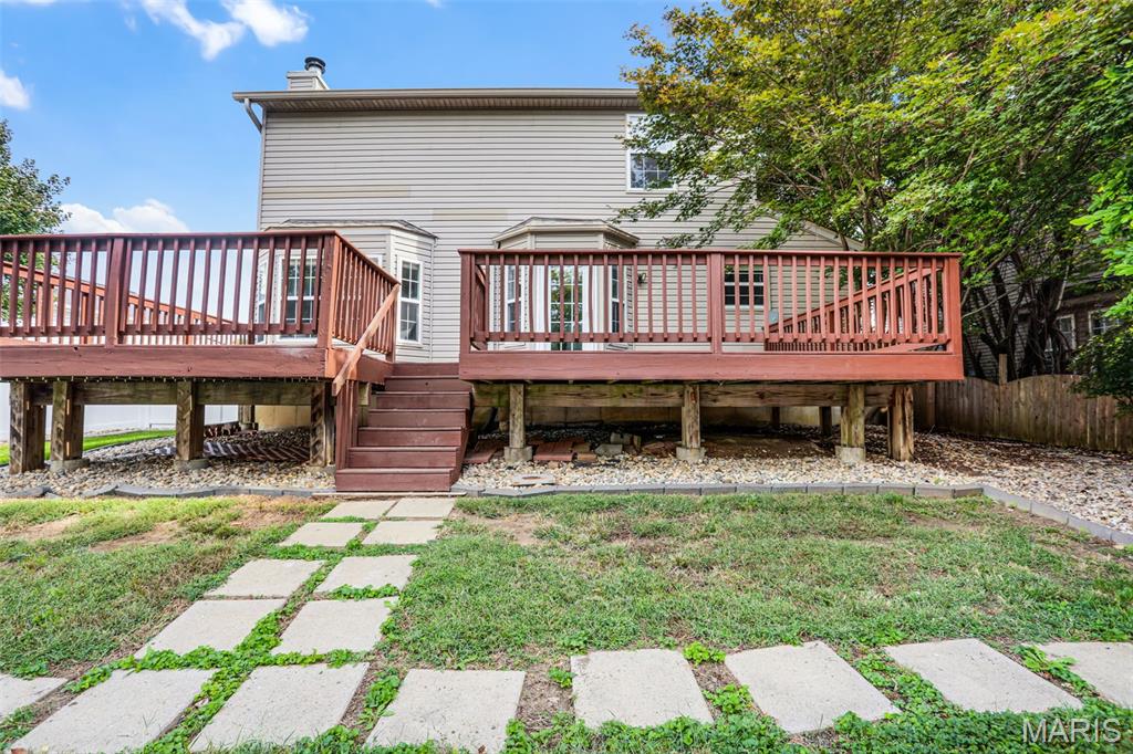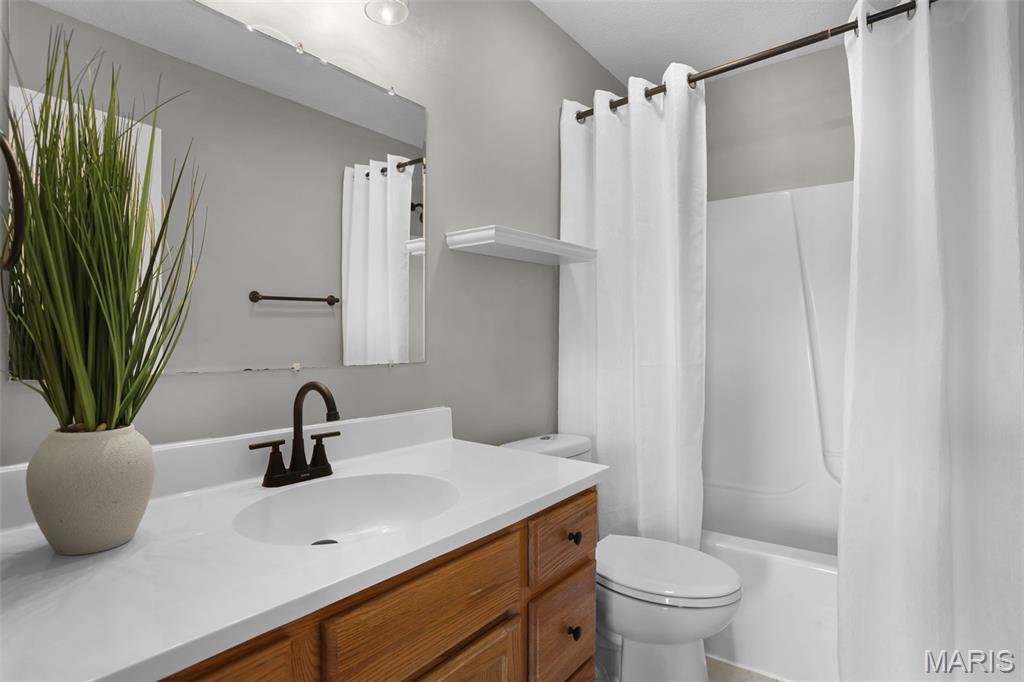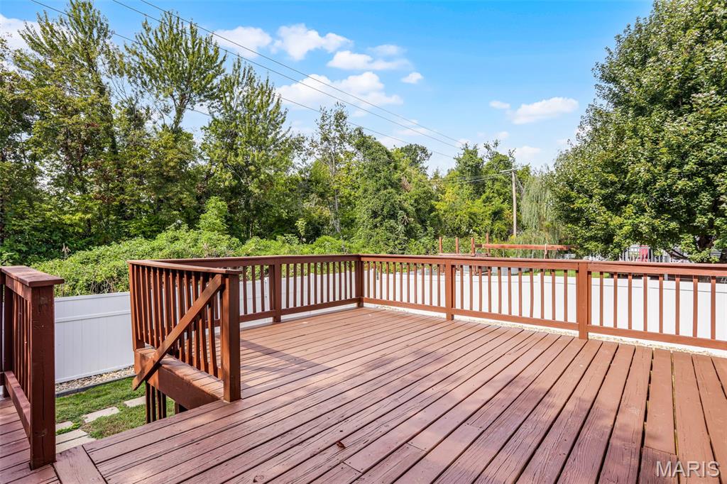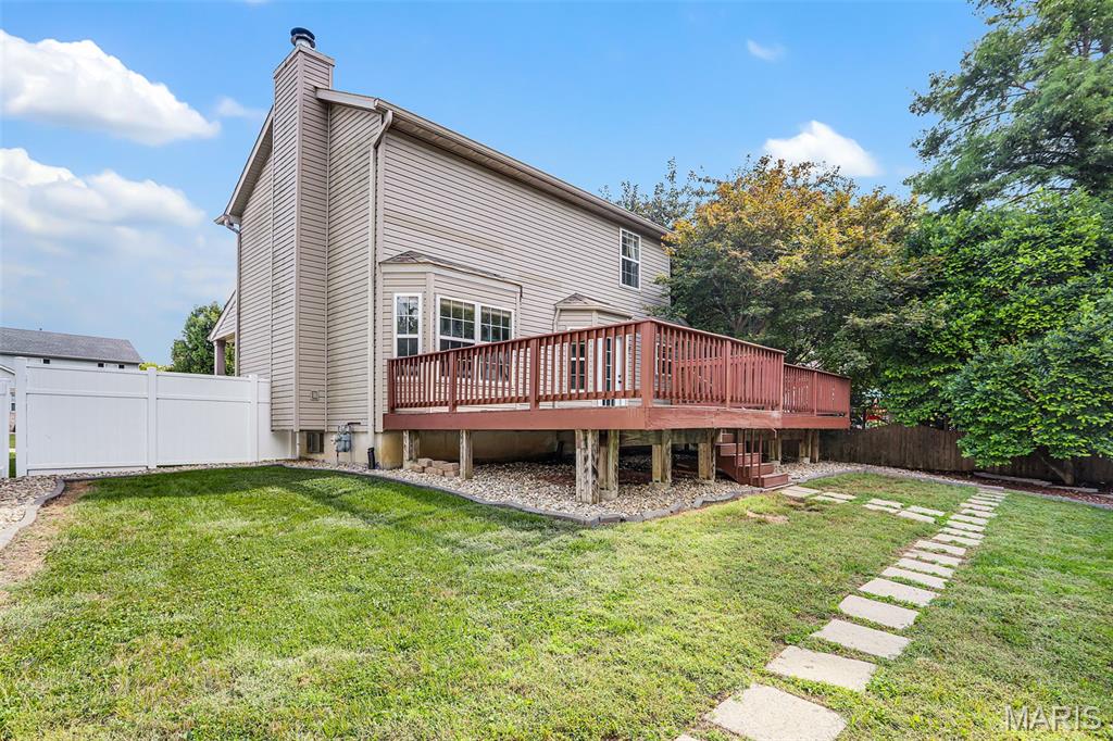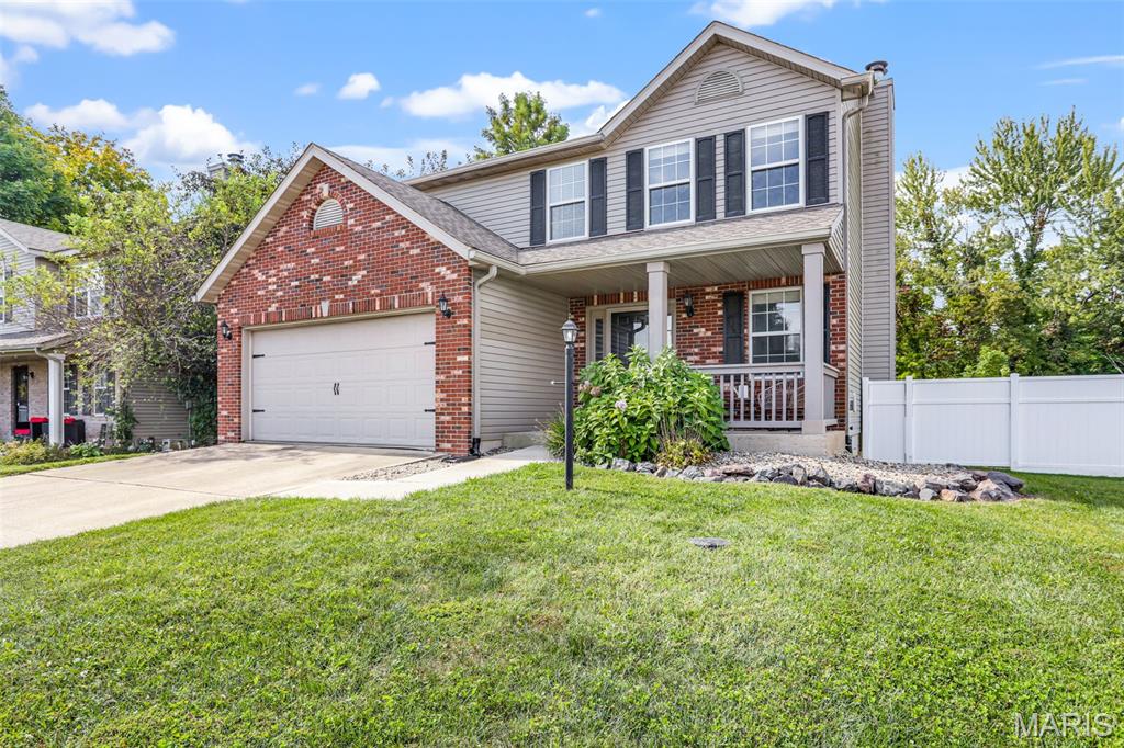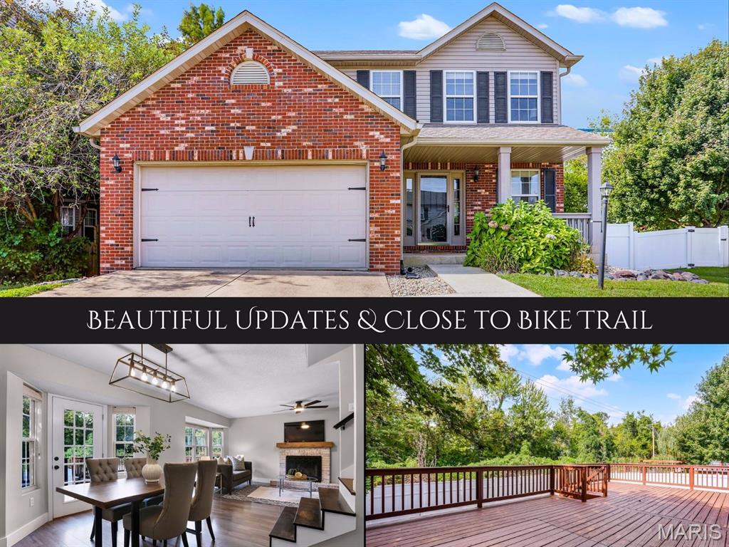 Nestled in the sought-after Huntington Place Subdivision, this charming two-story home blends comfort, style, and convenience. From the moment you step inside, you’re greeted by an inviting layout designed for both everyday living and entertaining. The front entry opens to a spacious living room, where warm laminate floors and a whitewashed brick fireplace set the stage for cozy nights at home. The kitchen is a true highlight—bright and modern with quartz countertops, stainless steel appliances, and crisp white cabinetry. A built-in coffee bar adds personality and function, while the adjoining dining area makes gatherings easy and enjoyable. Upstairs, the owner’s retreat feels open and relaxing with its vaulted ceiling, walk-in closet, and private bath. Two more generous bedrooms and an additional full bath provide plenty of space for family or guests. The finished lower level offers even more flexibility with a large family room perfect for game days or movie nights, plus ample storage to keep everything organized. Outside, unwind on the oversized deck overlooking a fenced backyard with just the right mix of sun and shade—ideal for summer cookouts or quiet evenings outdoors. With close proximity to bike trails, shopping, and major highways, this home offers a lifestyle that’s as convenient as it is enjoyable. Move right in and start making memories!
