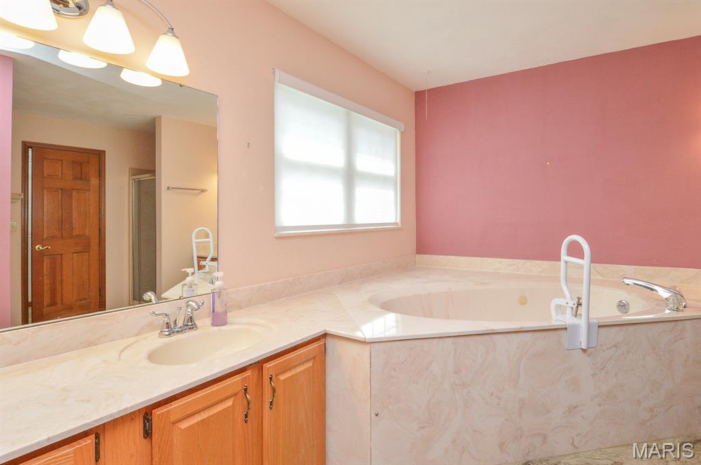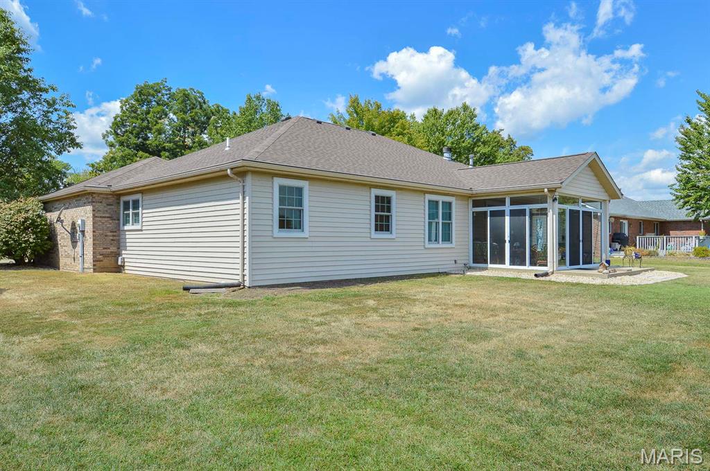 Price listed is Starting Bid Only. Bidding starts closing 10/22/2025 @ 6:30 p.m. This elegant 3-bedroom, 2-bathroom brick ranch home offers timeless charm, and modern comfort is situated in the Westhaven Place Subdivision of Belleville, IL. From the moment you step through the stained-glass front door, natural light pours into the bright entryway, highlighting the rich LVP floors and welcoming ambiance. A formal dining room highlights large bay windows, perfect for hosting memorable gatherings. Opposite is the cozy family room that has office space or guest room potential. The open-concept, well-appointed kitchen with stainless-steel appliances, granite countertops, and custom cabinetry which create a space that is both functional and stylish. A casual dining nook adds warmth and convenience to everyday meals, while a partial glass door leads to a spacious four-season room overlooking the backyard. Anchored by a gas-burning fireplace set in a classic ornate tile and wooden mantle, the living room offers comfort and charm throughout the seasons. Down the main hallway is the dedicated laundry room with washer and dryer and two equally spacious and thoughtfully arranged bedrooms near a full bathroom boasting a walk-in tub with shower. The primary suite features a large walk-in closet, dual vanities, a whirlpool tub, and a standalone shower, creating a private retreat for relaxation. The partial, unfinished basement provides generous storage, utility access, and additional washer and dryer hookups. Outside, the beautifully manicured 0.26± acre lot includes a paved driveway and an oversized two-car garage, combining curb appeal with practicality. Located just minutes from schools, IL-15, Scott Air Force Base, and all major Metro East amenities! With its blend of classic design, modern updates, and unbeatable location, this home truly checks all the boxes! Property will sell under auction terms and be sold AS- IS, WHERE-IS. Seller, will not make any repairs as a result of any building, occupancy, or environmental inspections. Buyer will be required to sign an Auction Purchase & Sale Agreement if final bid is accepted by Sellers.
