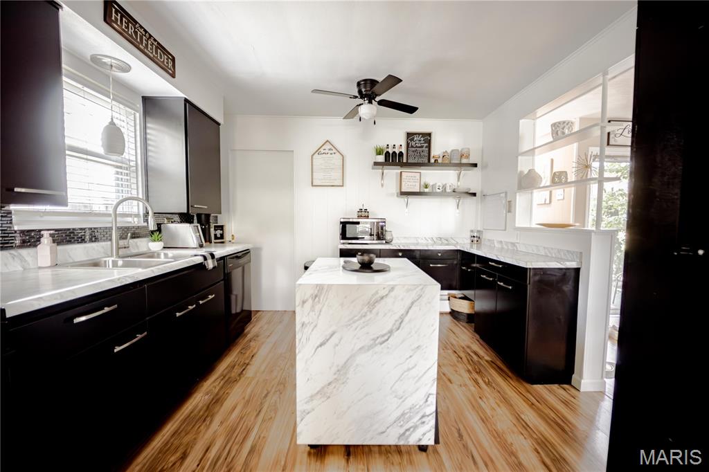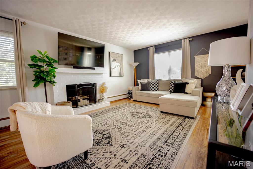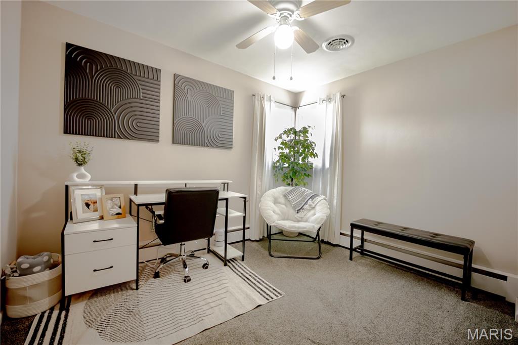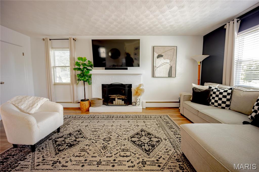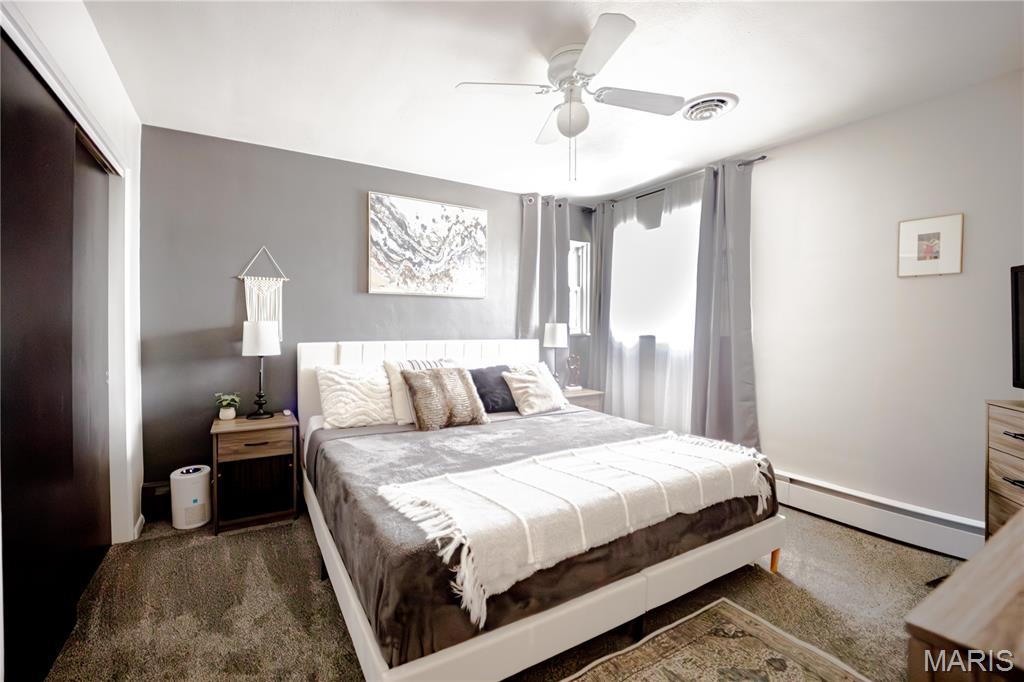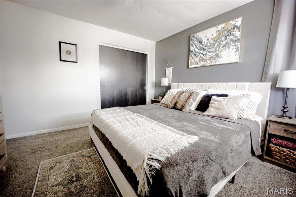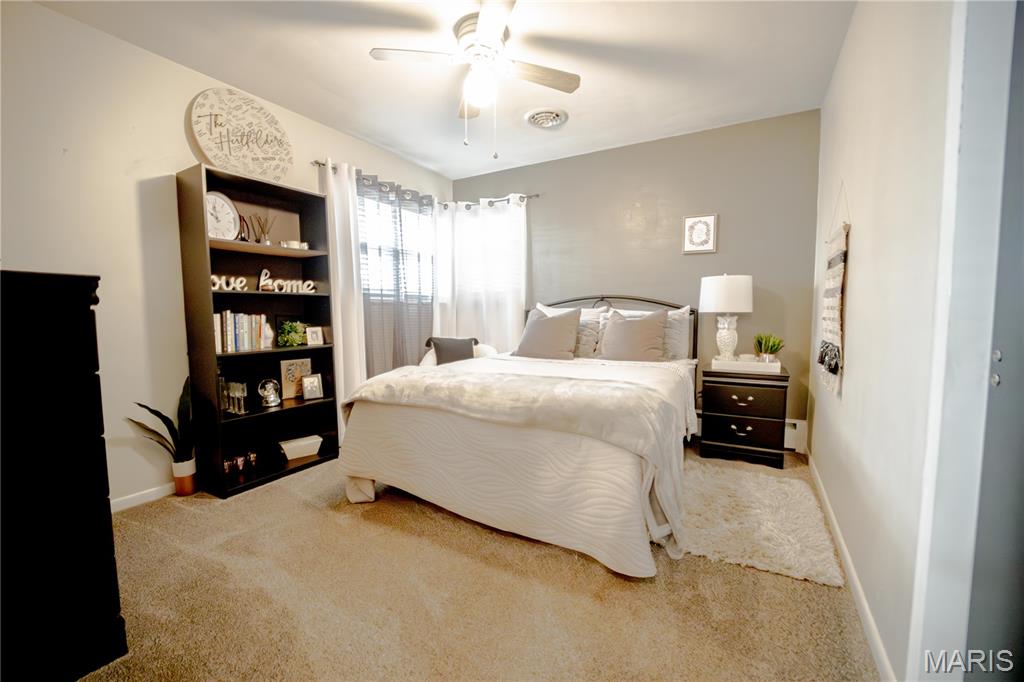 Welcome to this beautifully maintained home full of charm and natural light throughout. Featuring three spacious bedrooms all on the same level, this home is designed for comfort and convenience. The bright, clean interior boasts neutral paint tones, newer carpet upstairs (2020), and many updated light fixtures. The family room offers a cozy wood-burning fireplace (never used). The kitchen includes ample storage space with a built-in pantry, and all appliances stay, including the washer and dryer! (2025/Refrigerator) Enjoy the updated basement bathroom with a new vanity, and take advantage of the clean, unfinished basement that offers tons of storage or the potential to finish it to your liking. Step outside to a fully fenced backyard with a fire pit and patio area ideal for entertaining. There’s also a side yard that could easily be fenced in and incorporated into the backyard for additional space. Located close to downtown attractions, the Missouri bridge, and the scenic River Road to Grafton! Don’t miss your chance to own this move-in-ready gem! Buyer's agent to verify MLS info.