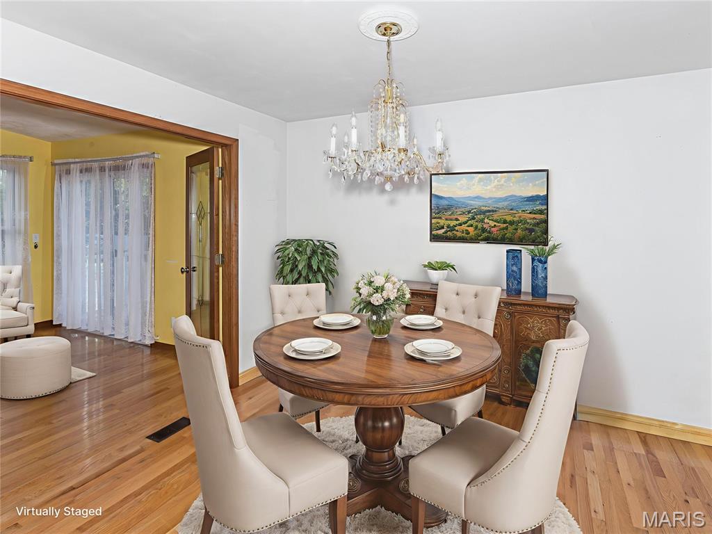 SPACIOUS 4-BEDROOM WITH MODERN UPDATES & LARGE SUNROOM CLOSE TO SAFB AND O'FALLON CONVENIENCES! PASSED O'FALLON OCCUPANCY AND MOVE IN READY! Beautifully maintained home features HARDWOOD FLOORING and UPDATED KITCHEN AND BATHS. The open dining area flows seamlessly into the kitchen, perfect for everyday living and entertaining. The kitchen was updated with new cabinetry, granite countertops, tile backsplash and ceramic tile flooring. Off the dining room enjoy the large heated/cooled sunroom with vaulted ceiling, can lighting and wood flooring that opens to a maintenance free deck that overlooks vinyl, privacy fenced backyard! Home offers 4 BEDROOMS and 2 BATHS, along with laundry area where washer and dryer is included in sale. Large lower level family room and bonus area. Lots of storage area as basement was built under sunroom when it was added. Additional updates include roof 2025, central air - 2-3 years old, hwh 2023, gutter helmet 2025 and newly poured concrete driveway. Shed included is 10 x 12 and has electric. Oversized two car garage with built in cabinets. Sq Footage is approximate and not guaranteed. PASSED O'FALLON OCCUPANCY!