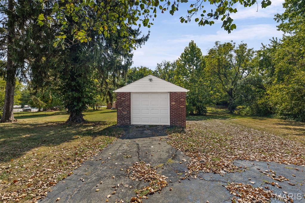 Full of character and timeless appeal, this all-brick Tudor-style home sits on a spacious one-acre lot with plenty of room to enjoy the outdoors. The main level features a bright living room with a brick fireplace, a kitchen with maple cabinets, and bamboo flooring that continues into the dining room. Enjoy morning coffee or quiet evenings in the inviting three-seasons room. With four bedrooms and two full bathrooms, the home offers flexible living space, including an upper-level primary suite with a sitting room, on-suite bath, and two walk-in closets. The full, unfinished lower level provides excellent storage or potential for future expansion. Two driveways and two detached garages offer ample parking and workspace options. While the home is being sold as-is, it has passed city occupancy inspection. Notable updates include: roof (2013), AC (2016, compressor 2025), water heater (2016), and high efficiency furnace (2024). A rare opportunity to own a distinctive Tudor home on a beautiful, private lot!