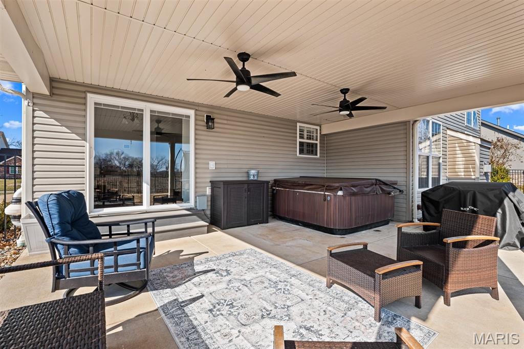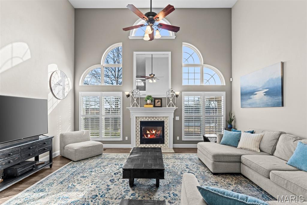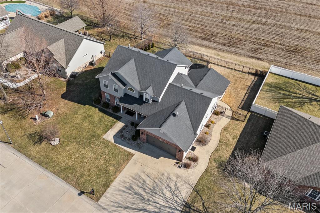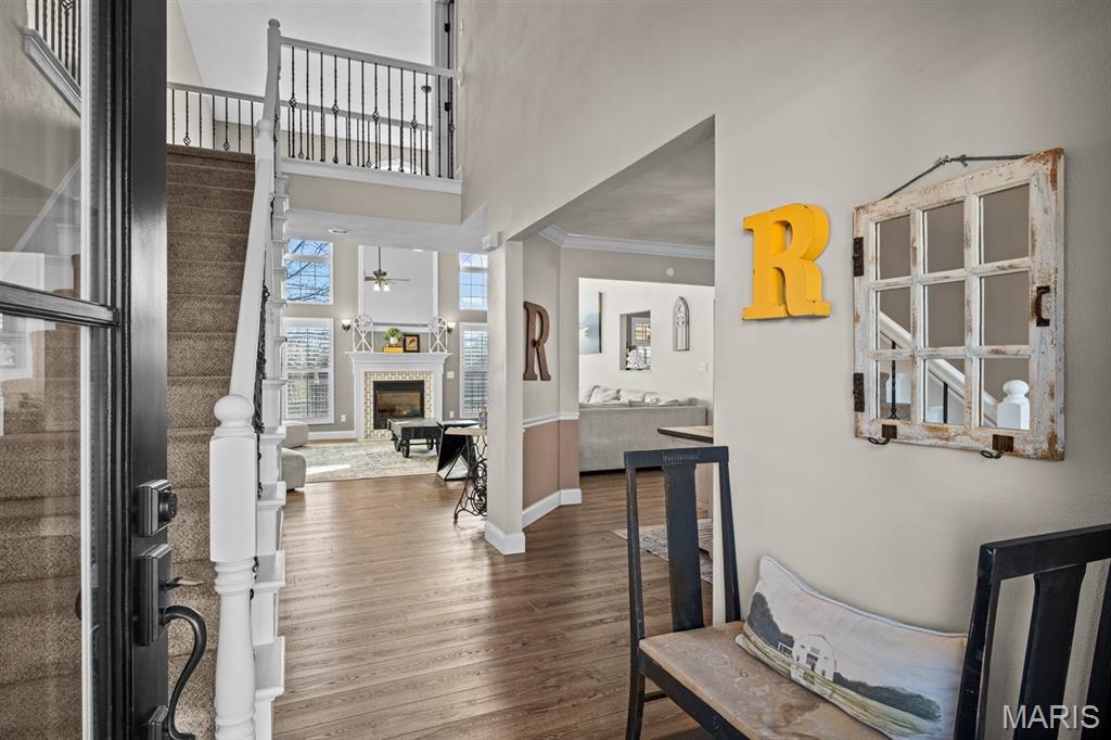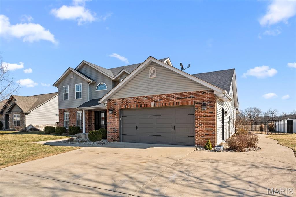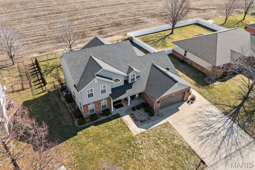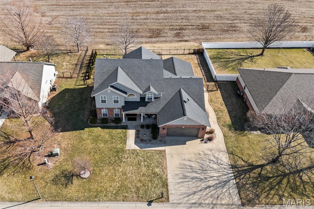 Welcome to a beautifully updated home where space, style, and thoughtful upgrades come together in the heart of Millstadt! Overflowing with thoughtful upgrades, this stunning Millstadt home is a true standout! A 4-bedroom, 3-bath beauty that combines spaciousness with style. Soaring 17-ft ceilings in the living room, rich hardwood floors, and gas fireplace create an inviting atmosphere, while the updated kitchen boasts sleek black stainless steel Samsung appliances, custom cabinetry, and fresh backsplash details. A private main-floor primary suite features hardwood flooring, an ensuite bath, and an oversized walk-in closet. Upstairs offers ample space for guests, while the partially finished basement includes a newly renovated full bath with cultured marble shower and more. Enjoy outdoor living on the covered back porch with new fans and steps, or take comfort in updated systems like the new A/C coil, air scrubber, sump pump, and plumbing fixtures. This home offers quality, comfort, and convenience — all wrapped up in a classic brick and vinyl exterior.