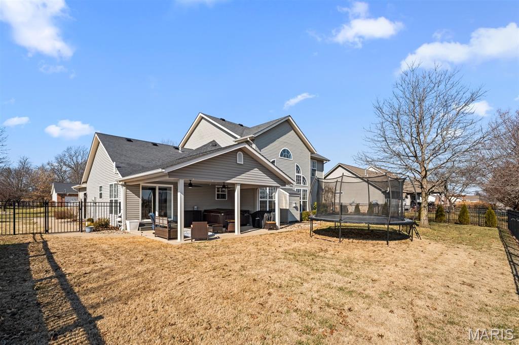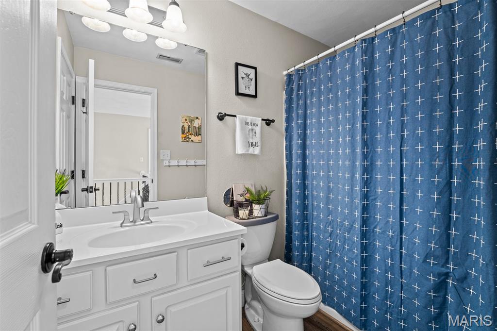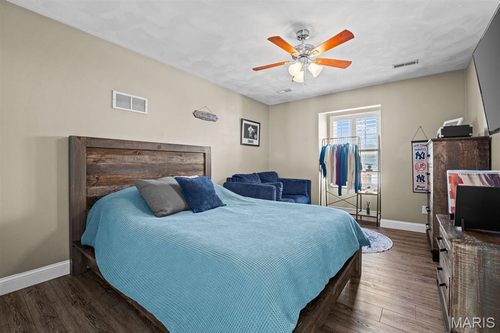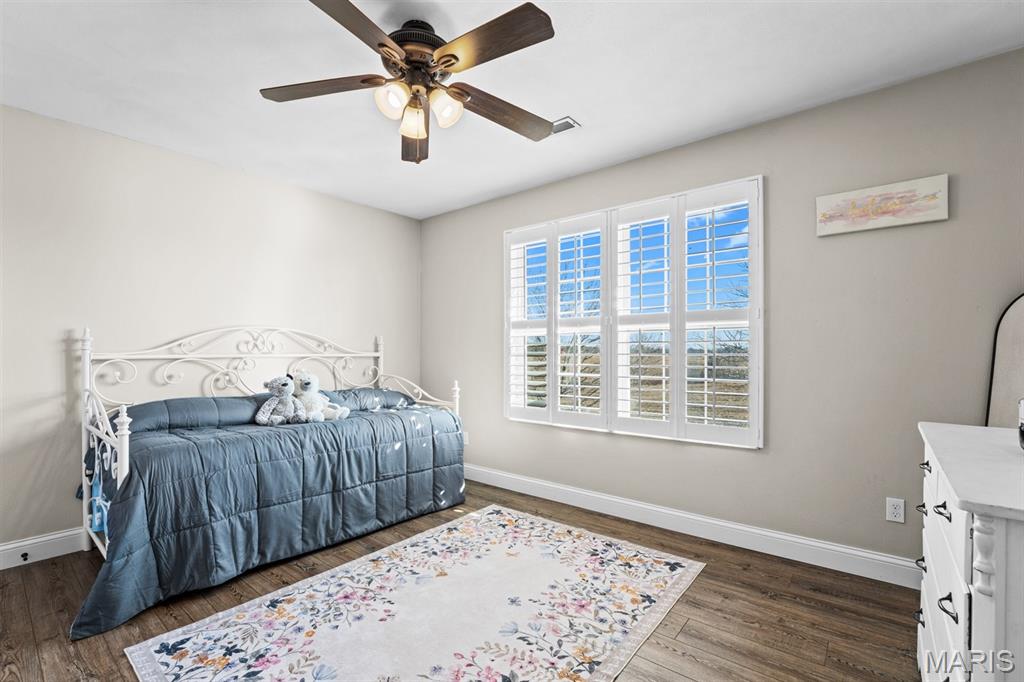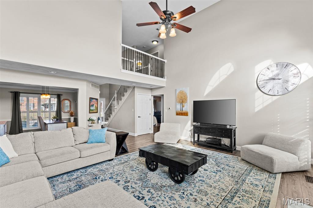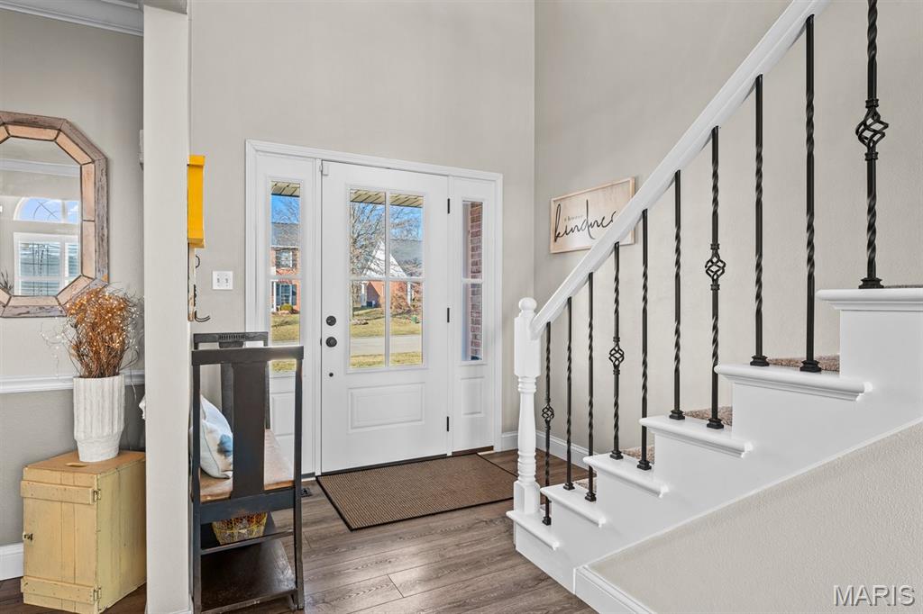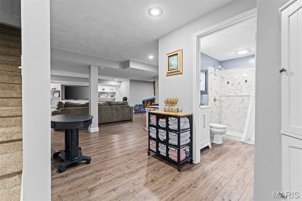Welcome to a beautifully updated home where space, style, and thoughtful upgrades come together in the heart of Millstadt! Overflowing with thoughtful upgrades, this stunning Millstadt home is a true standout! A 4-bedroom, 3-bath beauty that combines spaciousness with style. Soaring 17-ft ceilings in the living room, rich hardwood floors, and gas fireplace create an inviting atmosphere, while the updated kitchen boasts sleek black stainless steel Samsung appliances, custom cabinetry, and fresh backsplash details. A private main-floor primary suite features hardwood flooring, an ensuite bath, and an oversized walk-in closet. Upstairs offers ample space for guests, while the partially finished basement includes a newly renovated full bath with cultured marble shower and more. Enjoy outdoor living on the covered back porch with new fans and steps, or take comfort in updated systems like the new A/C coil, air scrubber, sump pump, and plumbing fixtures. This home offers quality, comfort, and convenience — all wrapped up in a classic brick and vinyl exterior.