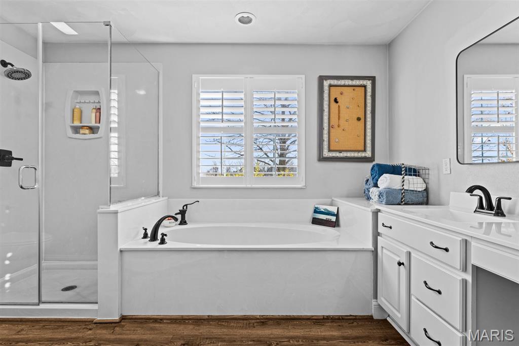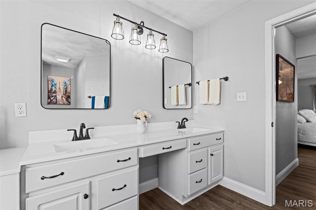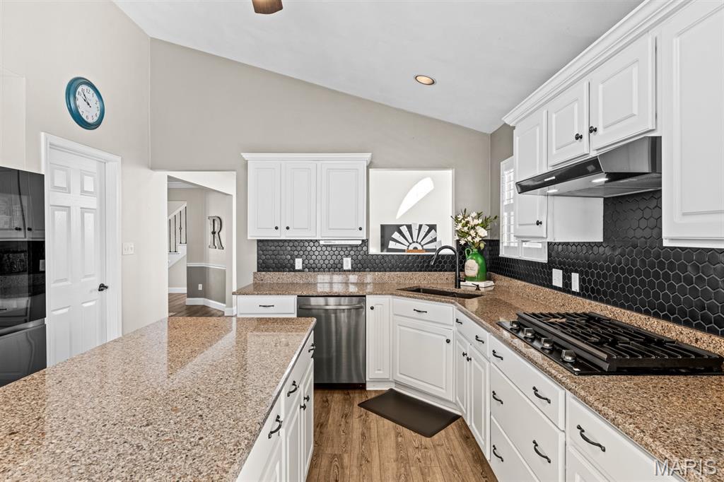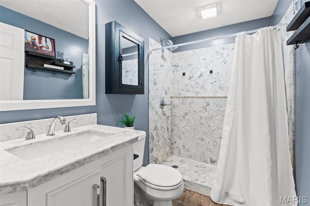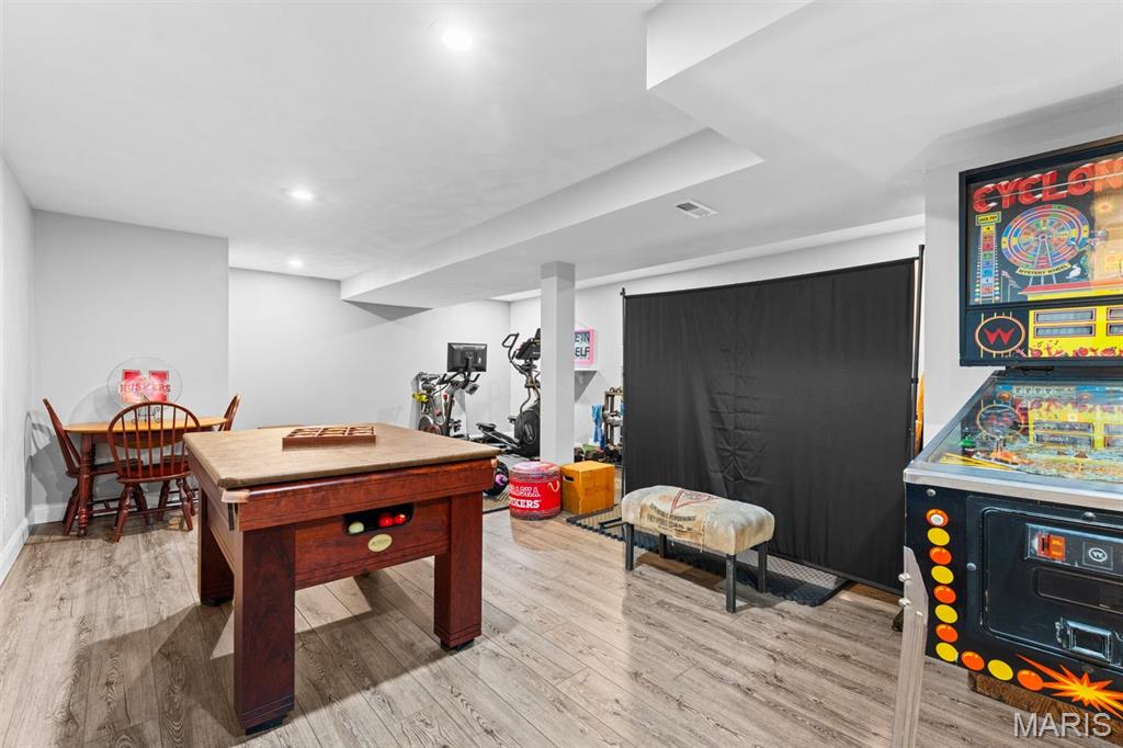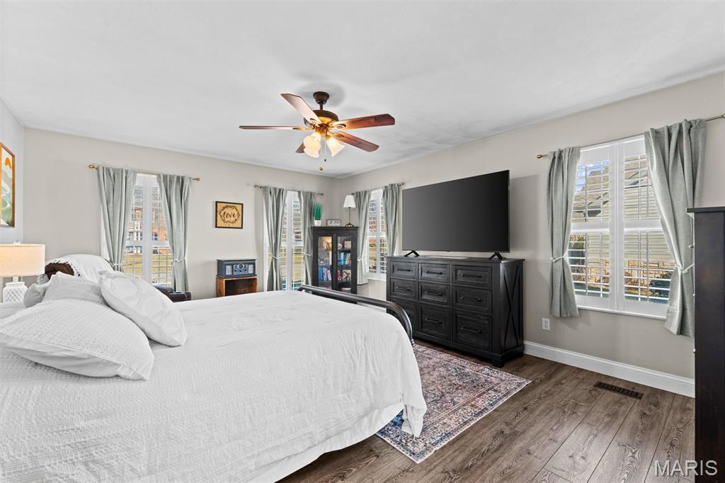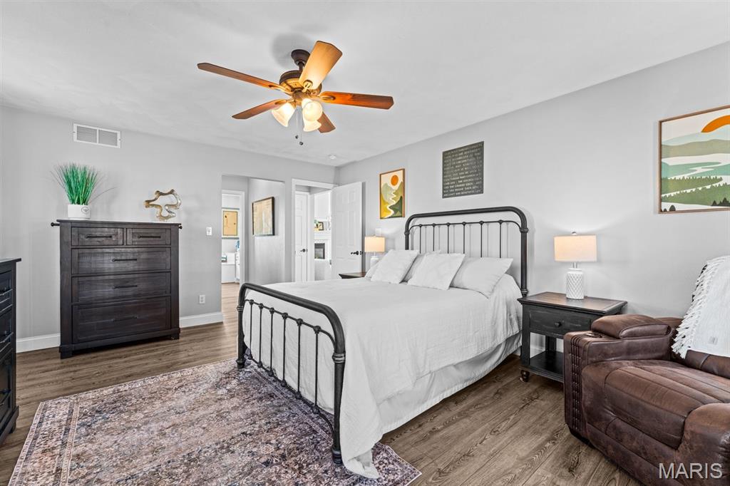 Welcome to a beautifully updated home where space, style, and thoughtful upgrades come together in the heart of Millstadt! Overflowing with thoughtful upgrades, this stunning Millstadt home is a true standout! A 4-bedroom, 3-bath beauty that combines spaciousness with style. Soaring 17-ft ceilings in the living room, rich hardwood floors, and gas fireplace create an inviting atmosphere, while the updated kitchen boasts sleek black stainless steel Samsung appliances, custom cabinetry, and fresh backsplash details. A private main-floor primary suite features hardwood flooring, an ensuite bath, and an oversized walk-in closet. Upstairs offers ample space for guests, while the partially finished basement includes a newly renovated full bath with cultured marble shower and more. Enjoy outdoor living on the covered back porch with new fans and steps, or take comfort in updated systems like the new A/C coil, air scrubber, sump pump, and plumbing fixtures. This home offers quality, comfort, and convenience — all wrapped up in a classic brick and vinyl exterior.