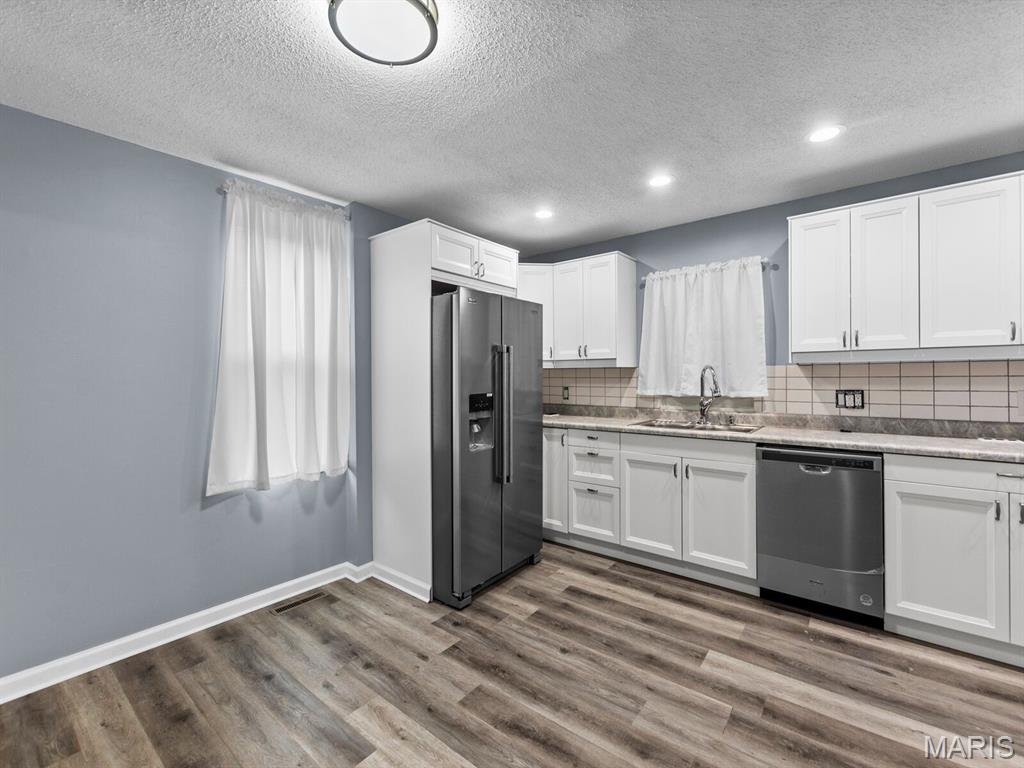 Perfect starter home! Beautifully remodeled so you can move right in! You'll love the large living room, new kitchen with stainless steel appliances, and adjacent dining area. Plus, easy access to the sunroom and brick paver patio for entertaining. Walk-in pantry and plenty of countertop and storage space. Two spacious bedrooms on the upper level. Large 2-car detached garage with alley access makes it perfect for parking or a workshop area. Unfinished basement for plenty of additional storage. Close to Rte 15 for an easy commute to Scott AFB or St. Louis, or great dining and shopping in downtown Belleville. Seller will provide a home warranty too! Schedule your tour today!