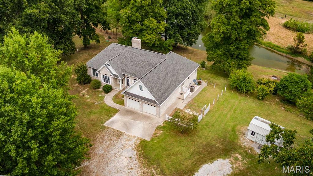 Peaceful country living on 30+ acres of rolling hills conveniently located less than 2 miles from I-57. The custom brick 5-bedroom, 5-bathroom home is characterized by quality craftsmanship, comfort and space. You will find plenty of natural light, oak hardwood floors, spacious living areas with vaulted ceilings, and a central fireplace with wood burning insert. Main level has a split bedroom plan with private primary suite, front room/office, eat-in kitchen, formal dining room, laundry/mudroom and upstairs bonus/rec room which could serve as additional large bedroom. Composite floor deck with 3 access doors and electric awning overlooks the serene landscape. The downstairs doubles the living space with a full, bright walkout basement —ideal for guests, extended family, and/or recreation space. Basement has finished kitchen and dining area, 1 and 1/2 baths; all other basement areas besides storage room completely finished except for flooring. There are endless possibilities to personalize according to needs and style. Seller is offering a buyer credit for new finished flooring where it is not present in basement and upstairs bonus room! Outdoors, mature landscaping with a private, stocked pond and abundant wildlife offers a tranquil retreat. A pole barn has separate electric service, multiple water hydrants, and a concrete bay making this property an excellent choice for livestock or hobbies. Recent upgrades include a newer HVAC system (2023) giving peace of mind and efficiency. Appliances included are refrigerator, range (2), dishwasher, washer and dryer.