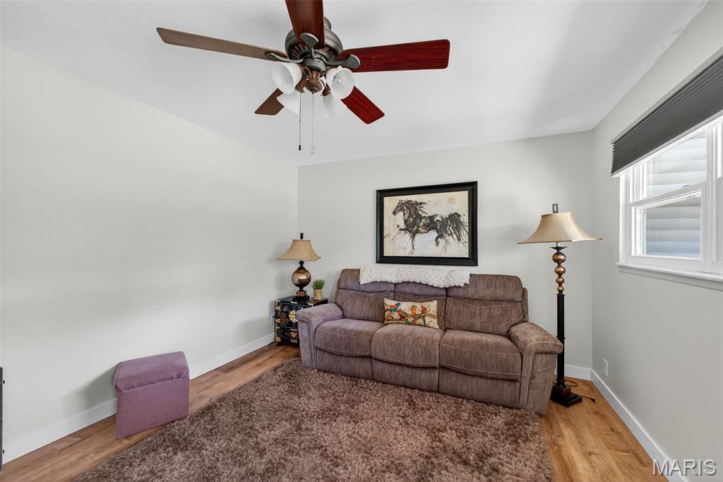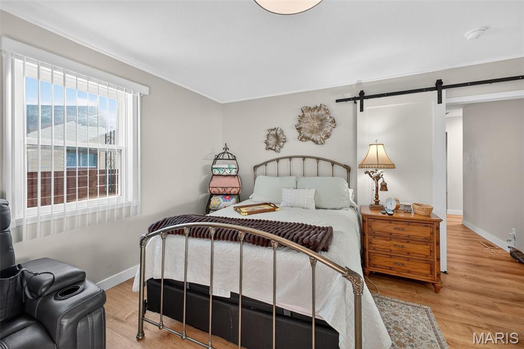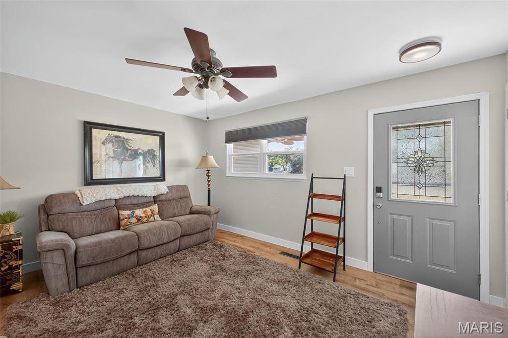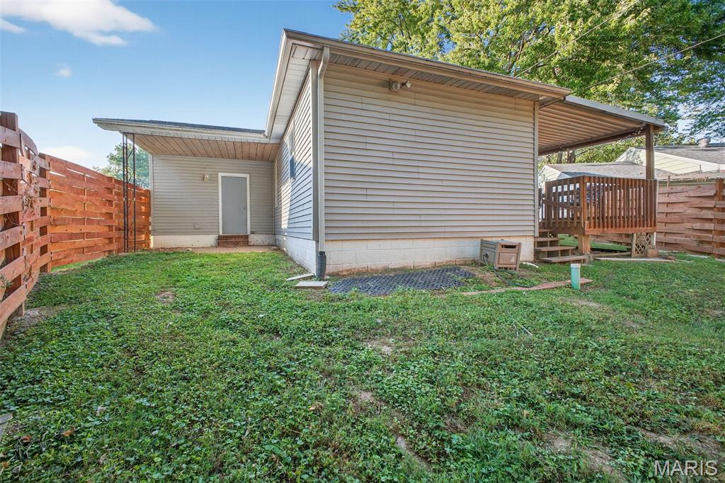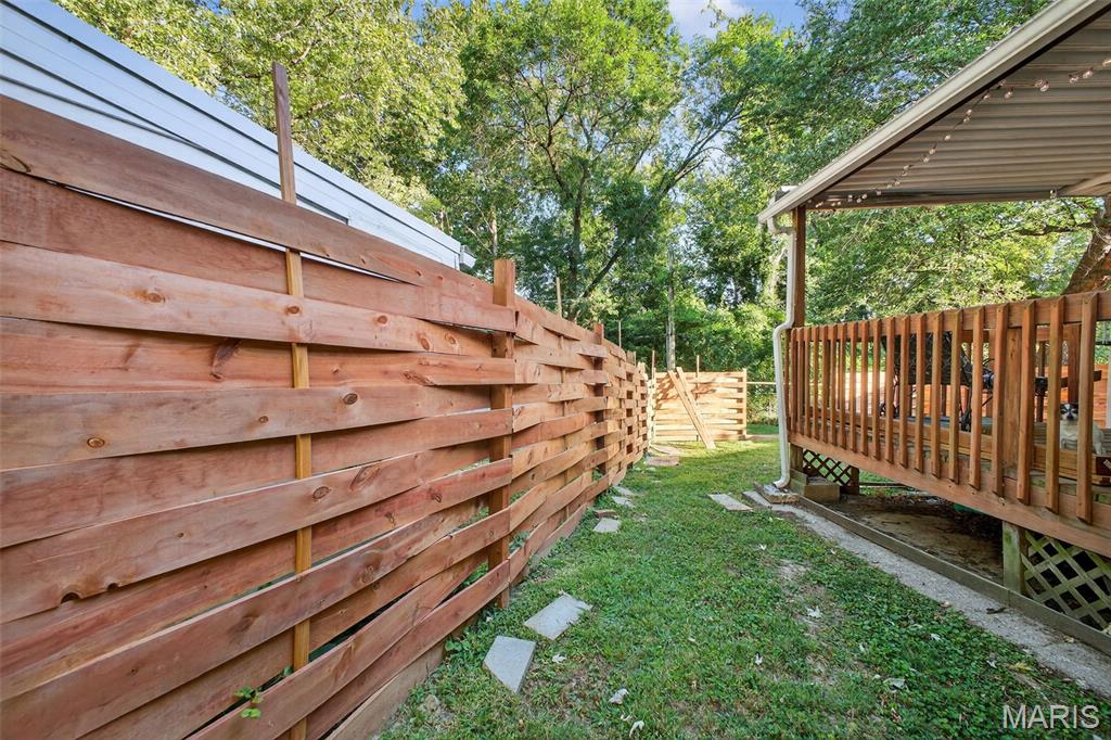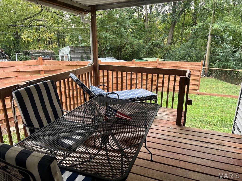 Move right into this totally remodeled home. Beautiful neutral decor with wood-vinyl plank flooring throughout. The Inviting front porch with a swing leads into the Large, spacious living room. Stylish, White, Bright kitchen with stainless appliances, dark wood countertops and huge sink is perfect for "the chef." Large Bedroom near the kitchen, with sliding barn door, can double as a Family/Dining room. From here, walk out to the covered deck that overlooks the newly fenced and private back yard. 2 add'l Bedrooms have spacious closets. Bathroom is brand new with quartz vanity top and a walk-in shower. Conveniently located to shopping, schools, city offices, and highway. Must see and ready for immediate occupancy.