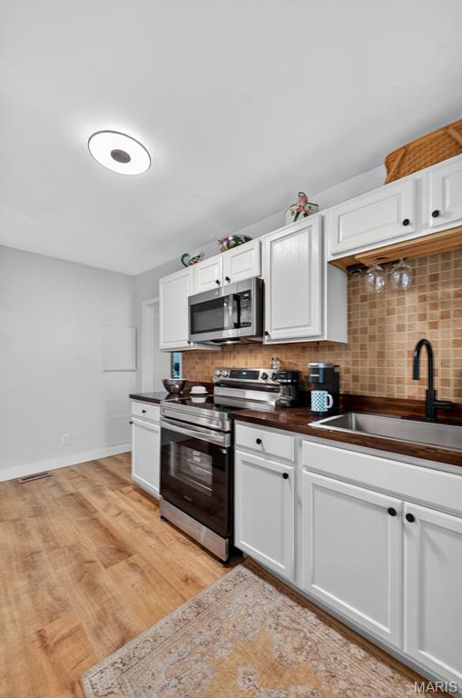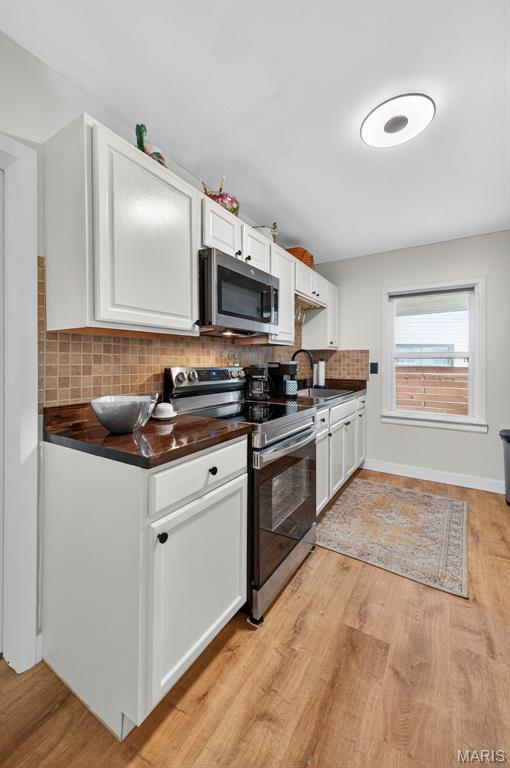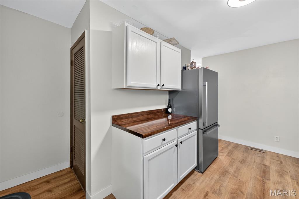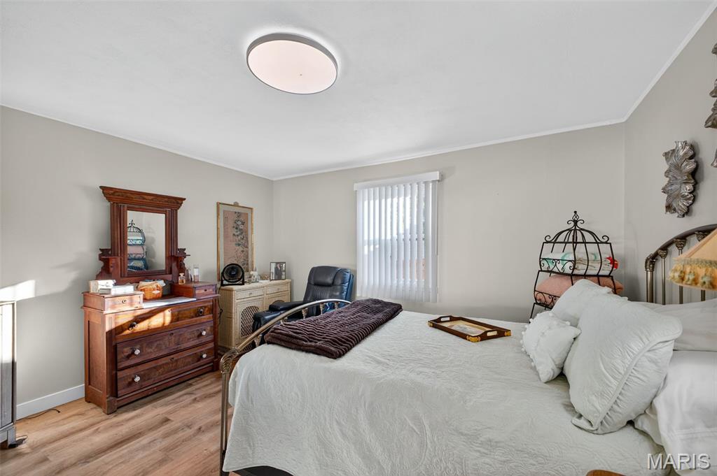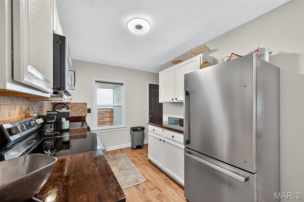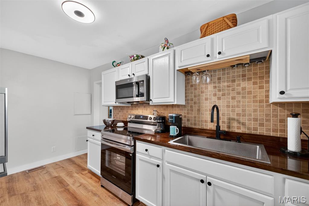 Move right into this totally remodeled home. Beautiful neutral decor with wood-vinyl plank flooring throughout. The Inviting front porch with a swing leads into the Large, spacious living room. Stylish, White, Bright kitchen with stainless appliances, dark wood countertops and huge sink is perfect for "the chef." Large Bedroom near the kitchen, with sliding barn door, can double as a Family/Dining room. From here, walk out to the covered deck that overlooks the newly fenced and private back yard. 2 add'l Bedrooms have spacious closets. Bathroom is brand new with quartz vanity top and a walk-in shower. Conveniently located to shopping, schools, city offices, and highway. Must see and ready for immediate occupancy.