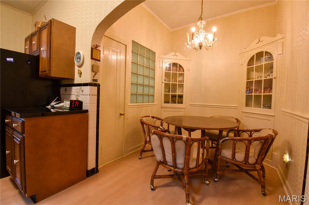 Step back in time with this turn-of-the-century masterpiece that combines elegant character with modern updates. This 3-bedroom, 2-bath home sits proudly on a corner lot shaded by large, stately trees, offering charm and presence from the moment you arrive. Inside, you’ll be greeted by hardwood floors throughout, an elegant curved staircase, and custom ornate brickwork that showcase the craftsmanship of a bygone era. The main level provides spacious living and dining areas, while the upper level features a unique widow’s walk—a rare and striking architectural feature accessible from the bedroom or den. Additional highlights include a 2-car attached garage, full basement, and a new roof, ensuring peace of mind for years to come. From its detailed masonry to its timeless design, this home is both beautifully built and thoughtfully preserved—a true Litchfield classic waiting for its next chapter.