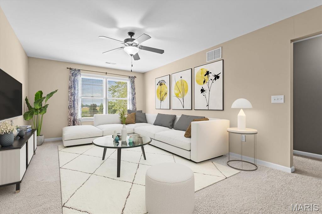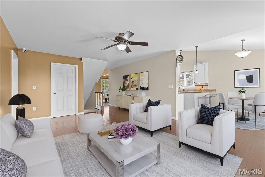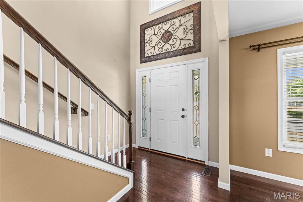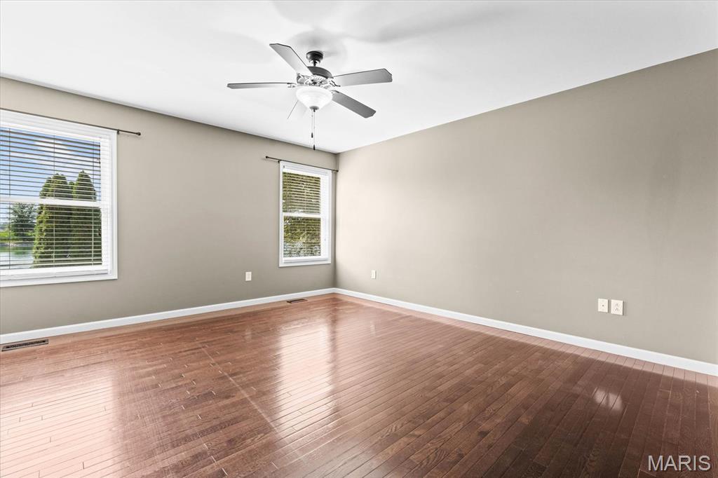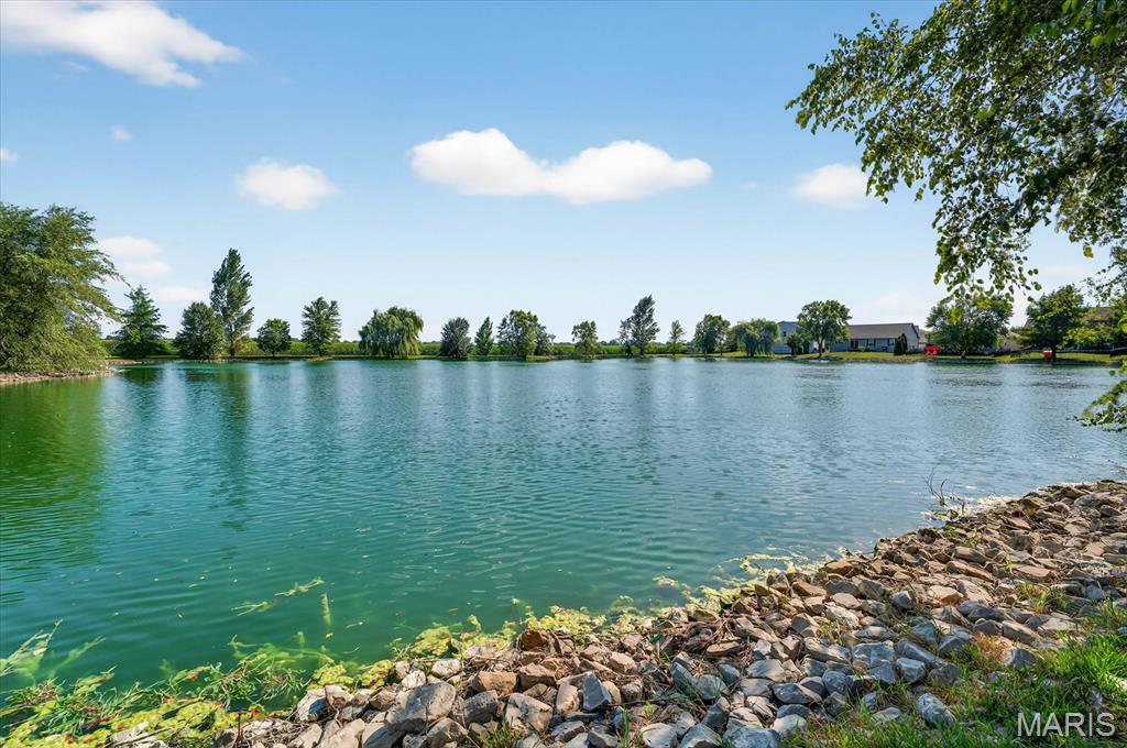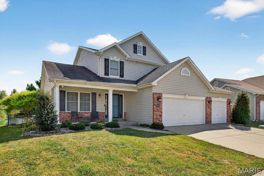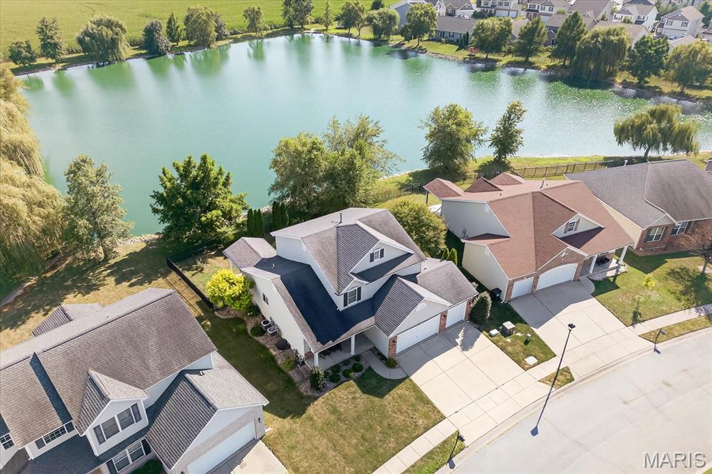 What more can you ask for? Waterfront lot, fenced yard, primary bedroom on the first floor, finished basement, 3 car garage and all in Mascoutah school district! Inside the two story foyer entry you'll find hardwood floors, living room with gas fireplace that opens to the beautiful kitchen with breakfast bar, eat in area, granite counters, and all appliances to stay and just off the formal dining room. The primary bedroom on the main floor makes this a forever home possibility without ever having to take the steps! The primary bath also has a separate soaking tub and shower with a walk in closet. The main floor also offers a convenient half bath and a larger laundry room that leads to the 3 car garage. Upstairs there is a loft area, three more bedrooms that share a full bath. The finished basement has a built in desk system great for crafts or work from home. The projector and screen stay in place for your movie nights! Lots of unfinished space for storage and potential to finish a bathroom. Enjoy the waterfront view from the covered patio out back, another patio that would be great for a hot tub, and all fenced in! So many extras like year round lighting on the front of the home and new carpet in the basement! Minutes to Scott Air Force Base and Mascoutah schools! Audio and visual on the property.