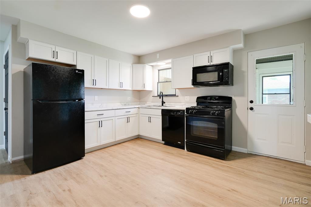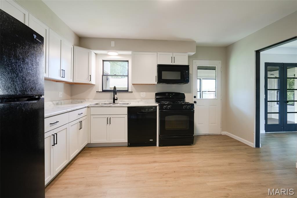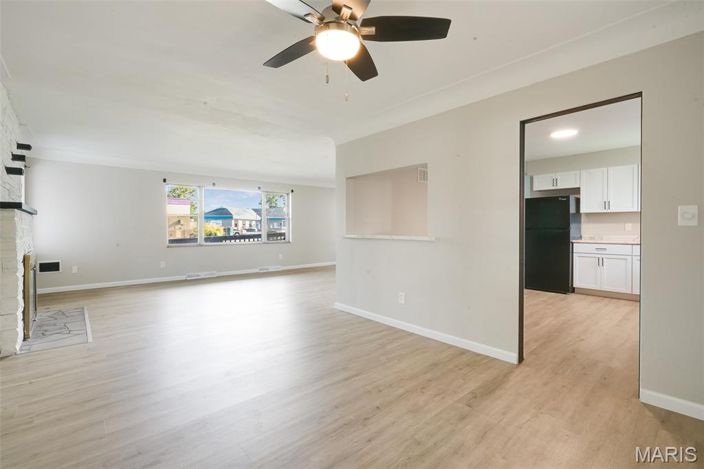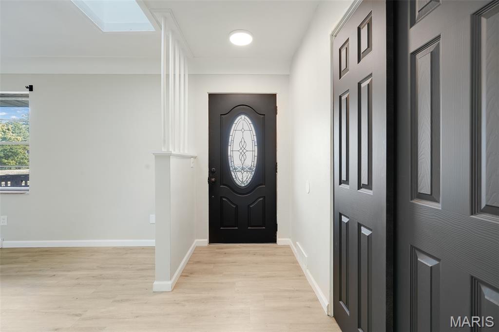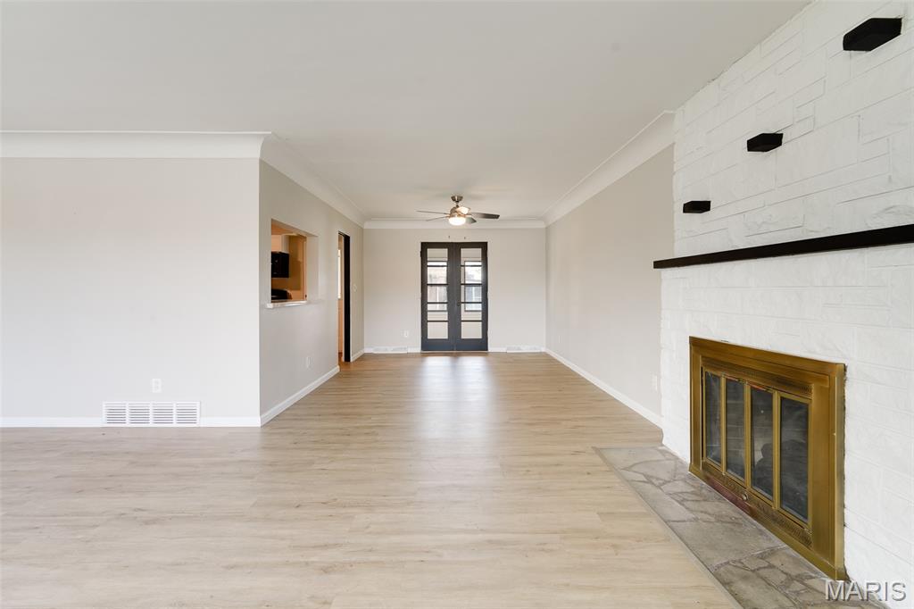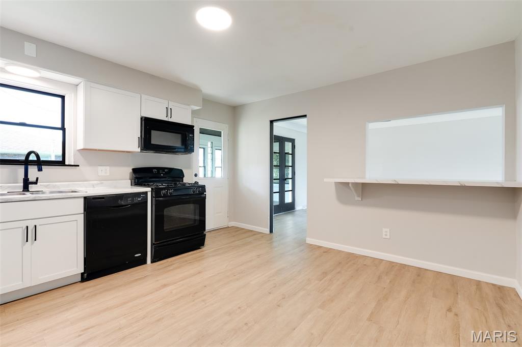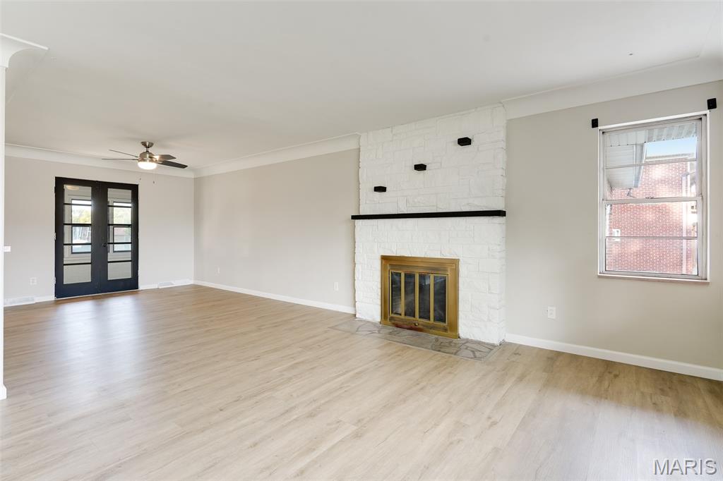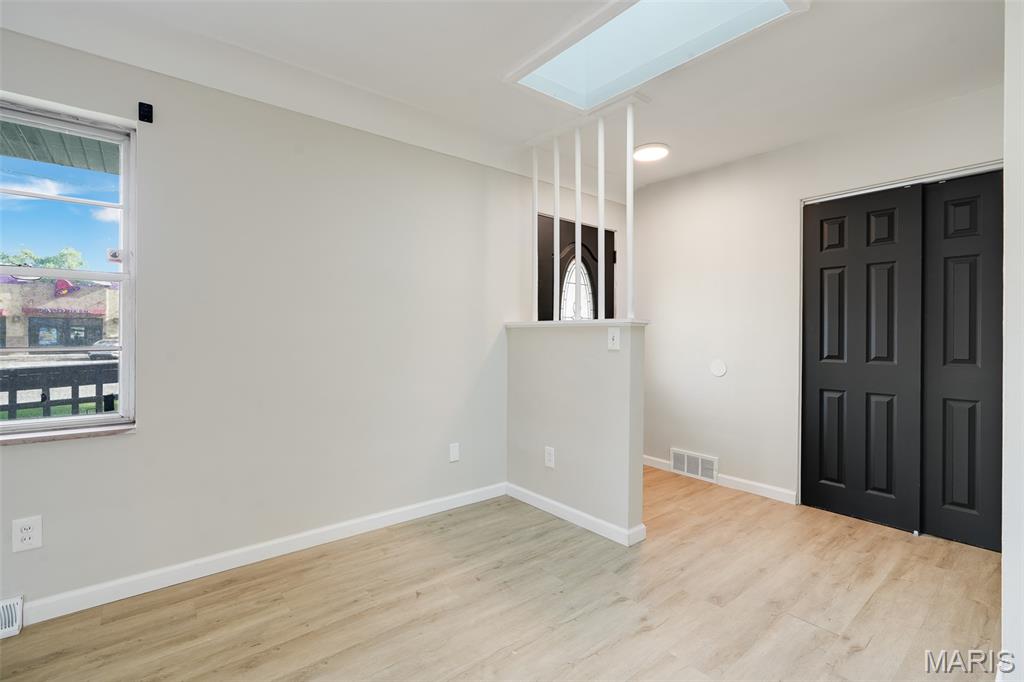 Light-filled and thoughtfully updated, this home offers easy main-level living plus incredible flexible space below. The main floor features 2 comfortable bedrooms and 1.5 refreshed bathrooms, a spacious kitchen with a dedicated dining area, and a cozy fireplace under natural light from skylights. French doors open from the dining room to an enclosed back patio—perfect for morning coffee or year-round entertaining. The finished basement expands your options with a large family/rec room and a convenient kitchenette with pantry—ideal for movie nights, guests, or multigenerational living. You’ll also find three non-traditional sleeping rooms and a full bath, along with freshly replaced flooring and new basement windows for comfort and peace of mind. (Non-traditional bedrooms may be non-conforming; buyer to verify local egress/permit requirements.) Flooded with sunshine throughout, this home blends warmth, function, and flexibility—ready to fit your lifestyle today and grow with you tomorrow.