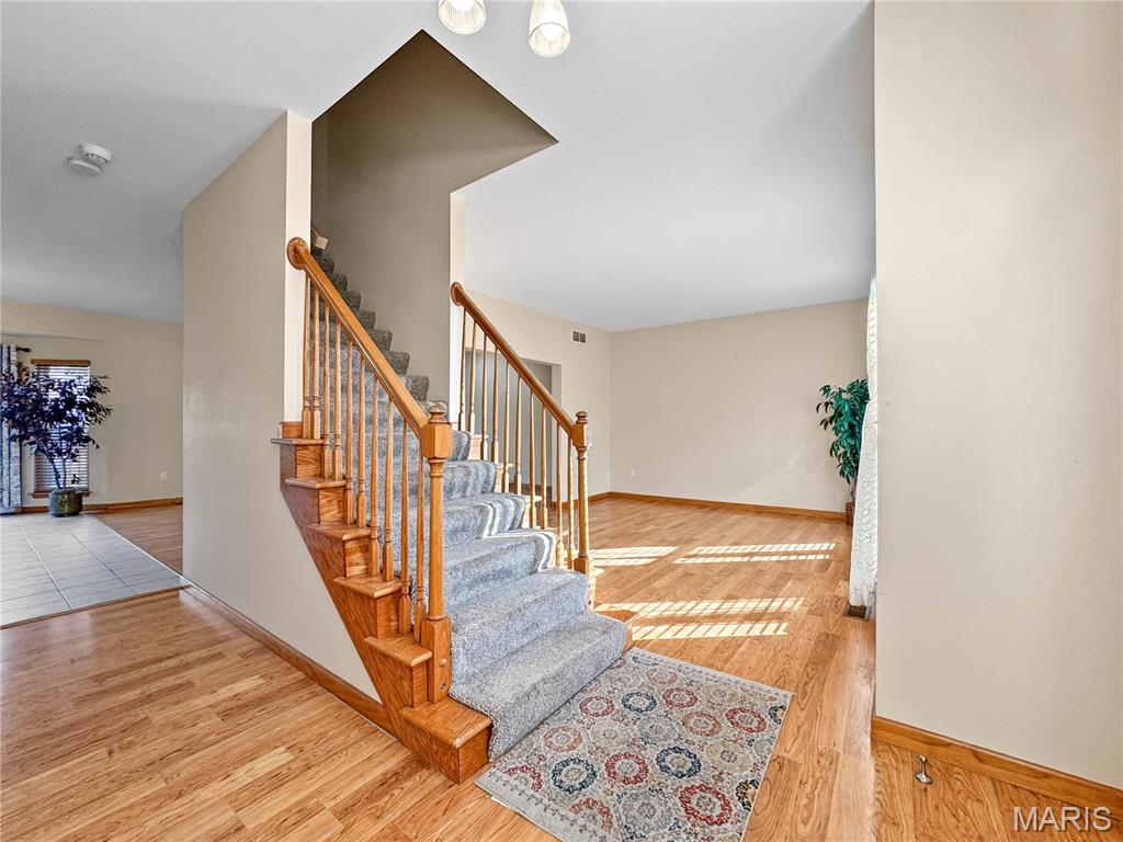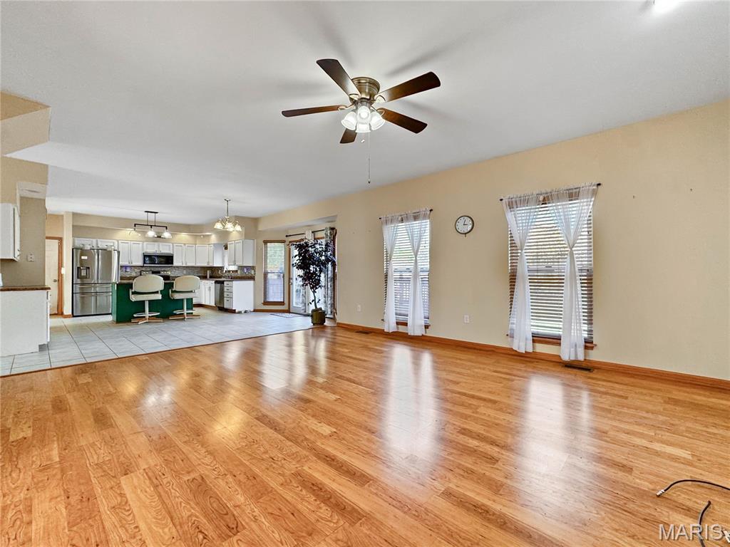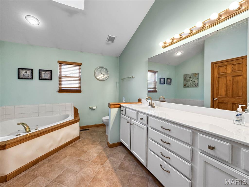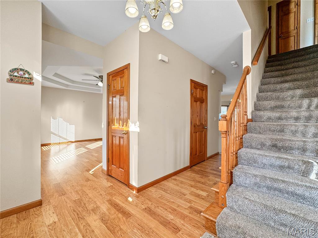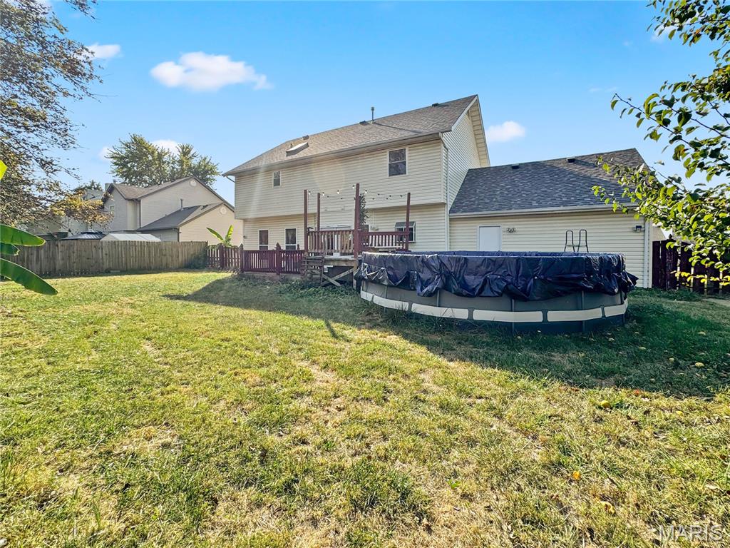 Welcome to your next chapter in the heart of Country Crossings (Whiteside/Belleville E), where timeless colonial charm meets generous modern living. This spacious two-story home offers nearly 4,000 square feet of finished space across three thoughtfully designed levels—perfect for entertainers, or anyone who craves room to breathe. Step inside through a formal foyer and be greeted by a graceful waterfall landing staircase that sets the tone for the elegance within. Hickory hardwood floors flow through all primary living areas, adding warmth and character. To your left, a large formal living room opens seamlessly into a cozy family room—ideal for gatherings and quiet evenings alike. To your right, a formal dining room connects to the open-concept kitchen, creating a welcoming space for hosting dinners and celebrations. The kitchen is a true centerpiece, featuring a center island, beverage station, stainless steel appliances, glass tile backsplash, and a deep pantry for all your storage needs. Just off the kitchen, the breakfast room offers a sunny spot to start your day and opens to a backyard oasis—ready for your personal touch and TLC. Whether you're sipping coffee on the patio or watching pets play, this outdoor space invites relaxation. Upstairs, retreat to a spacious master suite with vaulted ceilings and sleek laminate flooring. The en-suite bath is a spa-like haven with a jacuzzi tub, separate shower, vaulted skylights, double vanity, and a generous walk-in closet. Three additional bedrooms offer ample space, with two walk-in closets and one double slide. A full hall bath with a tub/shower combo and a convenient second-floor laundry room round out the upper level The lower level adds even more versatility with a partially finished basement that includes a full bath with walk-in shower and vinyl flooring. You'll find a dedicated office area, a large kitchenette with a laminate bar and double sink—ideal for entertaining during holidays or game days—and a waterproofed recreational room that ensures a dry, comfortable space year-round. Additional features include soaring 9' ceilings throughout, a half bath off the foyer, and an oversized two-car garage with an insulated overhead door and walk-out access to the exterior. Recent updates include a brand-new roof (just two months old) and a new central air unit, while the gas furnace is only five years young. Above ground pool and deck. The Country Crossings subdivision offers even more to love, with access to a community pool and clubhouse—adding leisure and connection to your lifestyle. This home is packed with thoughtful details, abundant space, and endless potential. Come see how it can be the perfect backdrop for your next adventure. Gas furnace 5 years old. New roof, New AC. See listing information sheet in the MLS with disclosures for more updates.