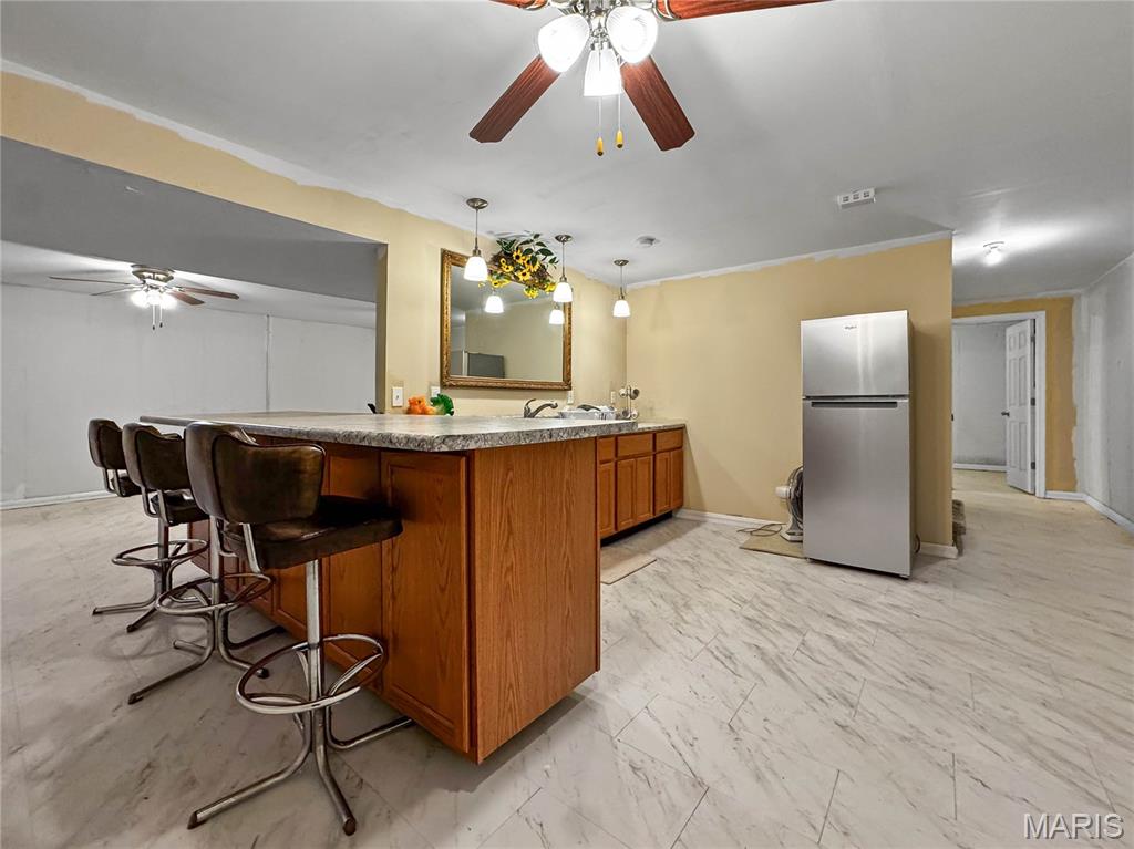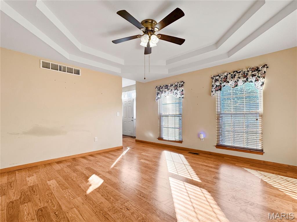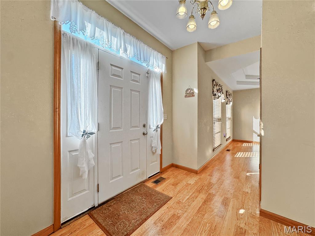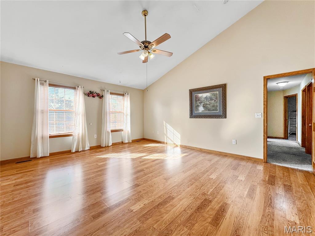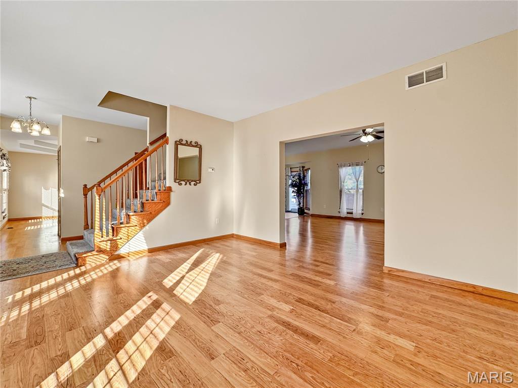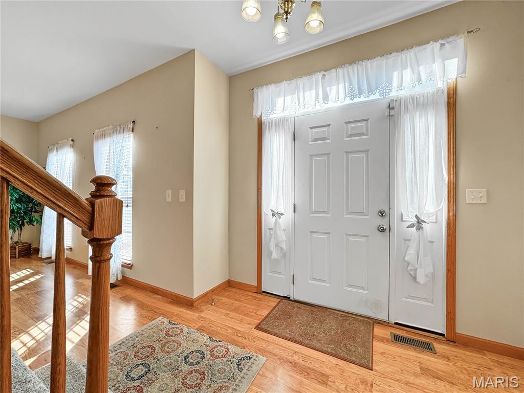 Welcome to your next chapter in the heart of Country Crossings (Whiteside/Belleville E), where timeless colonial charm meets generous modern living. This spacious two-story home offers nearly 4,000 square feet of finished space across three thoughtfully designed levels—perfect for entertainers, or anyone who craves room to breathe. Step inside through a formal foyer and be greeted by a graceful waterfall landing staircase that sets the tone for the elegance within. Hickory hardwood floors flow through all primary living areas, adding warmth and character. To your left, a large formal living room opens seamlessly into a cozy family room—ideal for gatherings and quiet evenings alike. To your right, a formal dining room connects to the open-concept kitchen, creating a welcoming space for hosting dinners and celebrations. The kitchen is a true centerpiece, featuring a center island, beverage station, stainless steel appliances, glass tile backsplash, and a deep pantry for all your storage needs. Just off the kitchen, the breakfast room offers a sunny spot to start your day and opens to a backyard oasis—ready for your personal touch and TLC. Whether you're sipping coffee on the patio or watching pets play, this outdoor space invites relaxation. Upstairs, retreat to a spacious master suite with vaulted ceilings and sleek laminate flooring. The en-suite bath is a spa-like haven with a jacuzzi tub, separate shower, vaulted skylights, double vanity, and a generous walk-in closet. Three additional bedrooms offer ample space, with two walk-in closets and one double slide. A full hall bath with a tub/shower combo and a convenient second-floor laundry room round out the upper level The lower level adds even more versatility with a partially finished basement that includes a full bath with walk-in shower and vinyl flooring. You'll find a dedicated office area, a large kitchenette with a laminate bar and double sink—ideal for entertaining during holidays or game days—and a waterproofed recreational room that ensures a dry, comfortable space year-round. Additional features include soaring 9' ceilings throughout, a half bath off the foyer, and an oversized two-car garage with an insulated overhead door and walk-out access to the exterior. Recent updates include a brand-new roof (just two months old) and a new central air unit, while the gas furnace is only five years young. Above ground pool and deck. The Country Crossings subdivision offers even more to love, with access to a community pool and clubhouse—adding leisure and connection to your lifestyle. This home is packed with thoughtful details, abundant space, and endless potential. Come see how it can be the perfect backdrop for your next adventure. Gas furnace 5 years old. New roof, New AC. See listing information sheet in the MLS with disclosures for more updates.