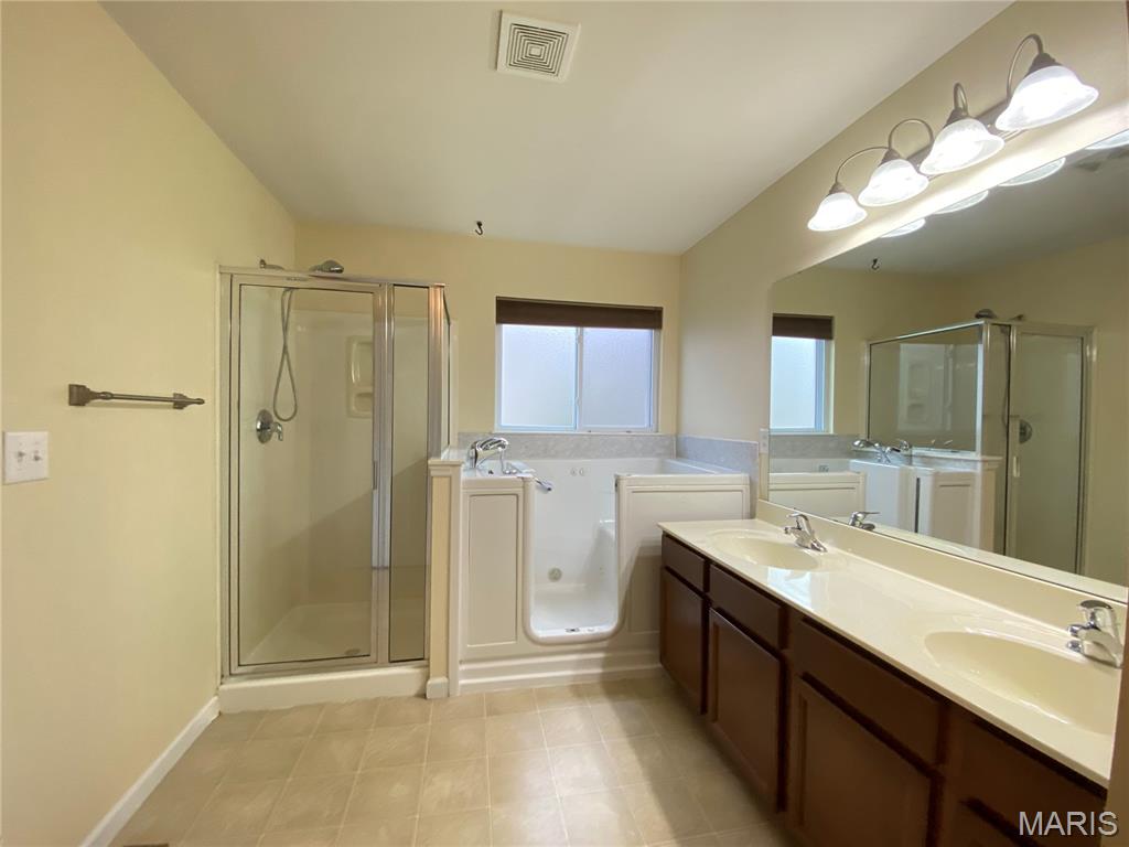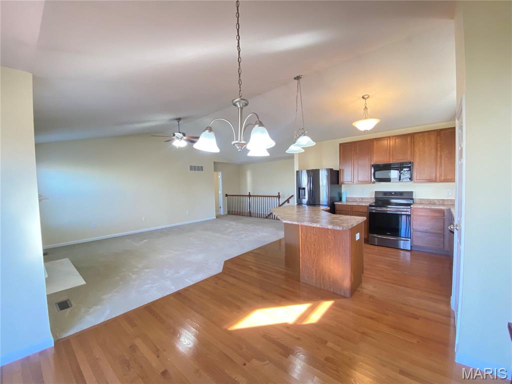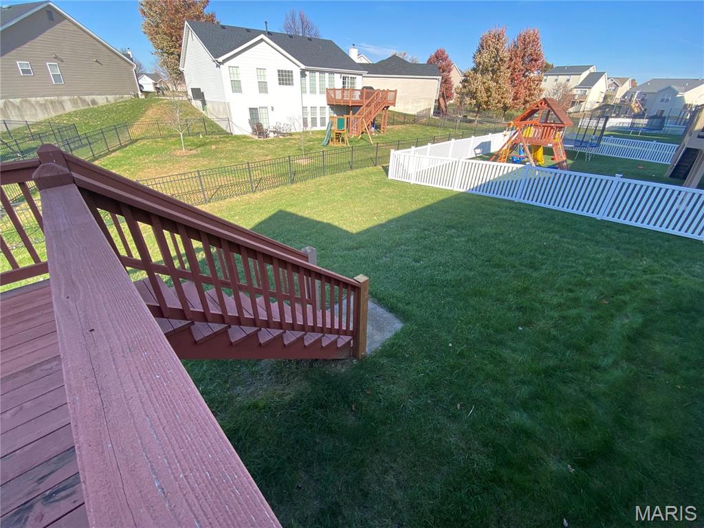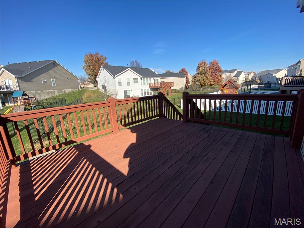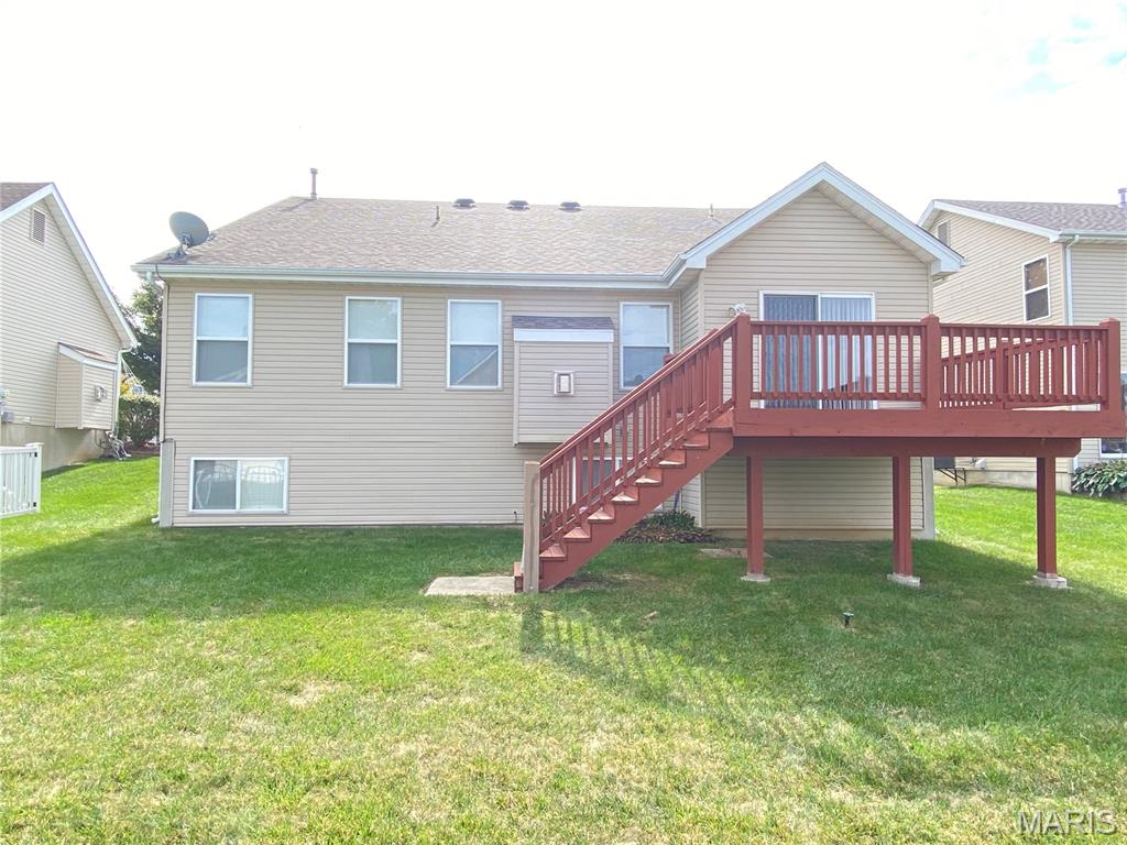 This home is in O'Fallon School District. Enjoy the amenities this spacious 3 bed 3 bath home located in Fountains Place has to offer. This includes a community swimming pool, soccer field, baseball backstop and a fishing pond designed just for this neighborhood. Enter this home into a spacious foyer with coat closet. The wide hallway leads to the great room with a gas fireplace. The vaulted ceiling creates a spacious and open environment that is flooded with natural lighting from the large windows and slider door. The kitchen has stainless steel appliances, an induction cooktop, and hard wood flooring. Dining room walks through the slider door to the wooden deck in the backyard. This home has a split bedroom floorplan. The two bedrooms up front share a full bathroom. The Primary Bedroom suite is large and features a walk-in closet. The primary bathroom has a dual vanity sink, separate shower, walk-in tub, and water closet. The lower level is partially finished with a large family room. Another finished bonus room on the lower level is multifunctional with an egress window. A third bathroom is on the lower level adjoining the bonus room. The basement also features a large storage area in the unfinished side. The location is great for commuting to St. Louis or Scott Air Force Base because of the close proximity to Interstate 64. This subdivision is also close to the shopping centers in Fairview and O'Fallon. You are just down the road from Andria's Steakhouse! This Fairview community is located in the O'Fallon School District.