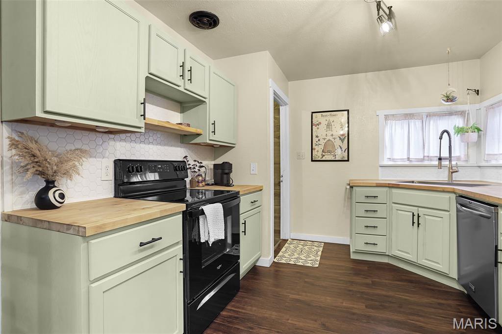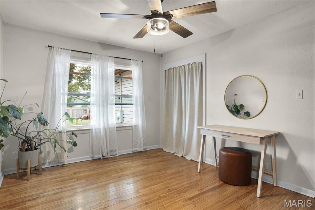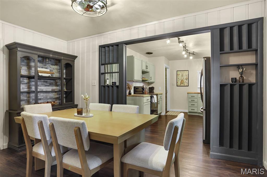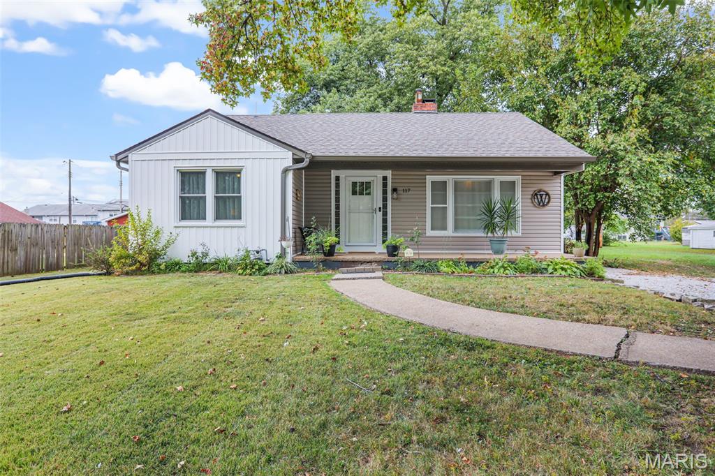 Charming and beautifully updated home in a prime, walkable location! Set on a peaceful, tree-lined street just steps from parks, schools, and the historic Luna Café on Route 66—with easy interstate access. Inside, sunlight fills the inviting living room anchored by a classic, painted brick wood-burning fireplace. The dining area opens to a cheery kitchen featuring stainless appliances, open wood shelving, painted cabinets, butcher block counters & a white honeycomb tile backsplash that adds texture & flair. Step onto the new deck & patio, perfect for relaxed evenings under the shade tree and twinkling string lights. The fenced yard offers space for pets, a garden & even chickens! Spacious bedrooms, a stylish bath & a full basement complete the layout. With a new roof, siding, flooring, lighting, kitchen & bath fixtures and an updated modern-bohemian vibe, this move-in ready home blends creativity, warmth & convenience in one perfect package.