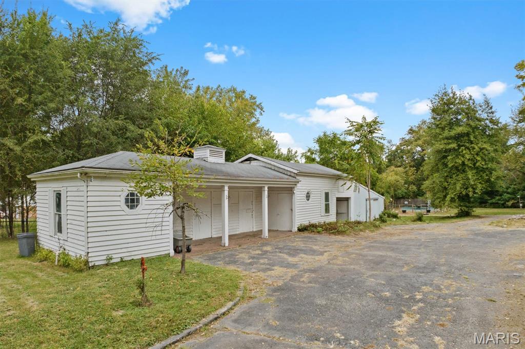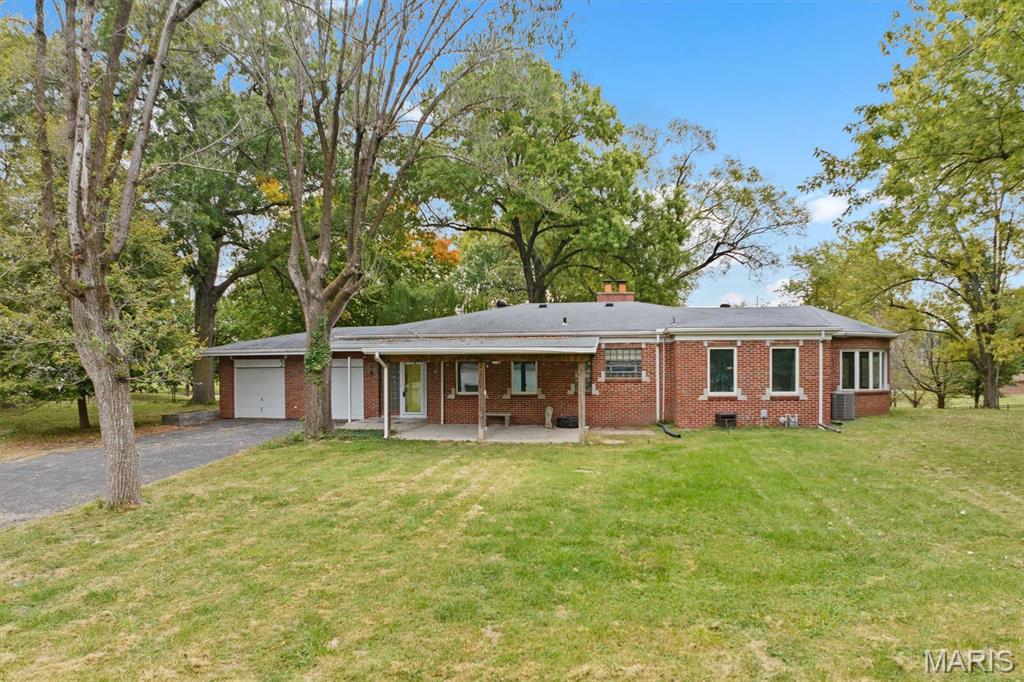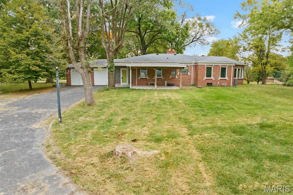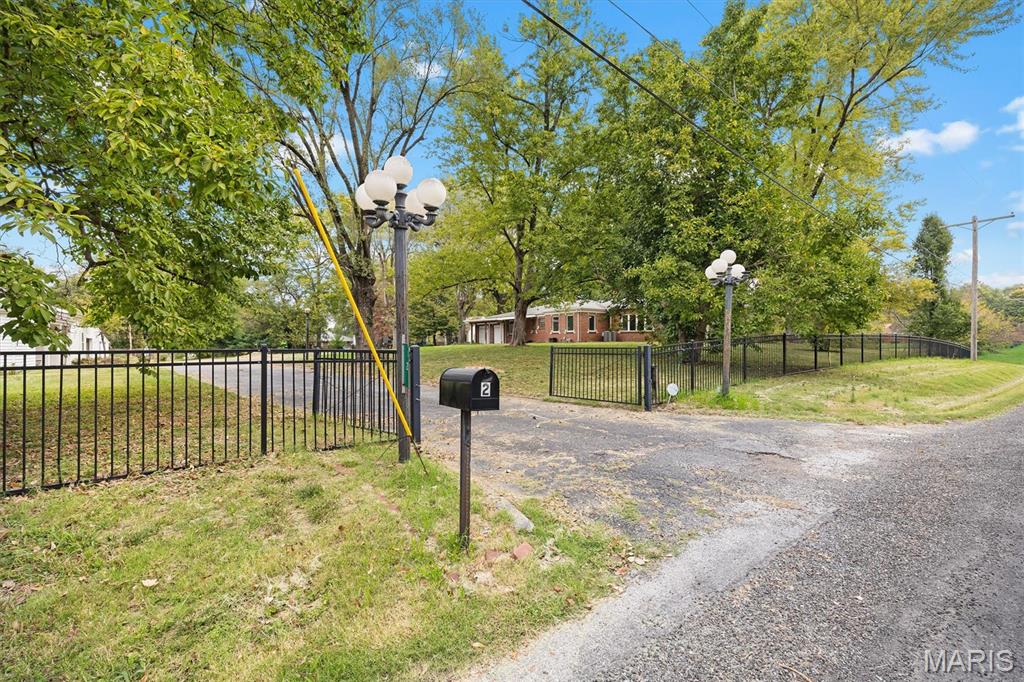 Welcome to 2 Estelle Lane, a rare full-brick retreat tucked away on over two acres of pristine land a true slice of country living just minutes from city conveniences. As you pull into the circle drive, you'll instantly feel the peaceful seclusion this property offers, surrounded by mature trees, a park-like setting, and an enormous front yard enclosed by elegant wrought iron fencing. Step inside to find three spacious bedrooms and two full baths, where natural light pours through the atrium bedroom, a perfect place to wake up to the sights and sounds of nature. The home's heart is its inviting kitchen, featuring stainless steel appliances and views that stretch across your own private haven. Out back, a large covered patio overlooks a heated in-ground pool with a liner replaced in 2018, ideal for both relaxing summer afternoons and starlit gatherings. The property also features mini horse stalls complete with electric and water, offering endless possibilities for hobby farming, animals, or creative outdoor uses. This one-of-a-kind property is being offered as-is, with the seller making no repairs or inspections, an opportunity for the next owner to make it their own private escape. Whether you dream of quiet mornings by the pool, peaceful evenings under the trees, or simply room to roam, 2 Estelle Lane delivers the perfect blend of privacy, beauty, and potential. Taxes and Acres reflect totals of both Parcels.