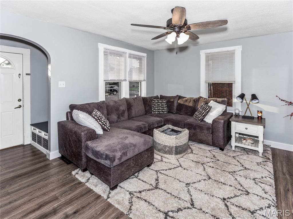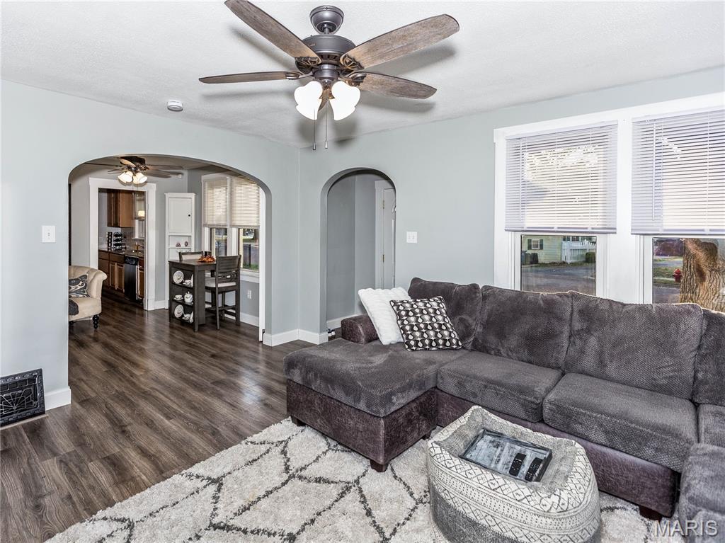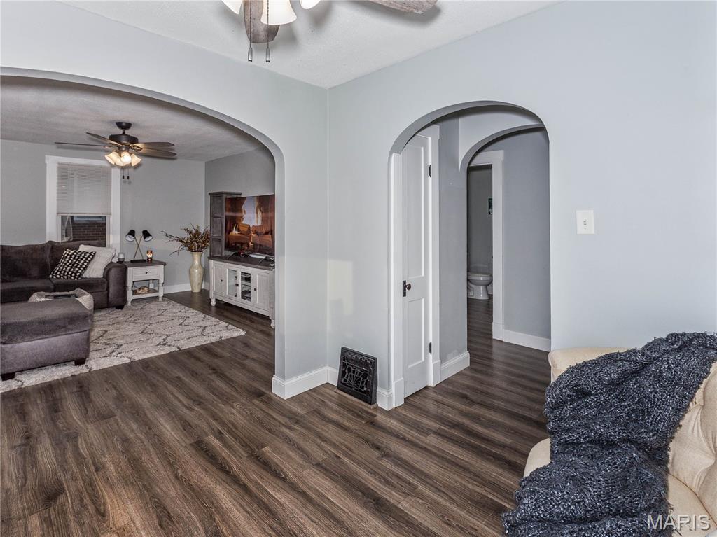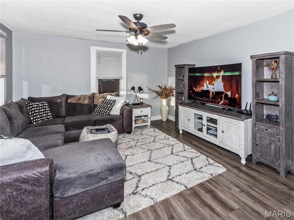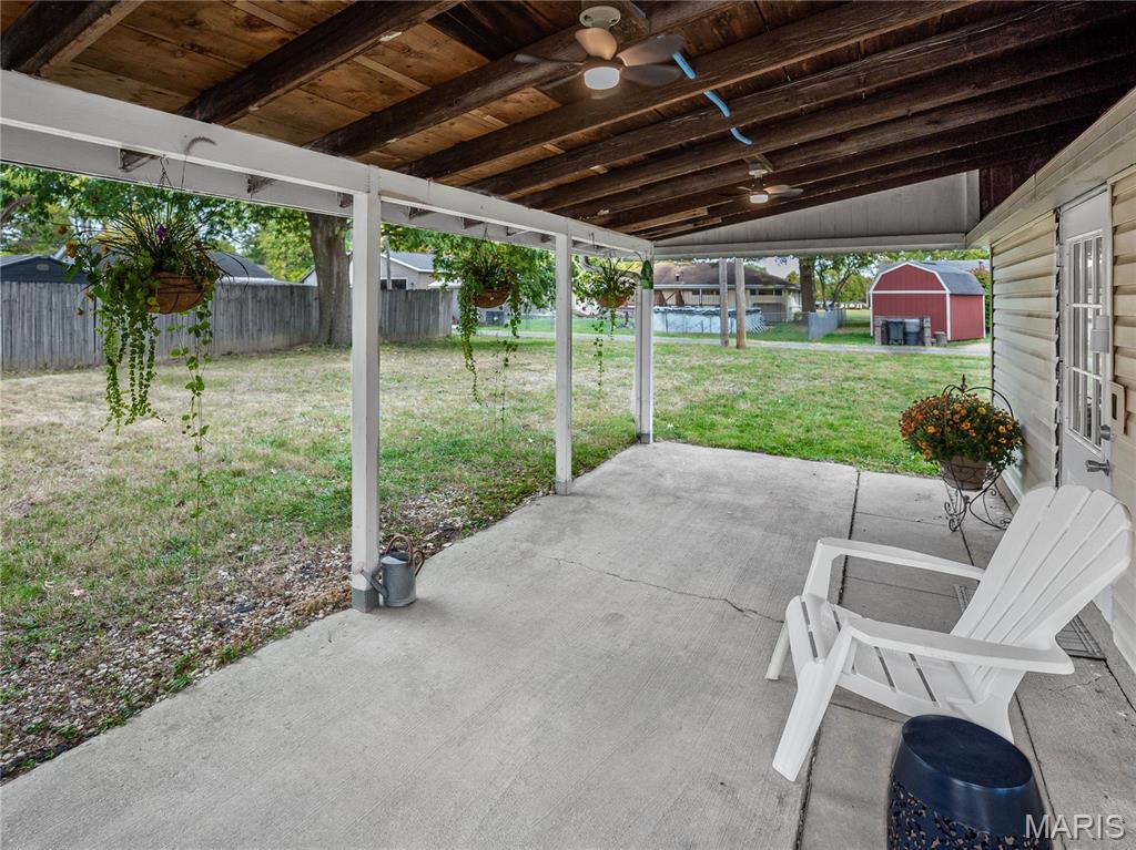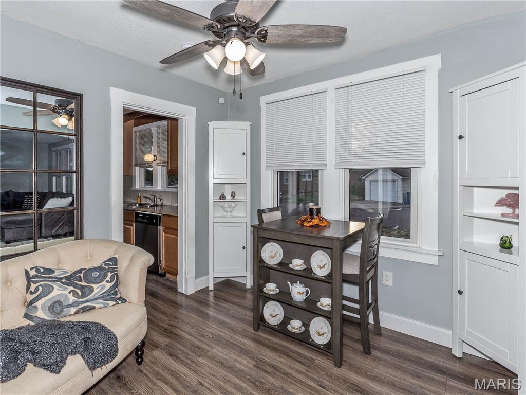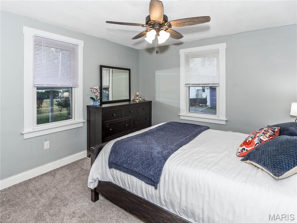 Charming home! Cute entry that leads to the living room. Dining room between living room and kitchen. Kitchen appliances stay, counter tops are granite. 2 bedrooms on the main level with a full bath between the bedrooms. Upstairs is a bedroom with an extra closet in the hallway. White doors and trim. New matching ceiling fans throughout main level. Washer and dryer also stay. The one car garage has a covered patio off the side to enjoy the outdoors. Very close to school, county fair grounds, public pool and much more!!