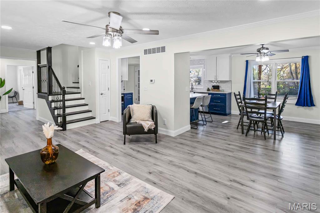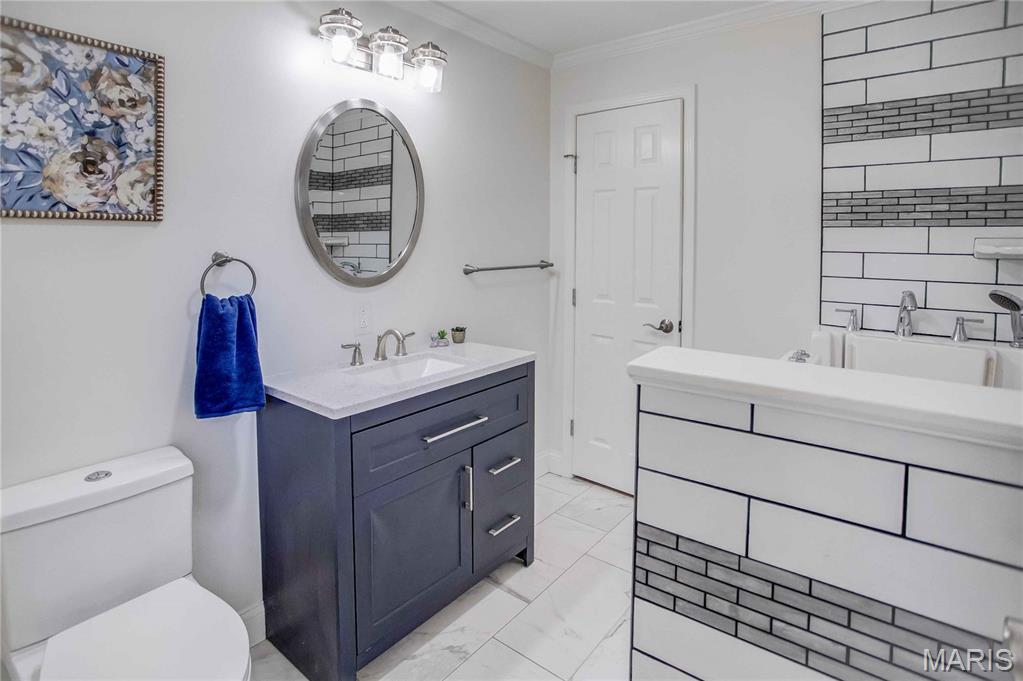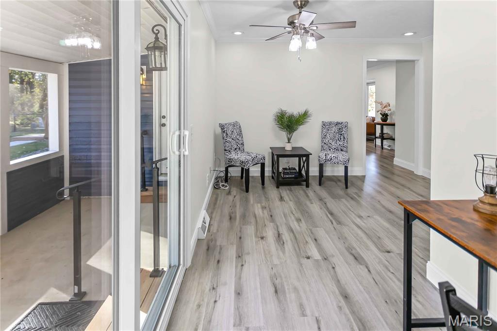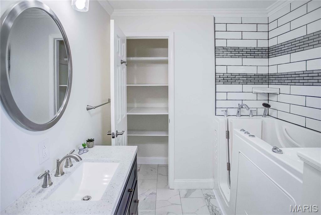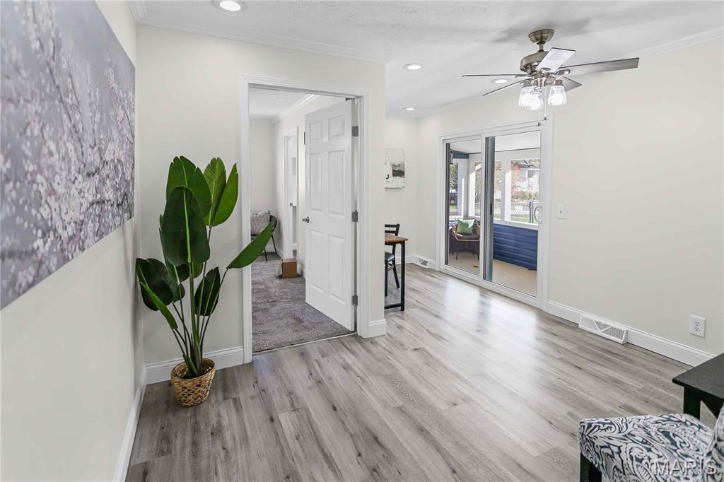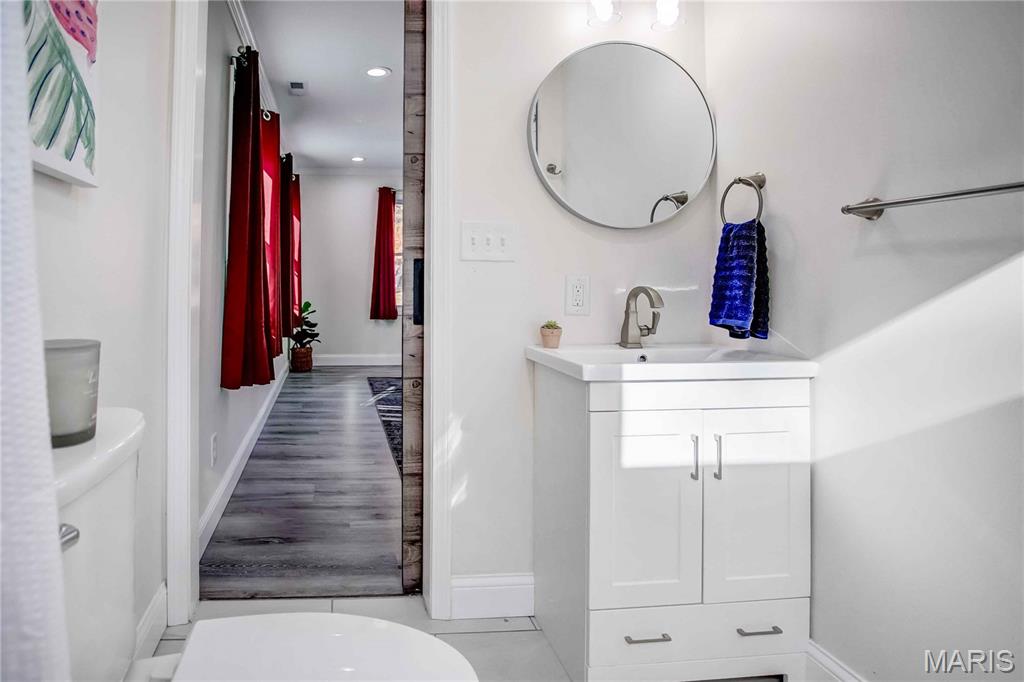 OPEN HOUSE SATURDAY DEC. 6TH 12:30-2:30PM Beautifully updated inside and out, this stunning home sits on a large corner lot in the sought-after Holiday Shores area within the Edwardsville School Dist. Nearly every inch has been improved, offering modern style, comfort and function. Step inside to find new flooring throughout, all-new interior and exterior doors and a bright main level family room addition that provides extra living space. The fully renovated kitchen is a true showpiece-featuring quartz countertops, a subway -tile backsplash, a large pantry, gorgeous blue and white cabinetry, all new stainless steel appliances and a sleek stainless steel hood over the cooktop that adds both style and performance. The home boasts 3 brand new/remodeled bathrooms, including a luxurious master suite. The master bathroom showcases a spa-like walk in hydrotherapy tub with jets, modern chrome fixtures and elegant tile with a designer mosaic accent-creating a relaxing retreat right at home. Main level laundry is available plus an additional lower-level laundry option for extra convenience. A highlight of the main level is the sliding glass door that opens directly to the screened in back porch, offering the perfect indoor-outdoor flow for enjoying morning coffee or evening relaxation. Outside enjoy new siding, new black fencing, covered front and back patios, a screened in back patio, and a new deck with stairs leading to the backyard. The property sits on 3 parcels with new concrete driveways, generous parking and new sidewalks. Additional updates include: two new zoned HVAC systems, a heated, cooled and insulated 14x32 garage, waterproofed basement with new sump pump, lower level bedroom with egress window, versatile lower level bonus room, breathe taking electric fireplace and security system that stays. This home blends thoughtful design with top to bottom improvements, offering a modern, move in ready property with space, comfort, and incredible upgrades throughout.