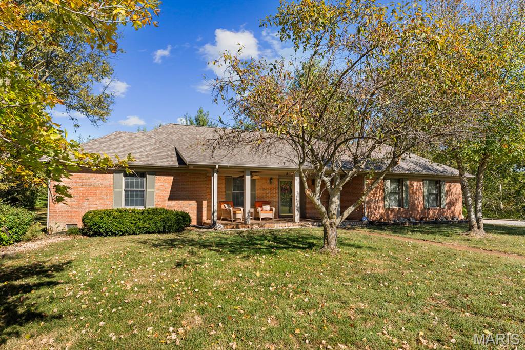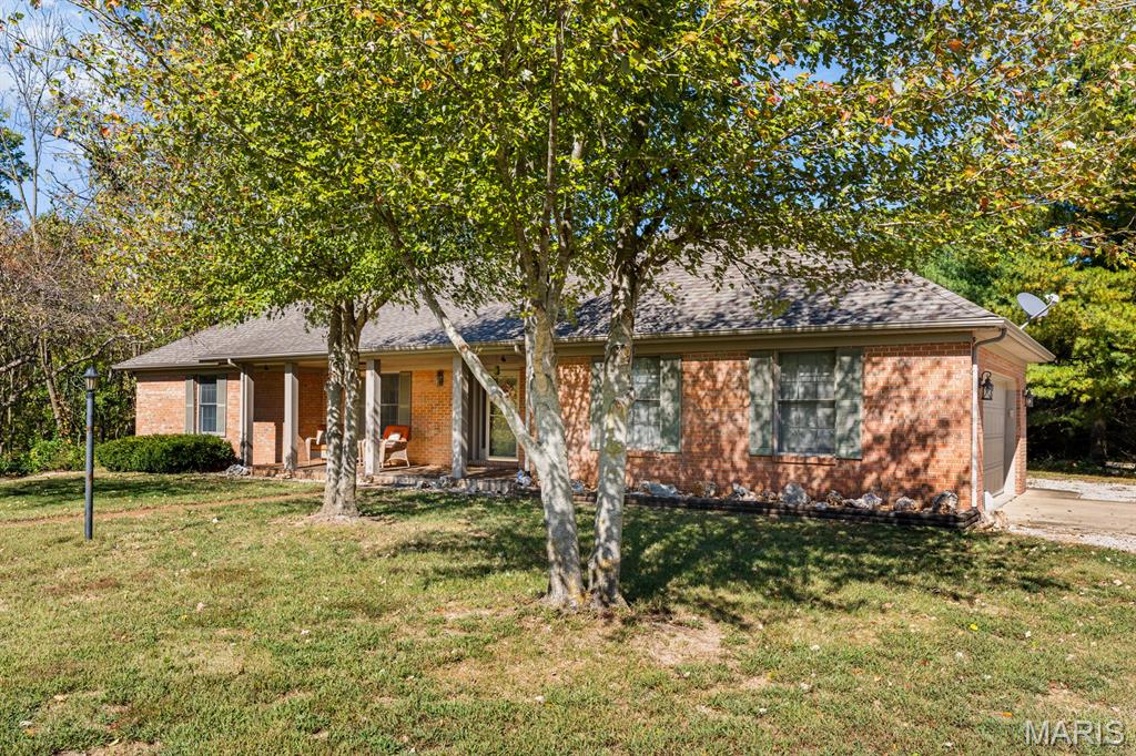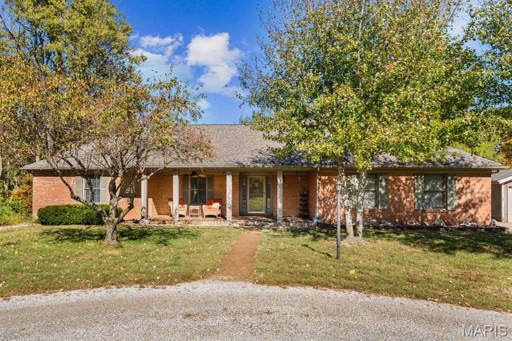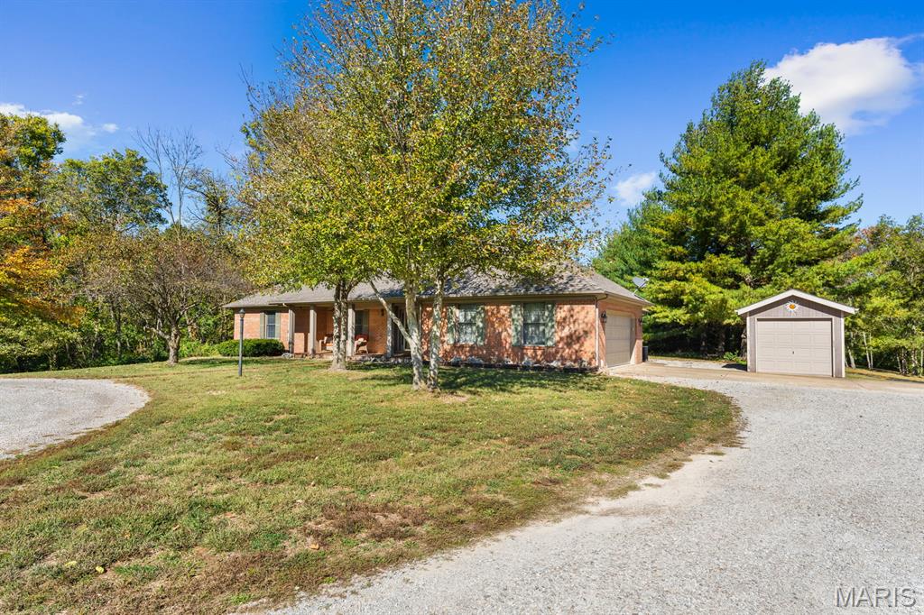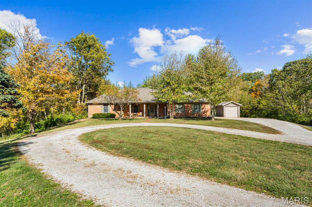 Welcome to this well-maintained brick home on 3.45 beautiful acres in Millstadt. Close to town, this 3 bedroom, 3 bath brick ranch with attached 2-car garage and 2 extra outbuildings is welcoming from the moment you approach the front porch and step into the large foyer. Enter the bright, open living room, featuring a brick hearth fireplace, large bay window, and oversized patio doors that fill the space with natural light and create a welcoming place to gather. Step outside to relax under mature trees and enjoy the peaceful outdoor setting. The well-appointed kitchen offers ample cabinetry, built-in appliances, and opens seamlessly to both the living and dining rooms. All bedrooms are generous in size with plenty of closet space. The primary suite includes a full private bath, cozy window seat, and walk-in closet. A spacious first-floor laundry with utility sink and cabinets, plus an additional utility room, provide added convenience and storage. With quality construction, an open and flowing floor plan, attached 2-car garage, 24x24 outbuilding, and 10x16 outbuilding—perfect for hobbies or extra storage—this home offers the ideal blend of comfort, space, and functionality!