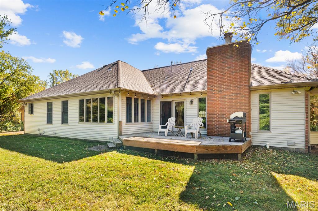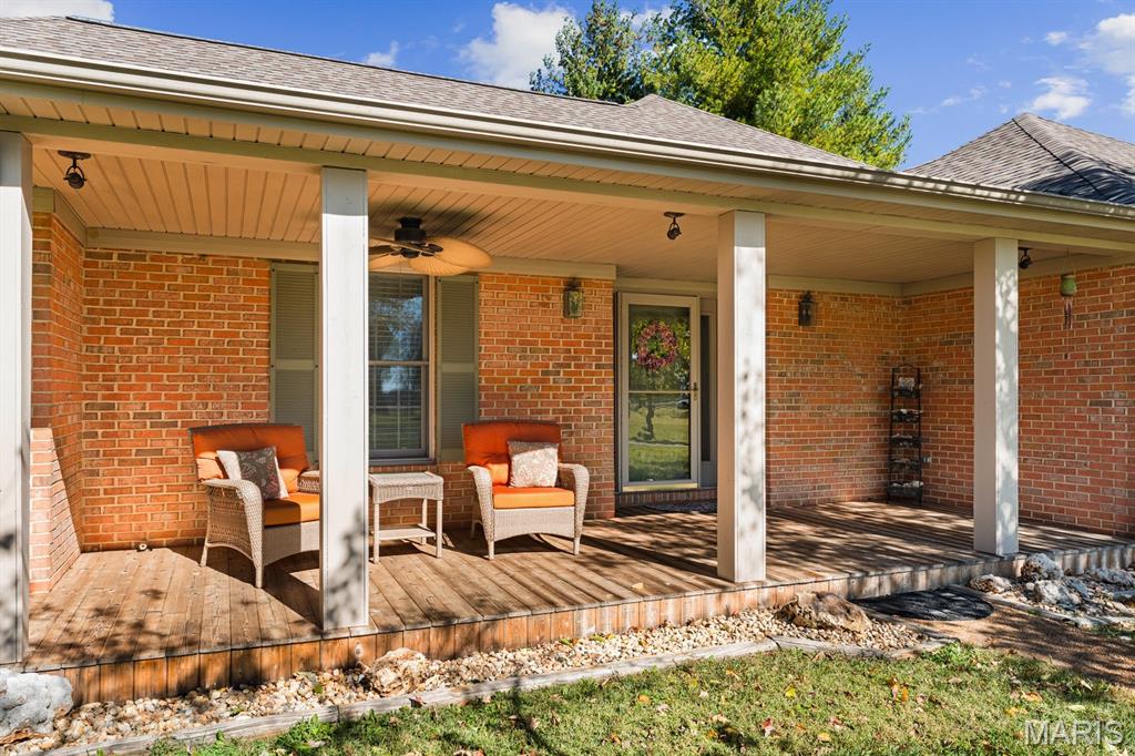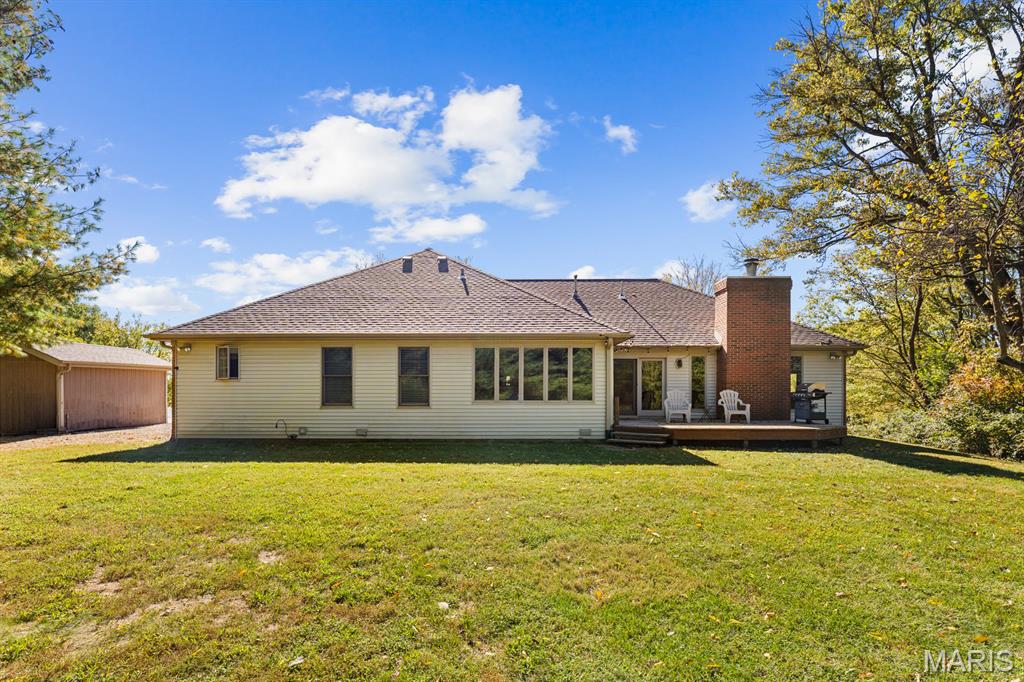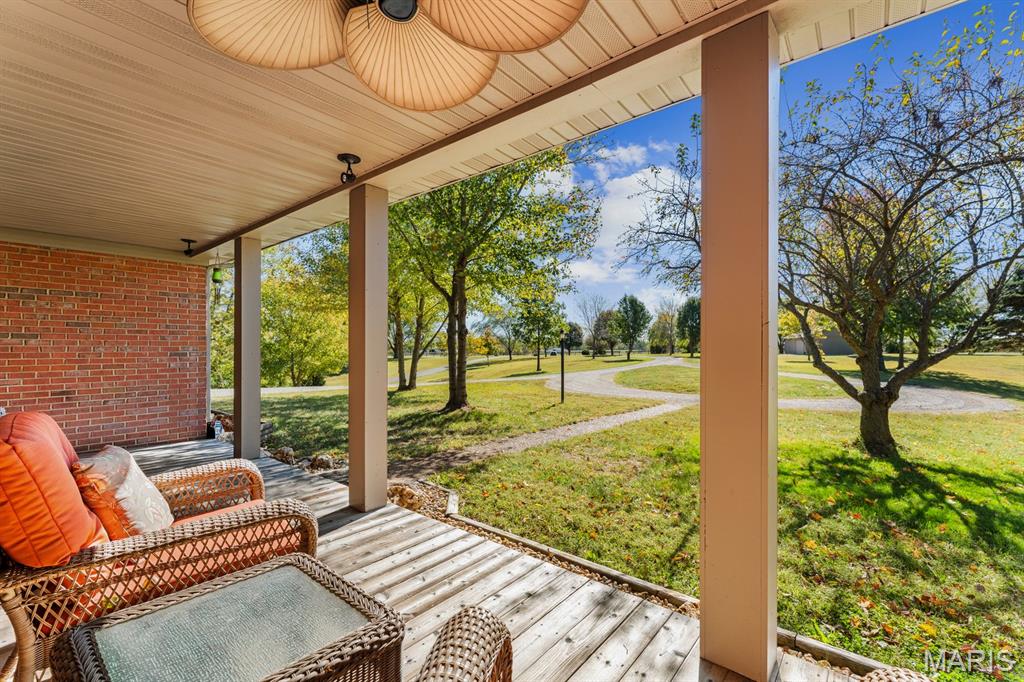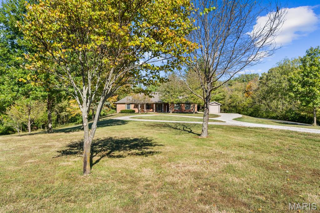 Welcome to this well-maintained brick home on 3.45 beautiful acres in Millstadt. Close to town, this 3 bedroom, 3 bath brick ranch with attached 2-car garage and 2 extra outbuildings is welcoming from the moment you approach the front porch and step into the large foyer. Enter the bright, open living room, featuring a brick hearth fireplace, large bay window, and oversized patio doors that fill the space with natural light and create a welcoming place to gather. Step outside to relax under mature trees and enjoy the peaceful outdoor setting. The well-appointed kitchen offers ample cabinetry, built-in appliances, and opens seamlessly to both the living and dining rooms. All bedrooms are generous in size with plenty of closet space. The primary suite includes a full private bath, cozy window seat, and walk-in closet. A spacious first-floor laundry with utility sink and cabinets, plus an additional utility room, provide added convenience and storage. With quality construction, an open and flowing floor plan, attached 2-car garage, 24x24 outbuilding, and 10x16 outbuilding—perfect for hobbies or extra storage—this home offers the ideal blend of comfort, space, and functionality!