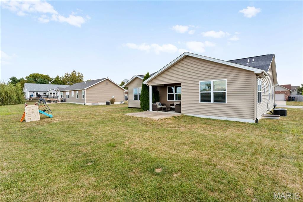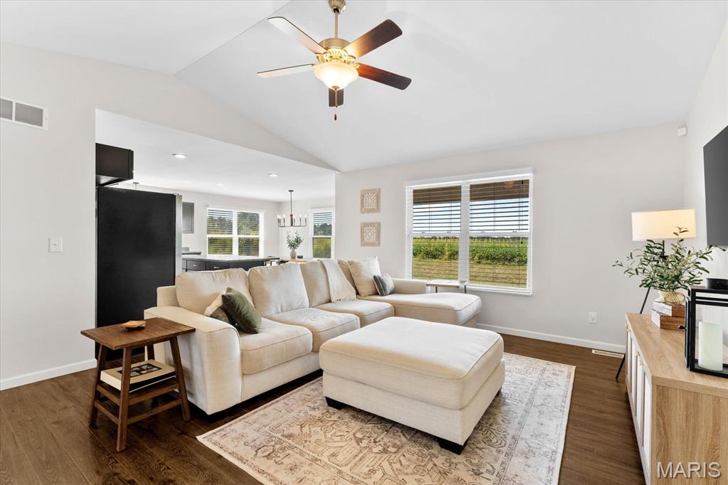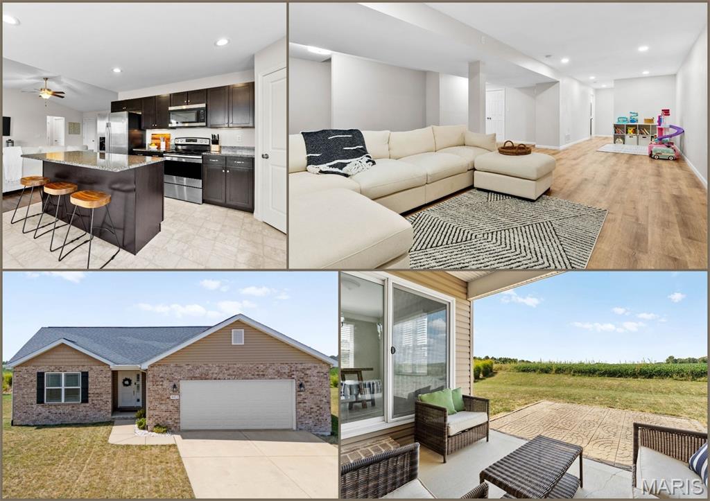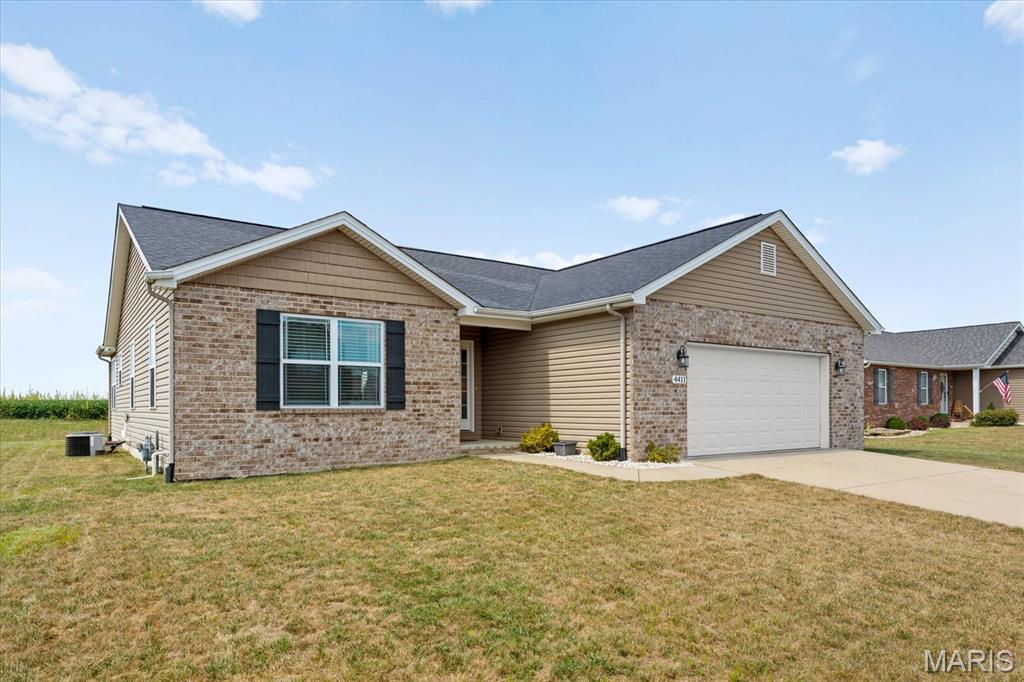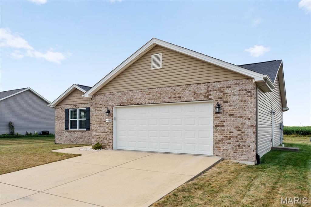 Welcome home to 4411 Maple Brook Dr, a beautifully maintained single-family residence in Belleville’s desirable Autumn Woods community. Built in 2017 and offering 2,697 sq ft of modern living space, this 4-bedroom, 3-bath home is ideally situated at the end of a peaceful street, with serene backyard views of open fields. Step inside to a welcoming foyer and a bright, airy living room featuring vaulted ceilings, impressive wood floors, and expansive windows that bring in natural light. The open-concept gourmet kitchen is a chef’s delight, equipped with stainless steel appliances, granite countertops, a spacious island, and a corner pantry—perfect for entertaining or family meals. The main level features a private primary suite overlooking tranquil fields, complete with a luxurious en-suite bath. Two additional bedrooms offer flexibility for guests or a home office and share a stylish full bath with dual vanities. Downstairs, a partially finished basement provides an additional bedroom, full bath, recreation area, and ample storage. Enjoy outdoor living on the partially covered patio with no rear neighbors, ideal for relaxing or gatherings. Conveniently located near excellent schools, parks, and just a short drive to St. Louis, this move-in ready home combines space, style, and location. Schedule your private showing today to experience 4411 Maple Brook Dr—this opportunity won’t last!