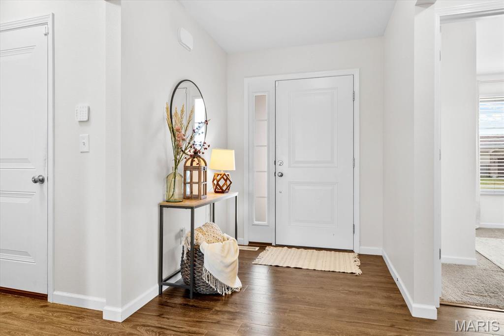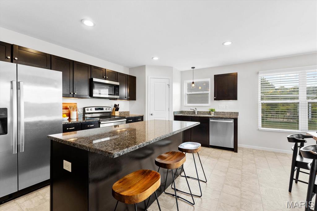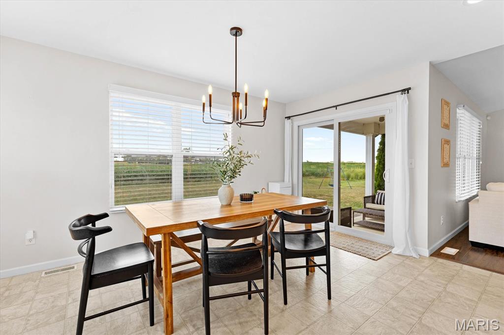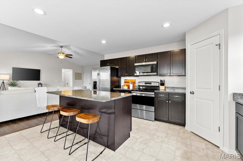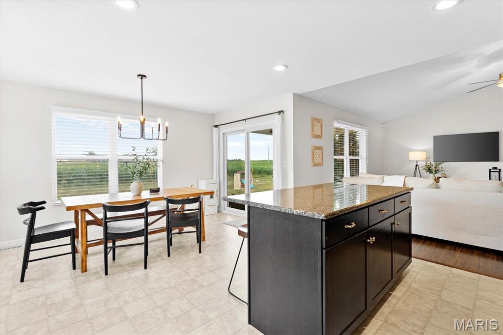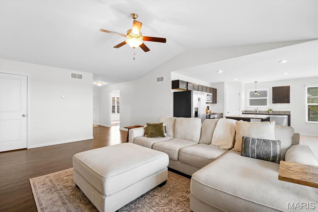 Welcome home to 4411 Maple Brook Dr, a beautifully maintained single-family residence in Belleville’s desirable Autumn Woods community. Built in 2017 and offering 2,697 sq ft of modern living space, this 4-bedroom, 3-bath home is ideally situated at the end of a peaceful street, with serene backyard views of open fields. Step inside to a welcoming foyer and a bright, airy living room featuring vaulted ceilings, impressive wood floors, and expansive windows that bring in natural light. The open-concept gourmet kitchen is a chef’s delight, equipped with stainless steel appliances, granite countertops, a spacious island, and a corner pantry—perfect for entertaining or family meals. The main level features a private primary suite overlooking tranquil fields, complete with a luxurious en-suite bath. Two additional bedrooms offer flexibility for guests or a home office and share a stylish full bath with dual vanities. Downstairs, a partially finished basement provides an additional bedroom, full bath, recreation area, and ample storage. Enjoy outdoor living on the partially covered patio with no rear neighbors, ideal for relaxing or gatherings. Conveniently located near excellent schools, parks, and just a short drive to St. Louis, this move-in ready home combines space, style, and location. Schedule your private showing today to experience 4411 Maple Brook Dr—this opportunity won’t last!