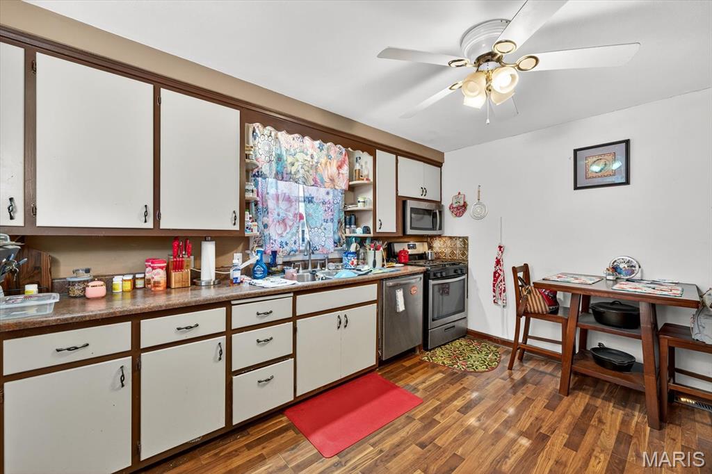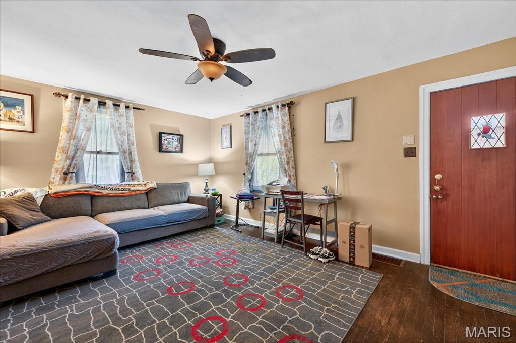 Calling all investors! This fantastic rental opportunity is currently leased for $1,200 per month and conveniently located near dining, entertainment, shopping, and highway access. The main level features two bedrooms, one full bath, a generous-sized living room, and a spacious kitchen. The partially finished basement adds even more value with a family room, bonus room, half bath, and ample storage space. Step outside to the fenced backyard offering a large patio and an oversized detached one-car garage. With a reliable tenant under lease through October 2026, this property is a perfect addition to any rental portfolio! Seller offering a carpet allowance for the basement.