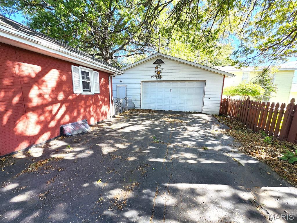3 Bedroom - 2 Bathroom brick ranch with fenced yard, partially finished basement & impressive detached 2.5 car garage. Just under 1700 total square feet of finished living space on this home in need of some TLC & updates. Bright living room with picture window. Large eat in kitchen w/ appliances included. Primary bedroom suite with private half bathroom. 2 more bedrooms and a full hallway bathroom complete the main floor. Lower level has a huge room divided into to a family room with stonework fireplace and a recreation / exercise room with a bar. In addition, there's an unfinished room that would make a great office or bonus room. A big unfinished laundry / storage room completes the lower level. The backyard is vast and completely fenced. It features a barn style storage shed. Vinyl replacement windows. Roof (2014) Central Air (2014). Just minutes from IL Route 3, Interstate 270 and the McKinley Bridge. There are currently no exemptions on the property taxes for this estate, and they would be lower for an owner occupant.