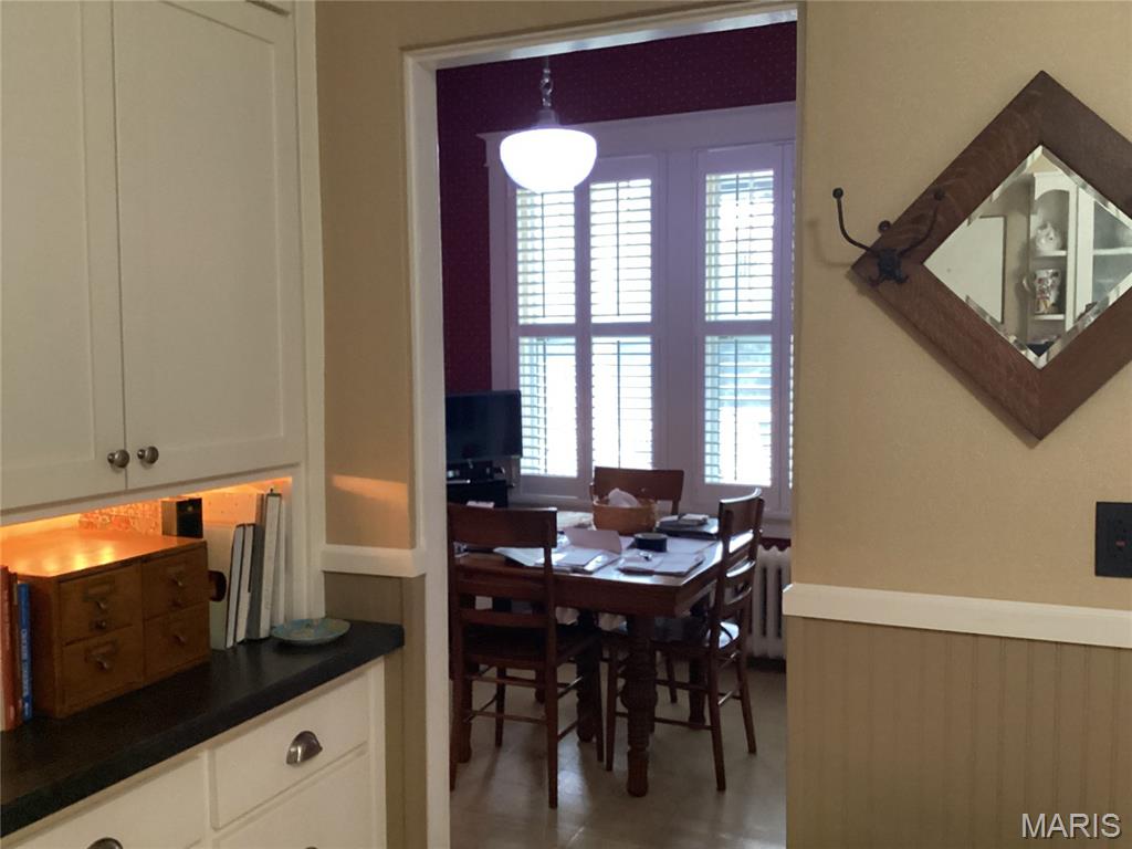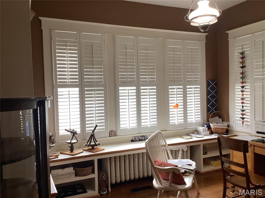 Listed on the historical registry, this beautiful home in the heart of Edwardsville has been updated and is in move-in condition. Located one block off of Main Street on an almost 1 acre wooded lot. Updated kitchen and bathrooms. Main floor laundry. Oversized, One car detached garage. Garden shed. Newer screened porch and deck. Extensive landscape and so much more. A new roof, Gutters and downspouts, new boiler new sewer line new windows.. This home has been lovingly cared for and is sure to impress. Original hardwood flooring, custom millwork, French doors, built-in book cases, Butler's pantry. Formal dining and living rooms, breakfast room. Main floor office could be a third bedroom. All windows have plantation shutters. Full brick. Agent related to seller.