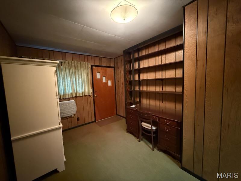 Charming brick ranch with large spacious fenced back yard. Step into the cozy den with fireplace, excellent room to relax. The open living room - dining room combination offers a large gathering area. Kitchen has nice wood cabinetry with new appliances 2025 (cooktop, oven & refrigerator stay) The three bedrooms, full bath with jetted tub & shower has been nicely updated. The laundry room with washer & dryer (stays) plus a bonus office add great space to this nice well maintained home. The one car attached garage enters into the laundry area and would make a great mud room plus a fantastic location makes this home a great buy. Located just minutes from highway access. Shed stays. Furnace & Air Conditioning 2019. Roof Main House 2012 Flat Roof 2019. Washer & Dryer 2019. Hardwood Floors in living room, dining room and 3 bedrooms under carpet. Covered gutters. Intercom system does not work. Home has central air however, there is a window unit in office that may or may not work - owner will not remove.