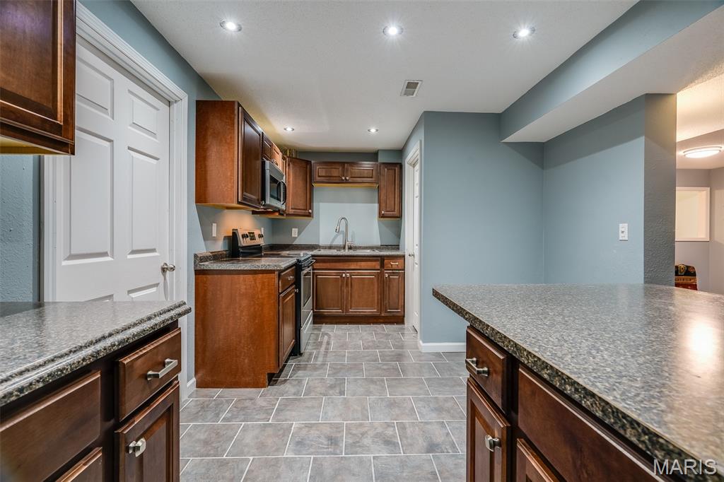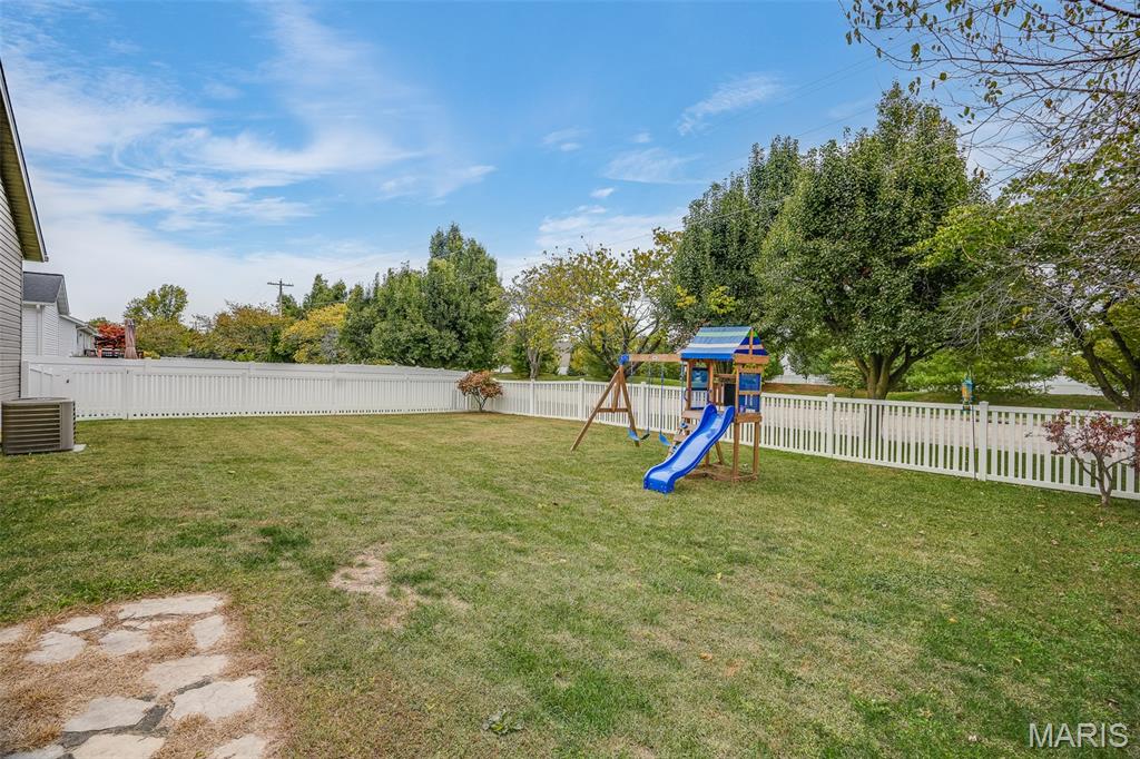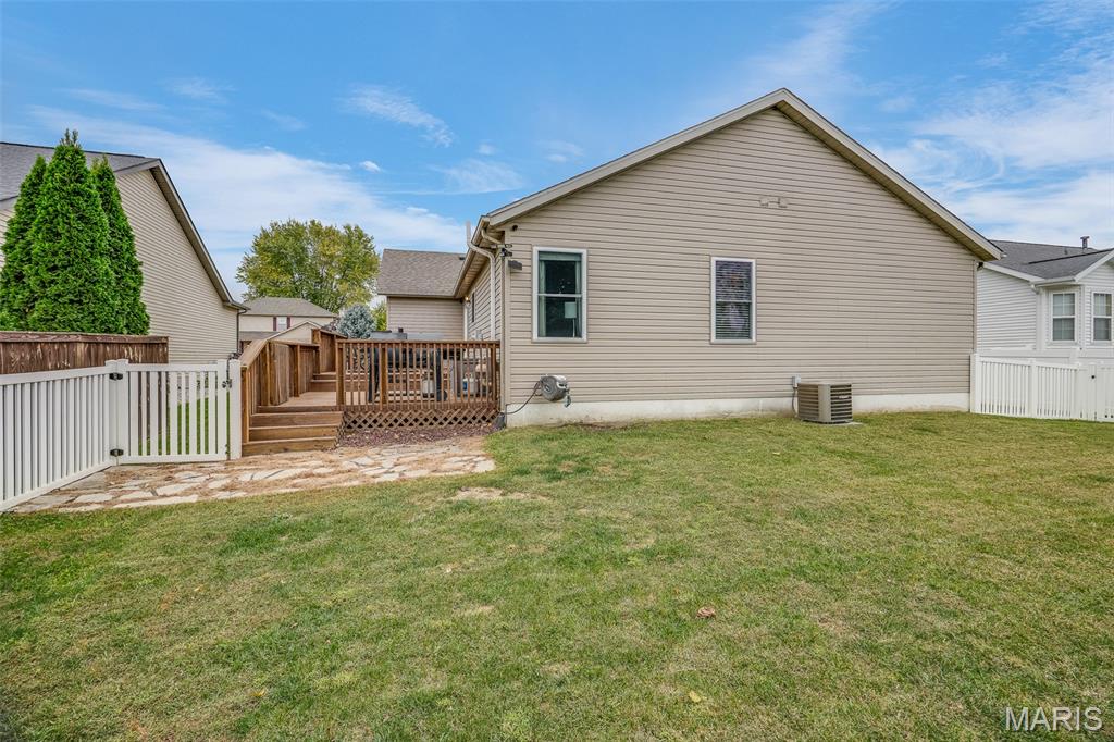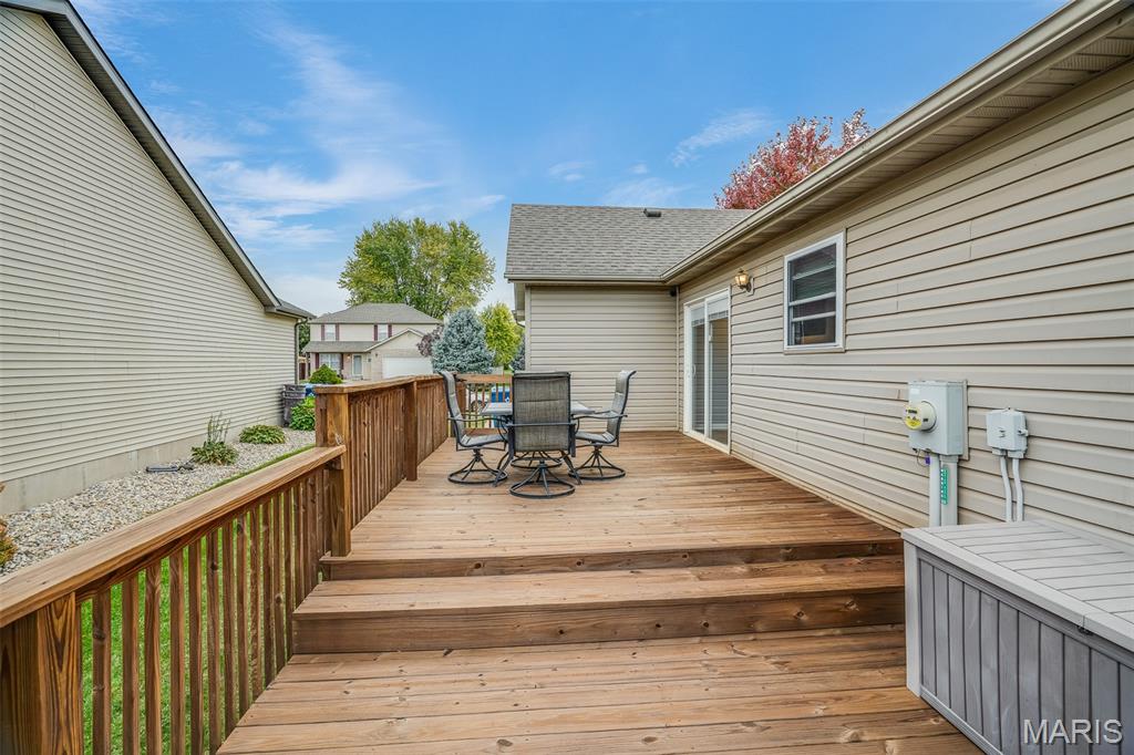 Tucked away on a quiet road just minutes from all of Edwardsville’s shopping, dining, and schools, this 3-bedroom, 3-bath ranch offers the perfect blend of comfort, space, and convenience. Located in a friendly neighborhood with a bike trail connected directly to the subdivision, you’ll love the easy access to outdoor recreation and scenic walks or rides. Inside, you’ll find a welcoming main floor with an modern layout that effortlessly connects the living, dining, and kitchen areas—ideal for both everyday living and entertaining. Large windows fill the home with natural light, while thoughtful updates throughout make it truly move-in ready. Step out back to enjoy the fully fenced, spacious yard with a large deck, perfect for morning coffee, weekend barbecues, or relaxing evenings under the stars. Downstairs, the fully finished basement expands your living space even further with a huge family room, bar area, kitchenette, and a full bathroom—perfect for game nights, gatherings, or even a private guest suite setup. With its peaceful setting, community connections, and unbeatable location close to everything Edwardsville has to offer, this home combines the best of privacy, comfort, and convenience.