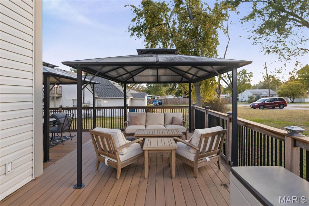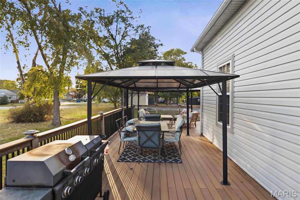 Dream Home in Wood River! Welcome to this stunning 4-bedroom, 2-bath home featuring impressive 14-foot ceilings in both the living room and primary bedroom. The open layout offers plenty of natural light and a comfortable flow throughout. All TVs and appliances stay, making this move-in ready home even more convenient! Step outside to enjoy a beautiful, spacious deck complete with a gazebo and outdoor furniture that will remain with the property. Situated on a large lot with plenty of parking, a shed for extra storage, and a spacious basement offering endless possibilities. This property truly has it all — comfort, space, and style in one perfect package!