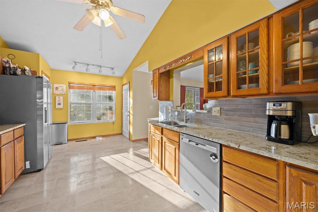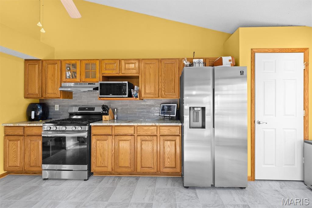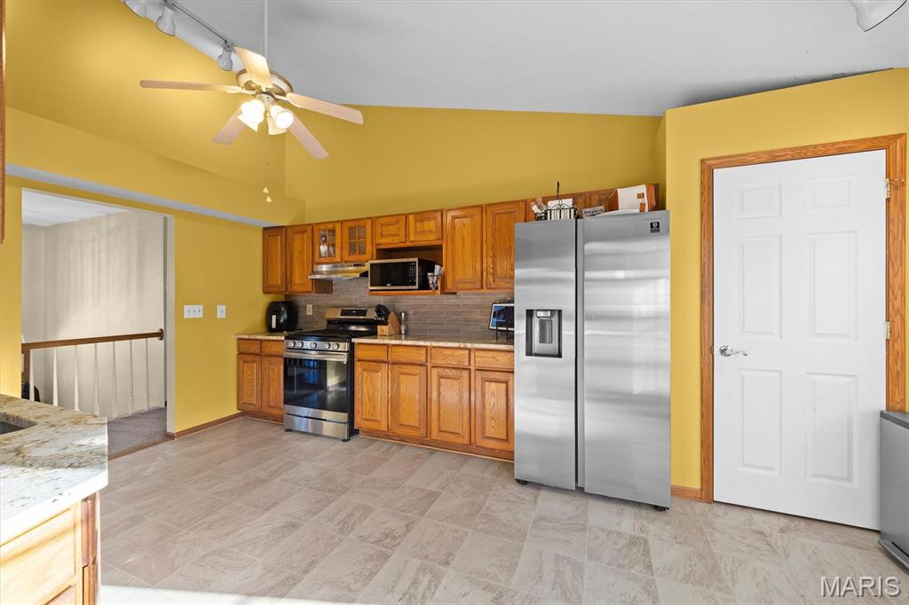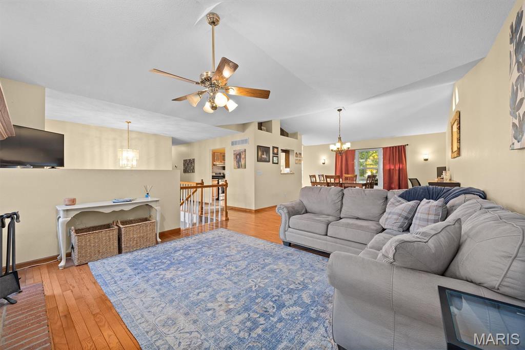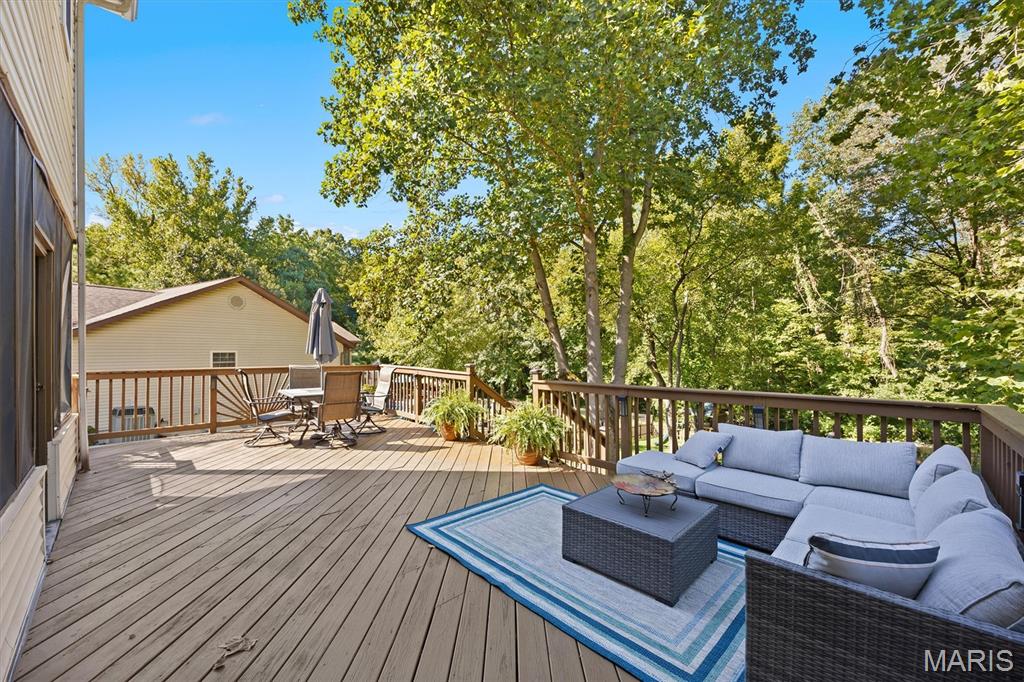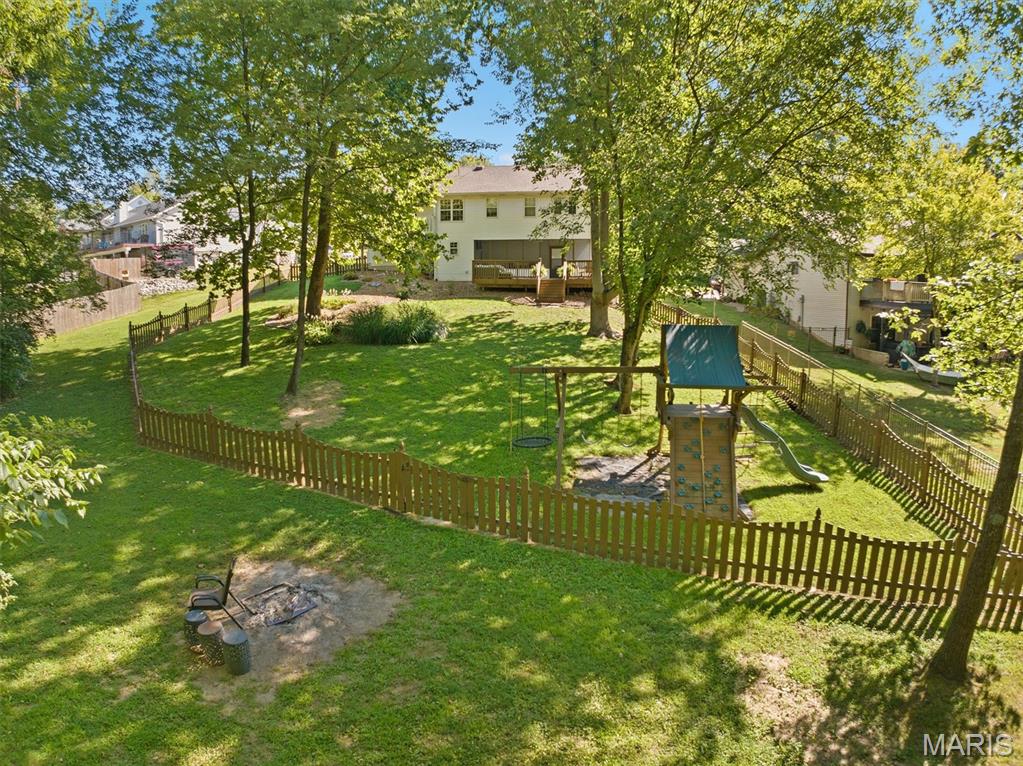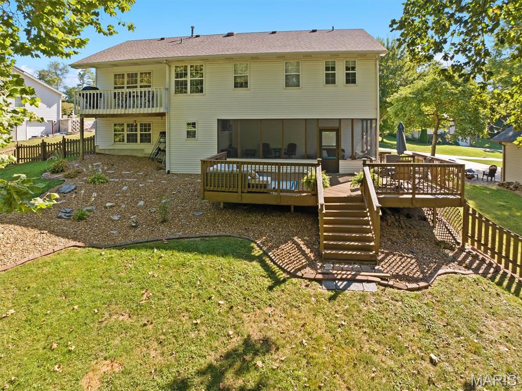 Fantastic 3BR/3BA Home in the Friendliest Subdivision! Welcome home to this beautifully maintained property featuring a spacious entry that opens to an inviting living room with a cozy fireplace and adjoining dining area. The updated kitchen offers stainless steel appliances, granite countertops, and access to a small deck—perfect for morning coffee. Down the hall are three comfortable bedrooms and two full baths. The lower level includes a large family room, laundry area, and half bath, with walk-out access to a screened-in porch and expansive deck. Situated on approximately 0.5 acres, this home offers a fully fenced backyard shaded by mature trees—ideal for outdoor living and entertaining.