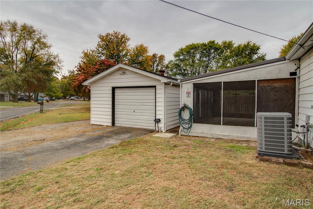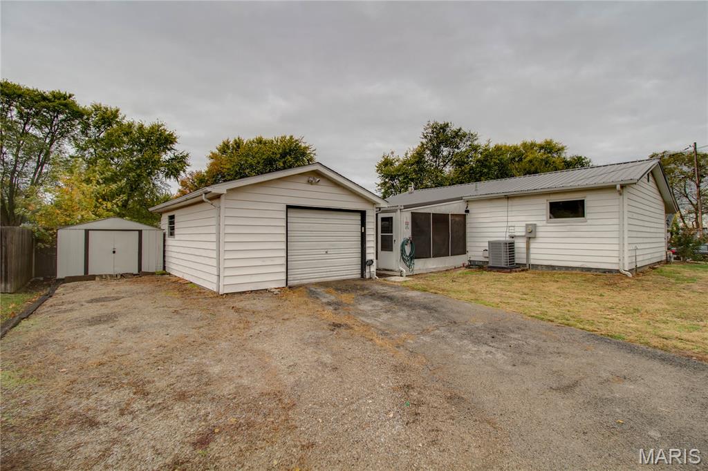 Charming 3-bedroom, 1-bath home on a desirable corner lot. Features an eat-in kitchen with coffee bar and ample cabinet space and all appliances included plus main floor laundry with washer and dryer. Enjoy the large screened-in sun porch for relaxing or entertaining. Detached garage includes a built-in workspace, and there’s also a storage shed for extra convenience. Recent updates include a new metal roof and new air conditioner, providing comfort and peace of mind. This well-kept home offers great functionality and value — move-in ready and waiting for its next owner!